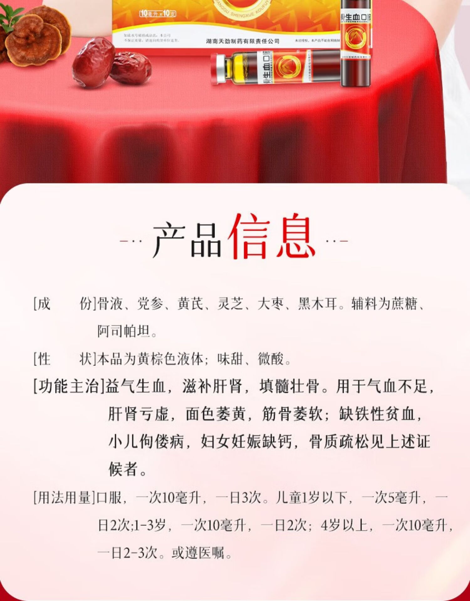 [天劲] 强骨生血口服液 10ml*10支/盒 1盒装