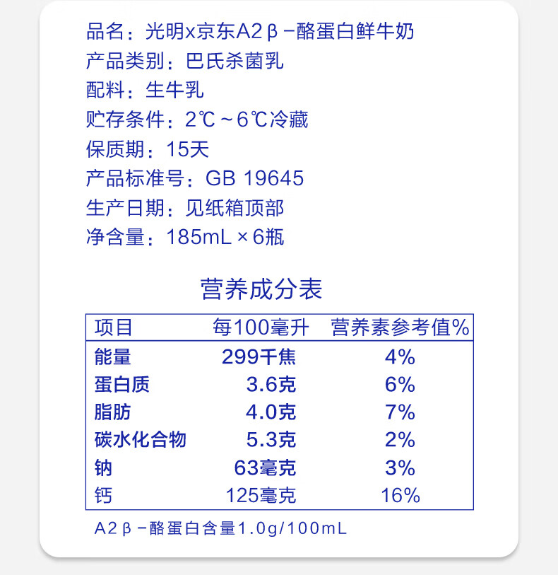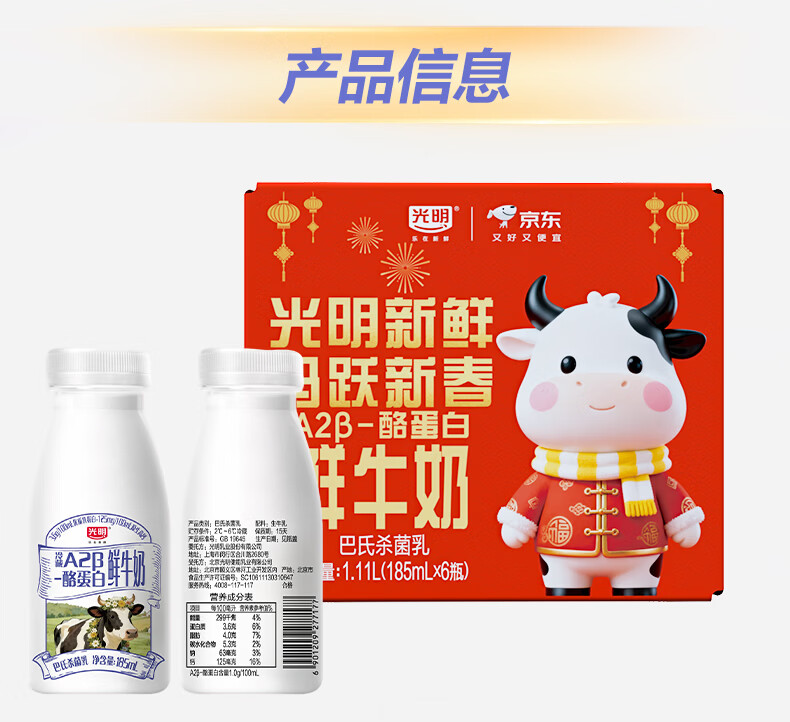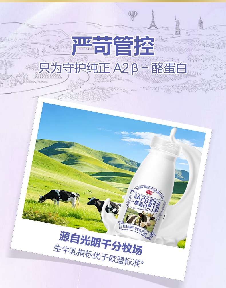 光明低温牛奶 原生高钙A2β-酪蛋白鲜牛奶185ml*6 巴氏杀菌 专属奶源