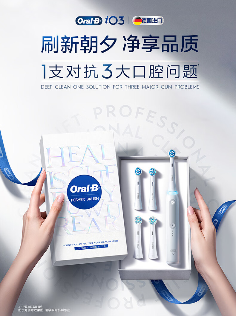 欧乐B德国进口智能电动牙刷iO3极致白刷头*4根源洁净京东自营京东金榜情侣生日礼物情人节礼物年会礼品