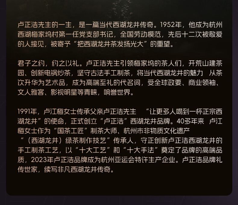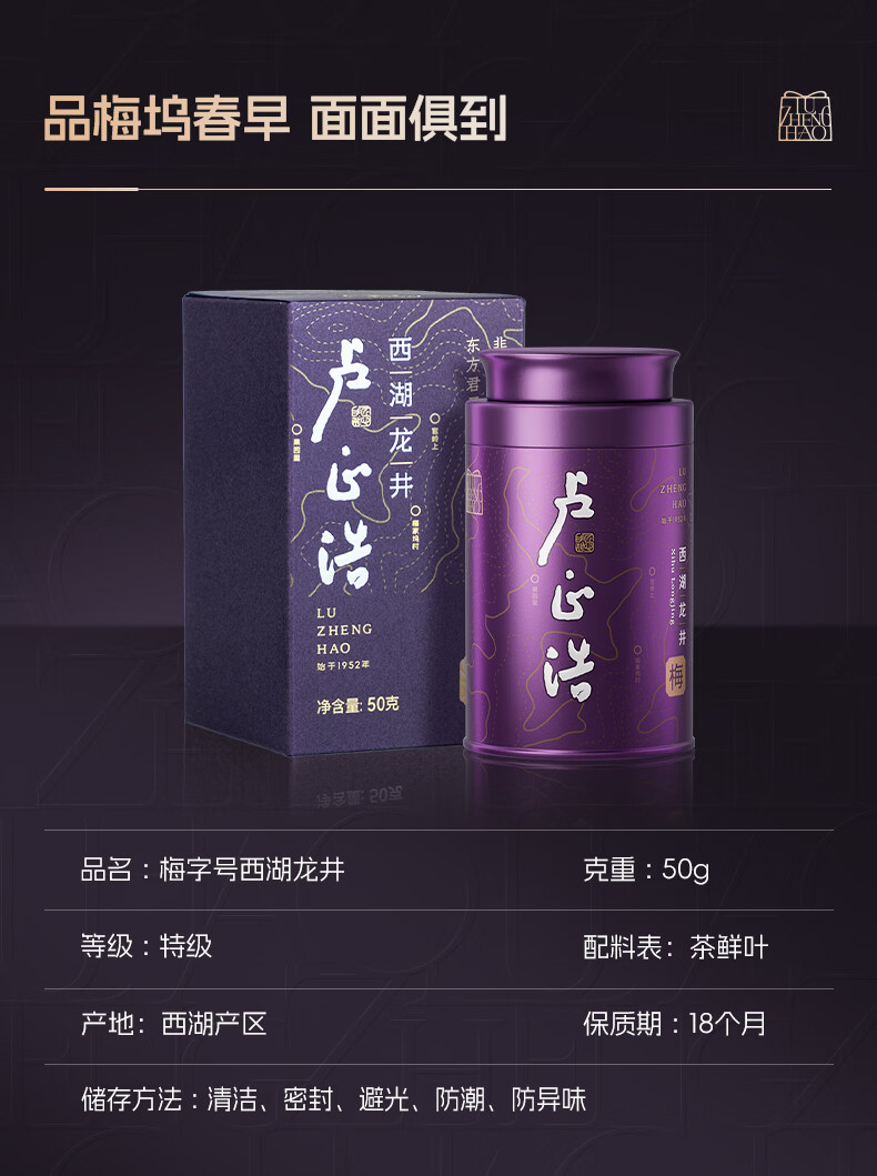 卢正浩绿茶梅字西湖龙井茶特级50g2026新茶上市明前茶叶梅家坞源头直发