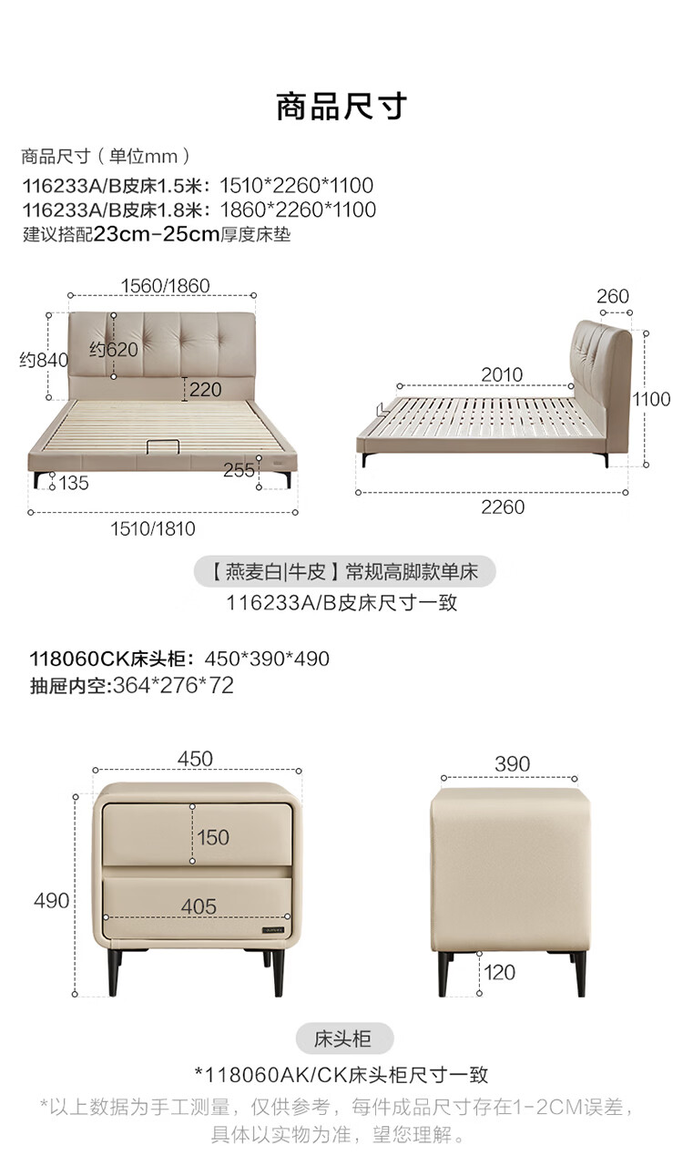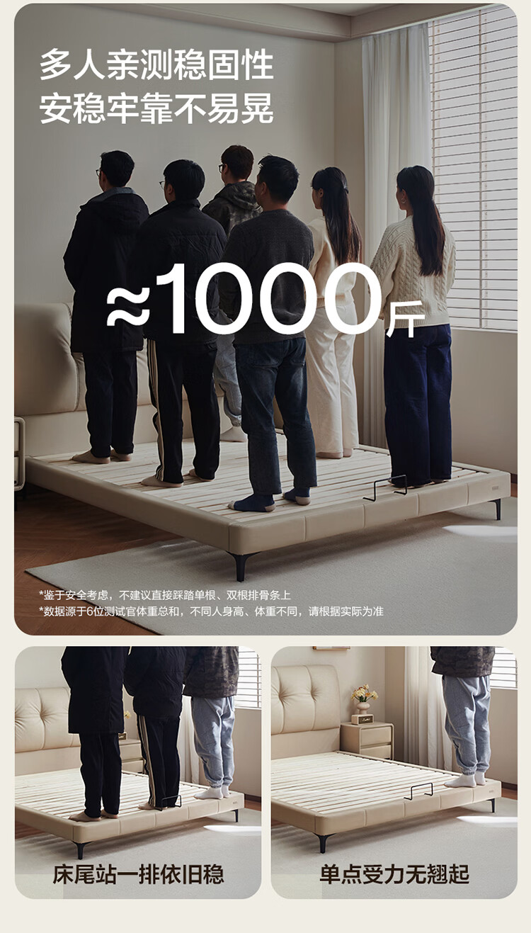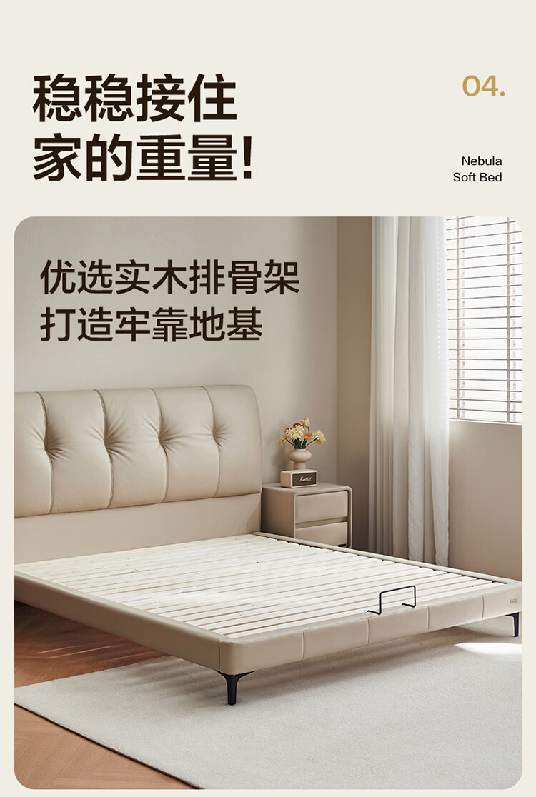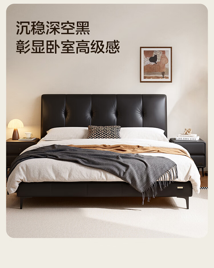 全友家居现代简约皮艺床家用卧室轻奢高级感2026新款高脚双人大床家具 【燕麦白 | 牛皮】高脚款 1.8米x2米 单床+床头柜*1
