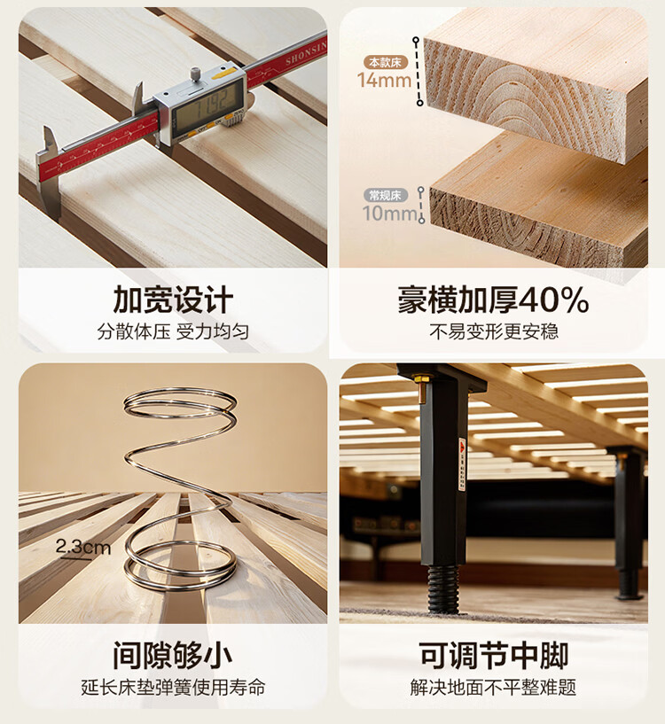 全友家居原木风地台床卧室无床头榻榻米1.5x2米实木脚单人床 原木色|床+床垫 1.5x2米