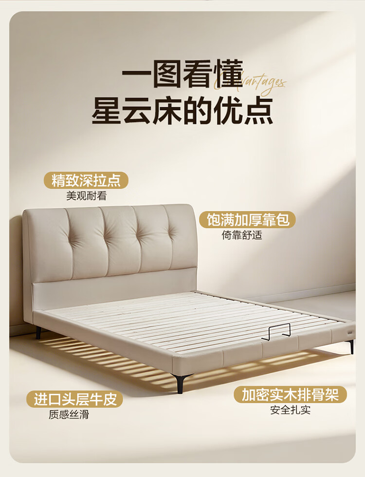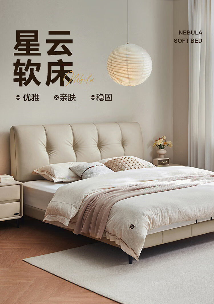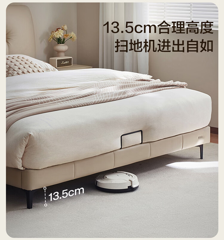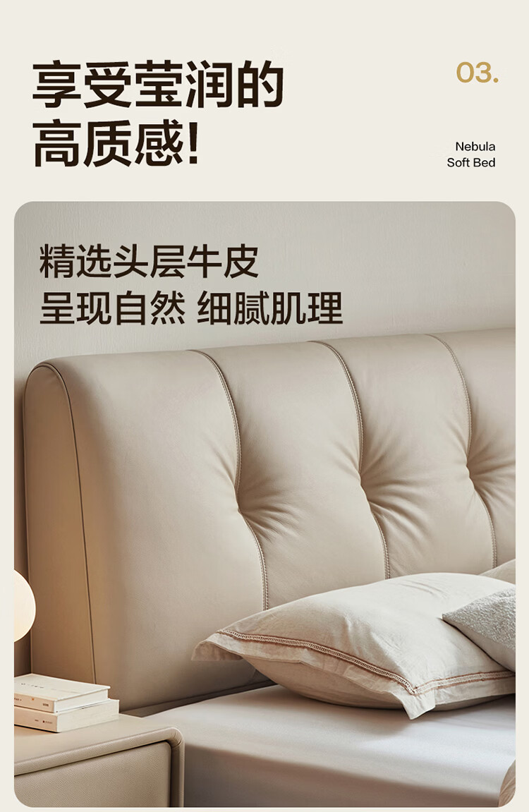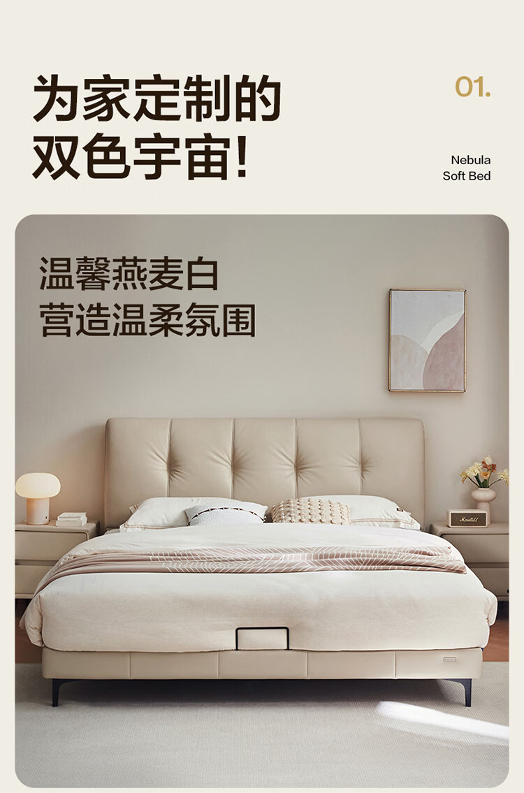 全友家居现代简约茉伊真皮床轻奢高级感2026年新款头层牛皮软包靠背床 【牛皮 | 米白 | 平移+上翻开合电动储物款】 1.8米x2米 床+床头柜*1