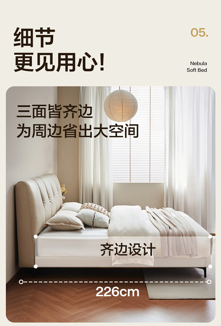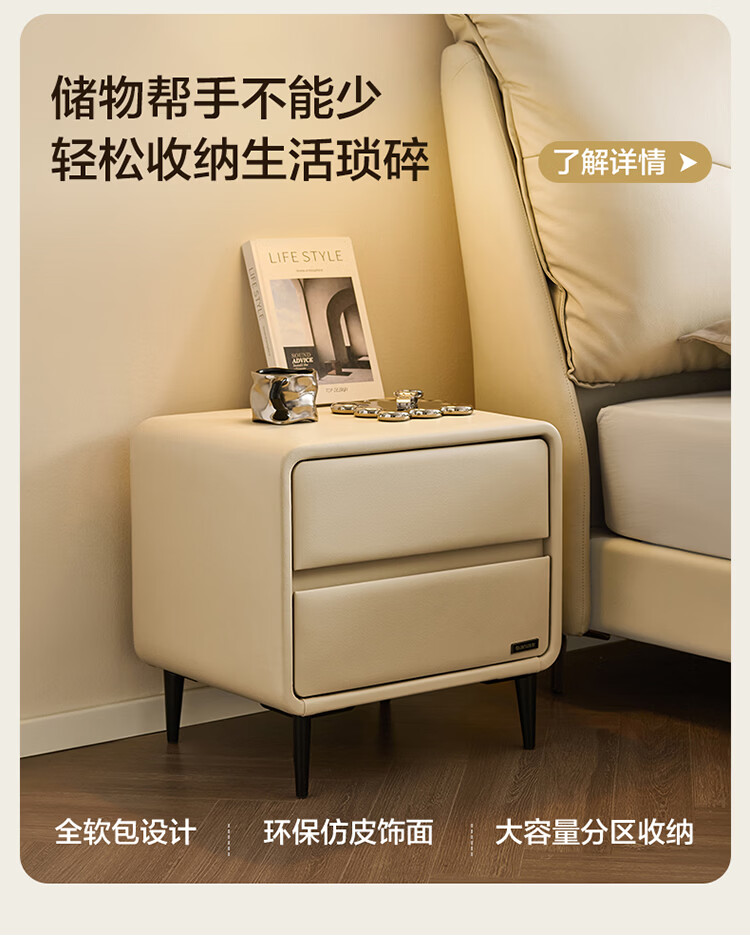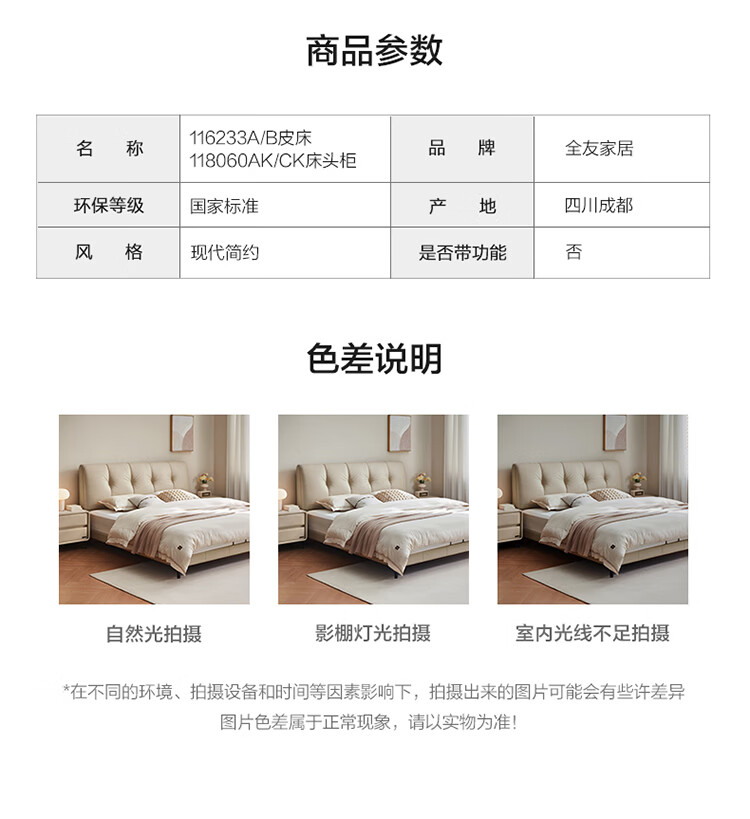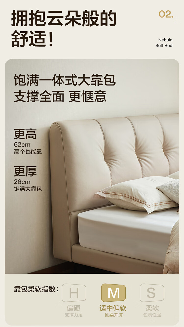 全友家居现代简约茉伊真皮床轻奢高级感2026年新款头层牛皮软包靠背床 【牛皮 | 米白 | 平移+上翻开合电动储物款】 1.8米x2米 床+床头柜*1