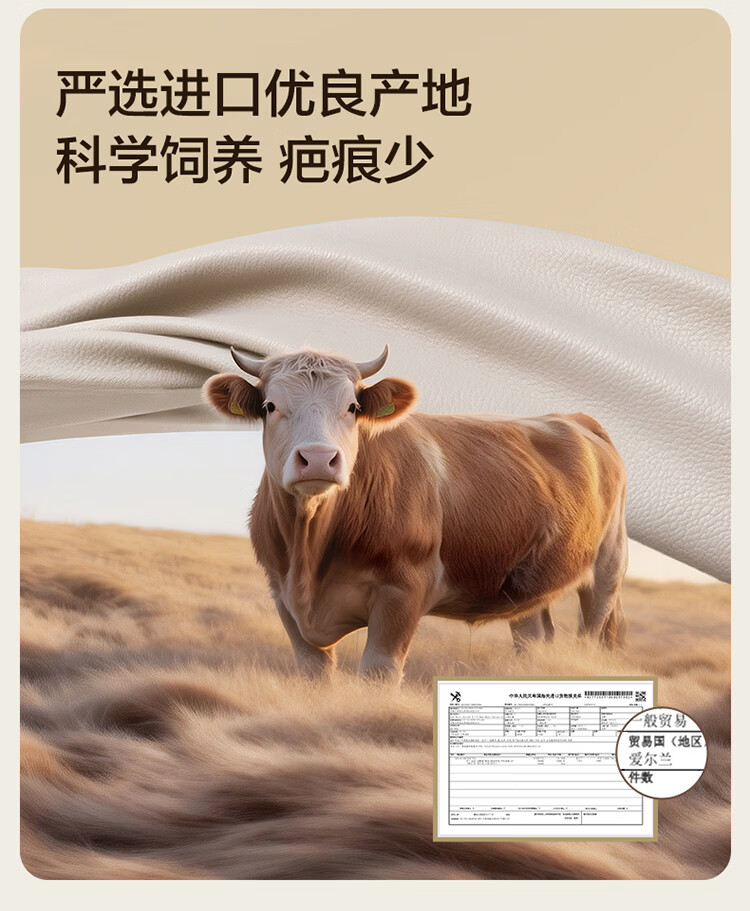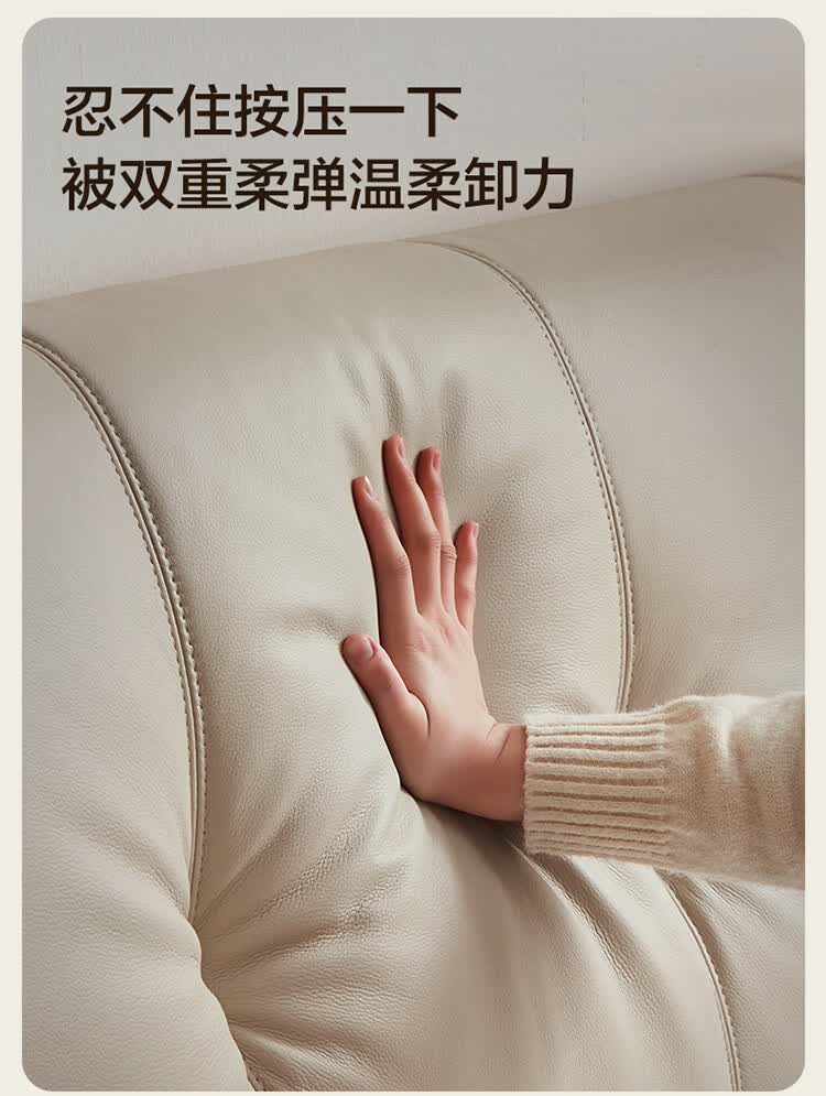 全友家居意式极简功能沙发客厅轻奢高级感2026新款头层牛皮真皮沙发 【浅卡其 丨带翻倒茶台】3.45米三功能位电动沙发床