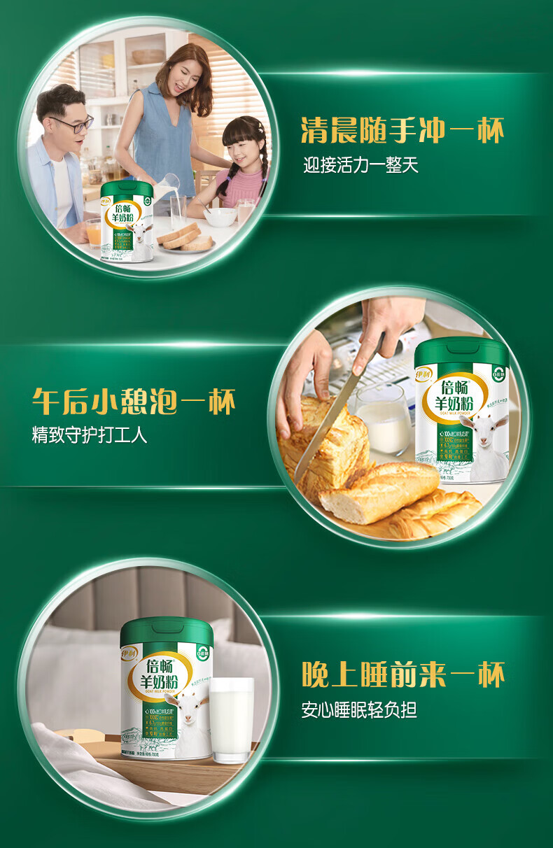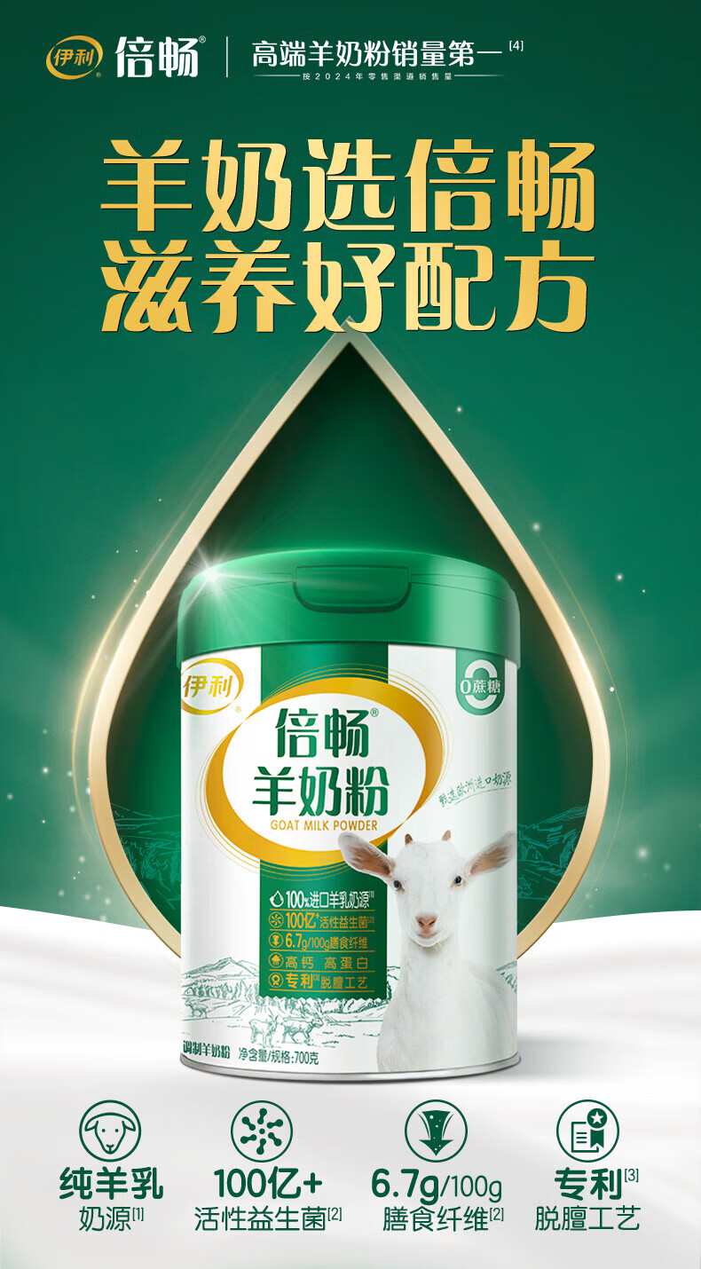 伊利倍畅专利好菌中老年羊奶粉 脱膻工艺 欧洲进口奶源 100%纯羊乳 【约28次量】100%欧洲进口奶源700g