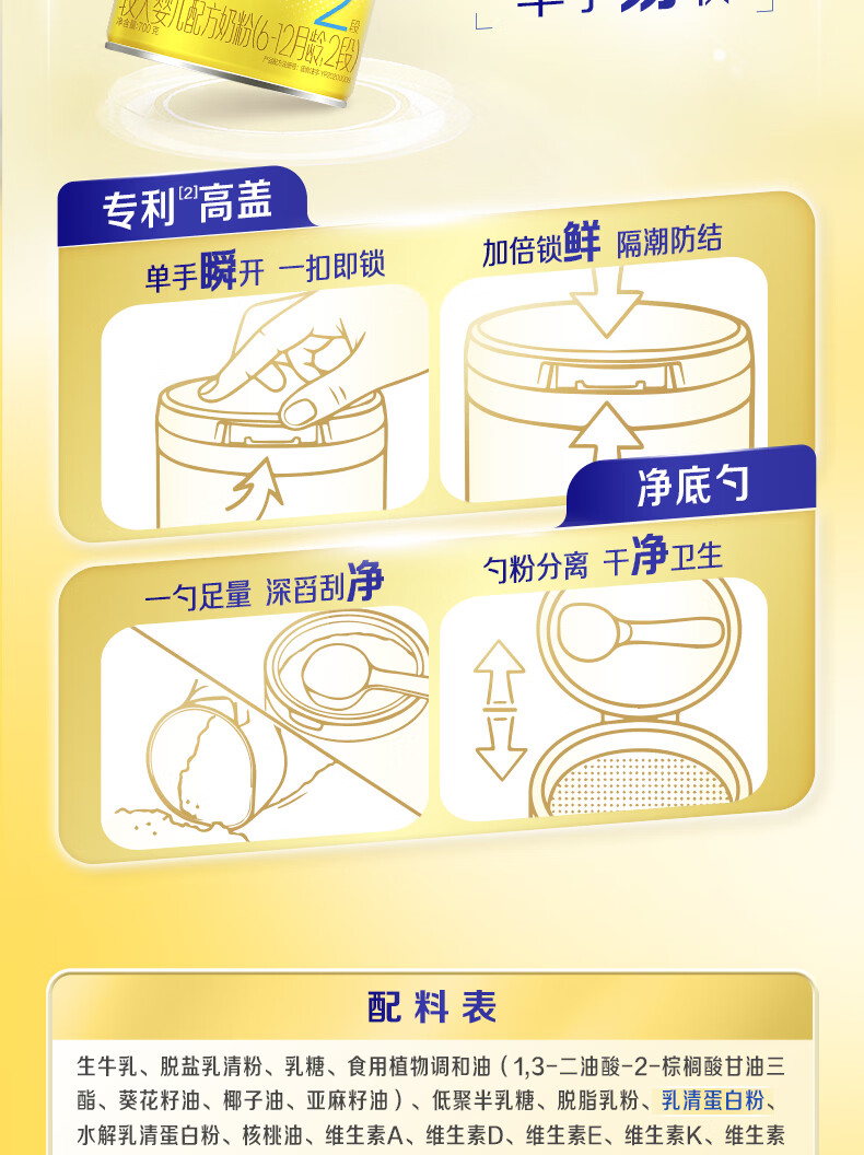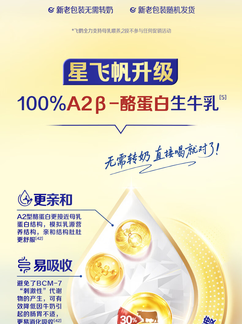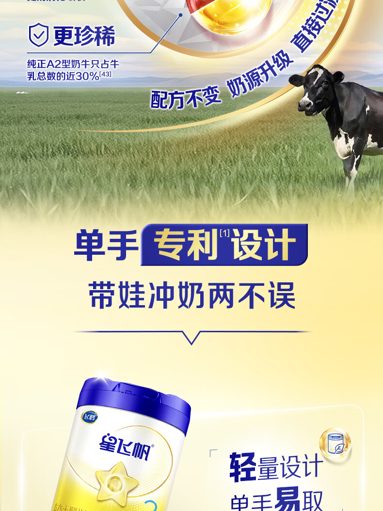 飞鹤星飞帆 婴幼儿配方奶粉2段(6-12月龄) 700g 专利OPO 育儿补贴