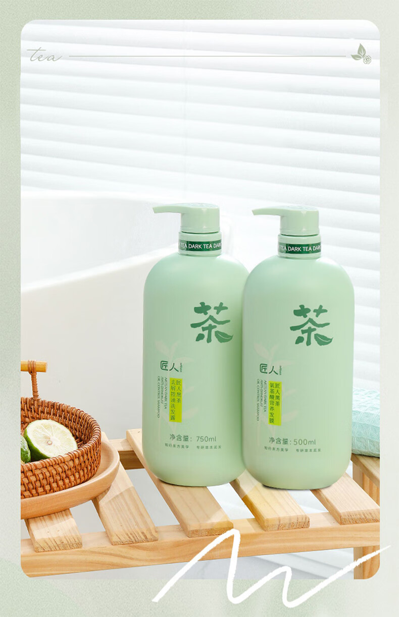 匠人黑茶去屑控油洗发水洗发露茶多酚沐浴乳氨基酸发膜多款可选 黑茶氨基酸营养发膜 500ml*1瓶