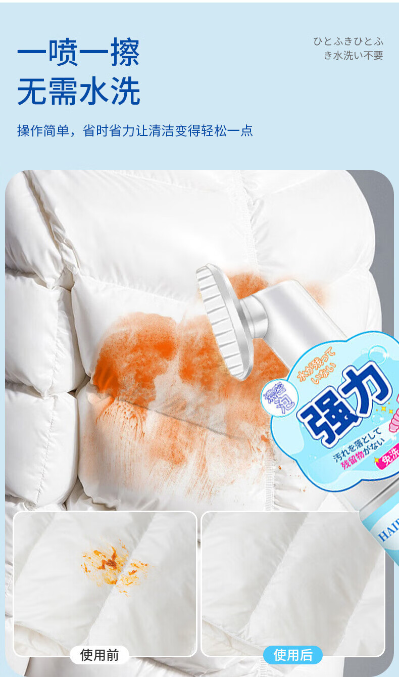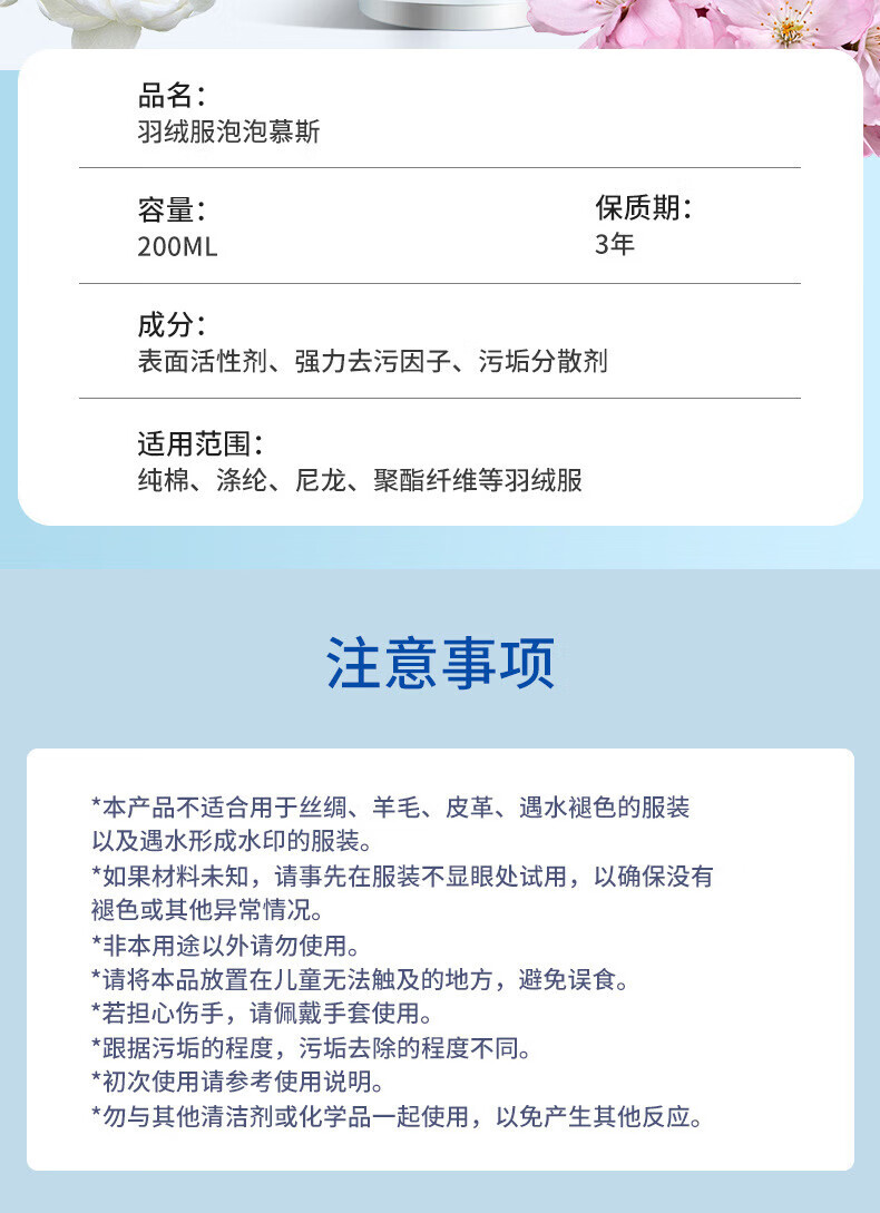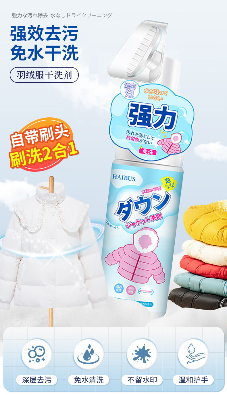 ZYUO日本家用羽绒服清洗剂免水洗快速去污不留水痕羽绒服专用清洁剂 一瓶【试用装】 羽绒服清洗剂