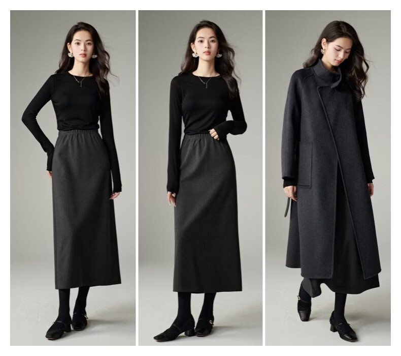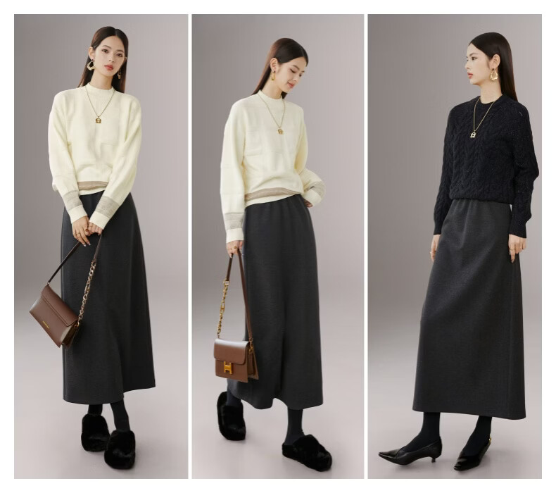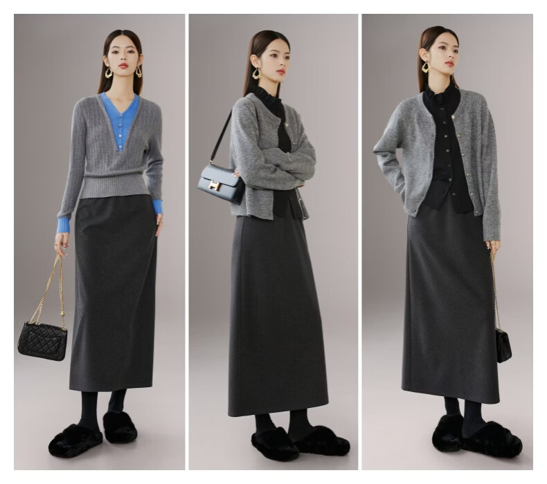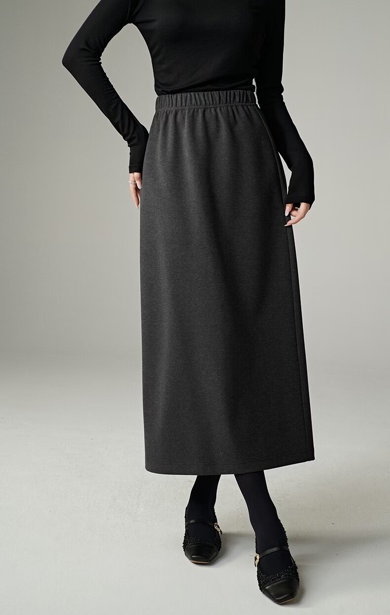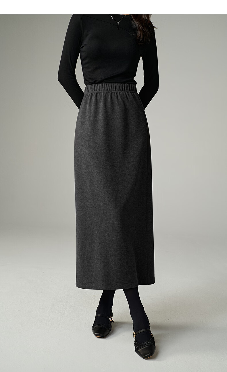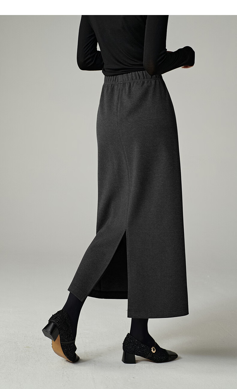 晚白【专享】冬款经典毛呢裙高腰显瘦利落通勤直筒半身裙 麻灰色 M