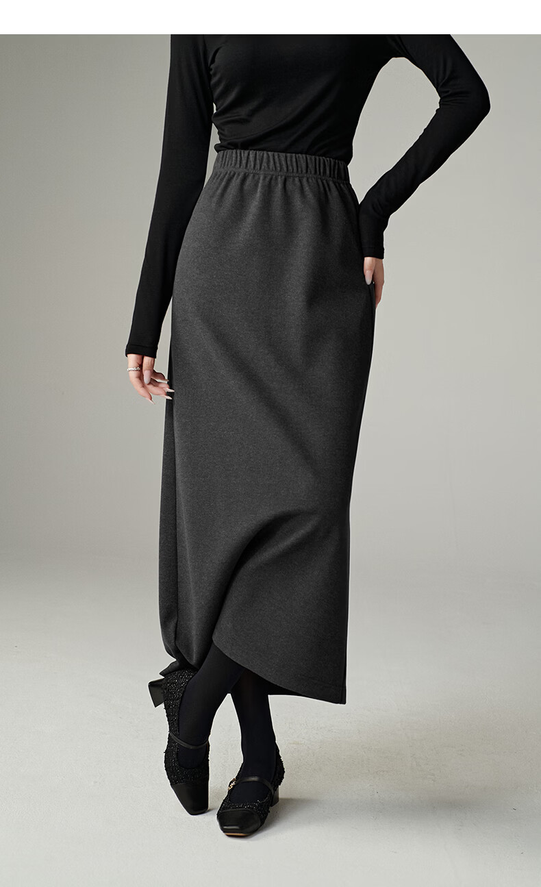 晚白【新品】2026年春款时尚毛呢直筒长裙高腰修身气质通勤半身裙 杏色 XL