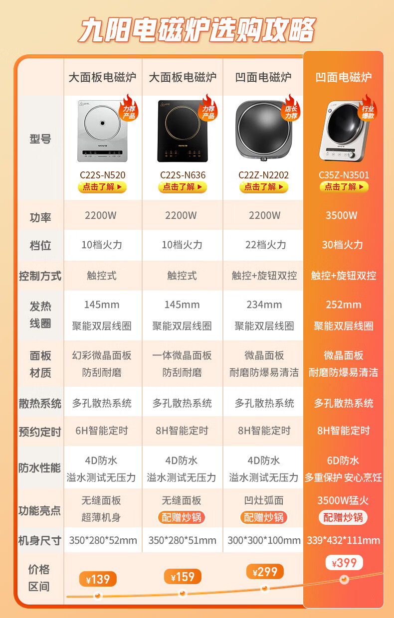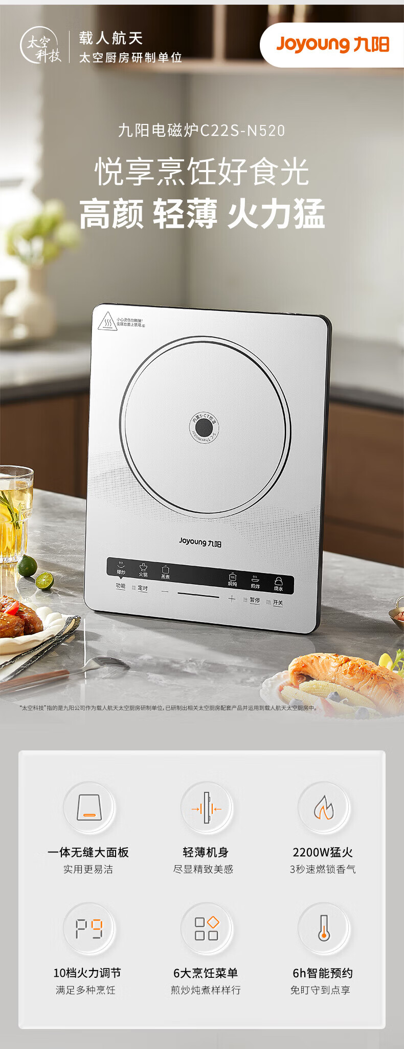 九阳(Joyoung)电磁炉2200W大功率家用电磁灶火锅炉一体微晶面板一键爆炒炒菜智能定时C22S-N520