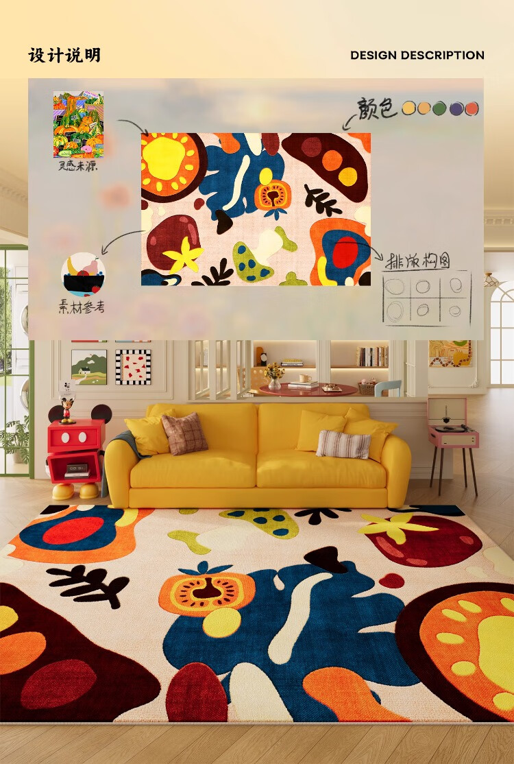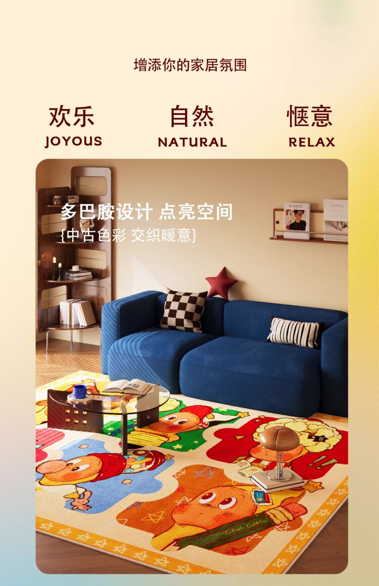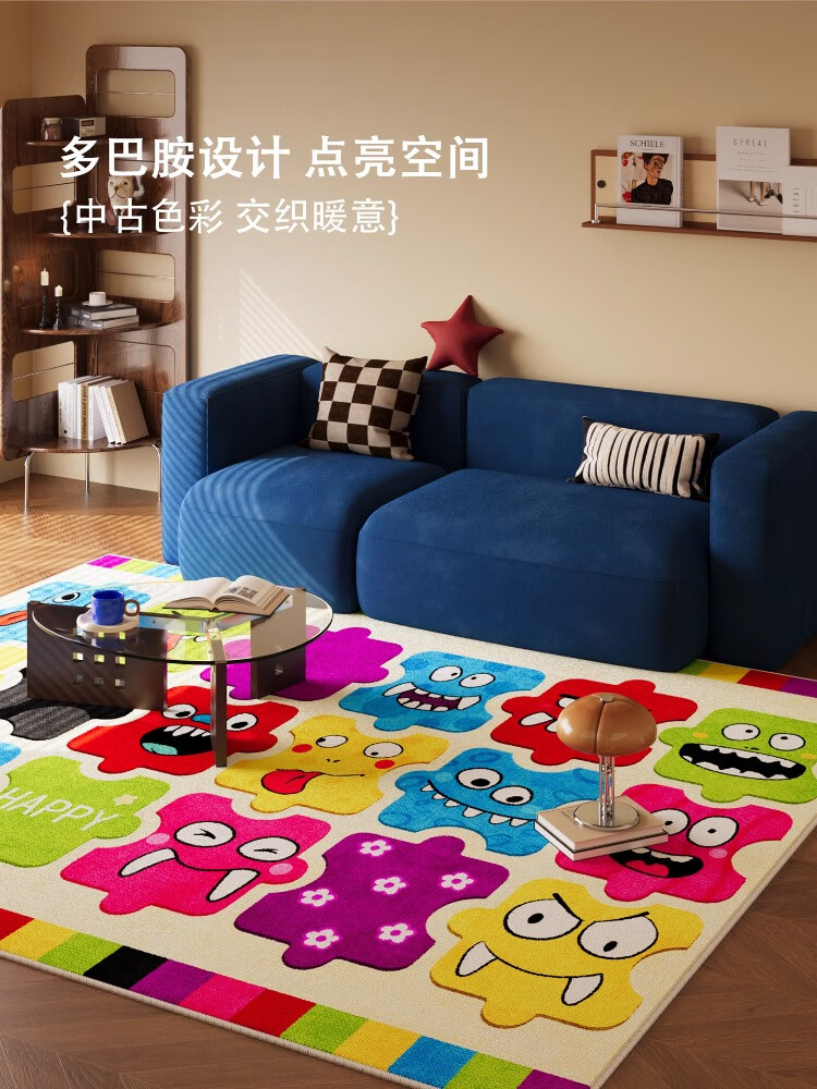 KAYE儿童房地毯卧室阅读区垫子免洗可擦客厅书房沙发茶几毯卡通床边毯 SJR-Y快乐跳跳1 60X160cm