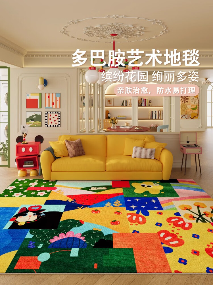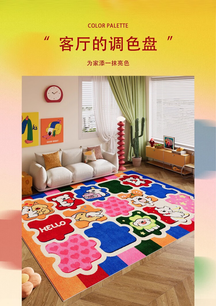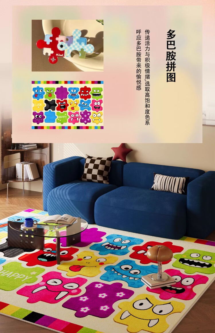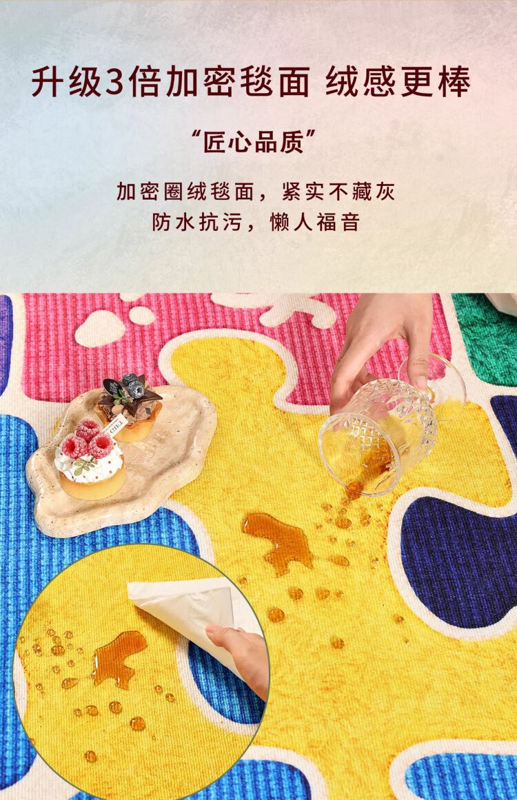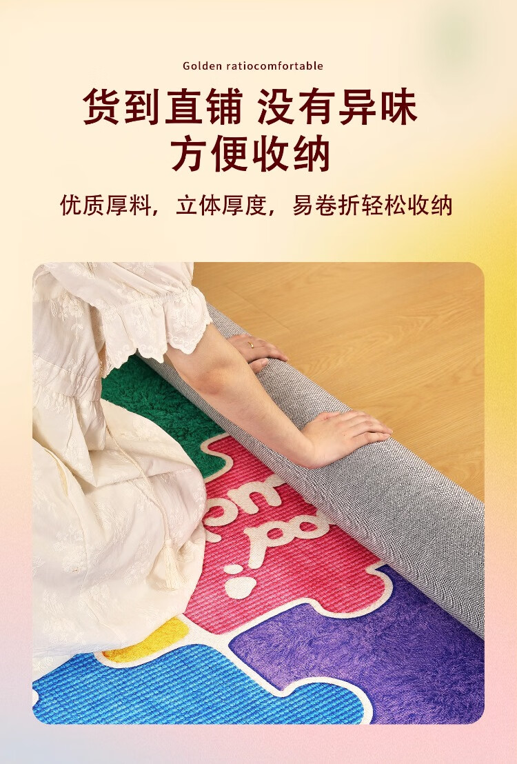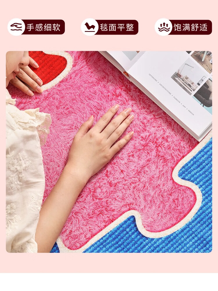 织百佳拼图多巴胺地毯客厅地垫儿童阅读区可爱卧室隔音脚垫防水可擦免洗 H安娜红 120*180CM