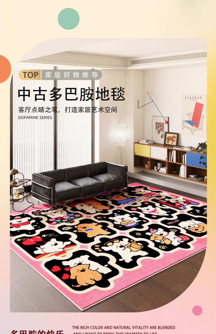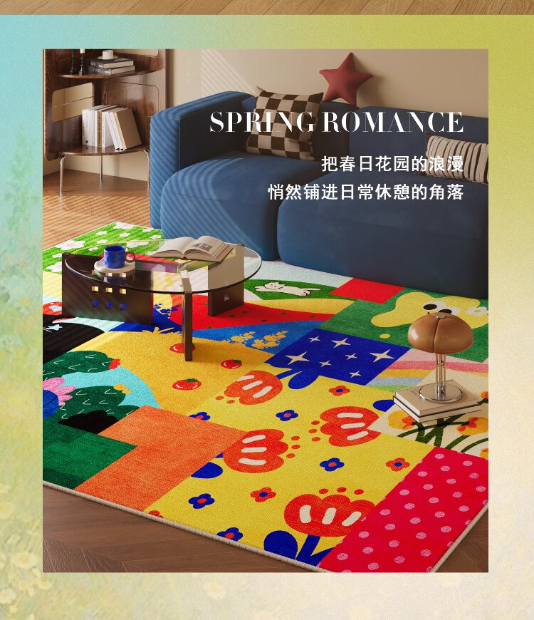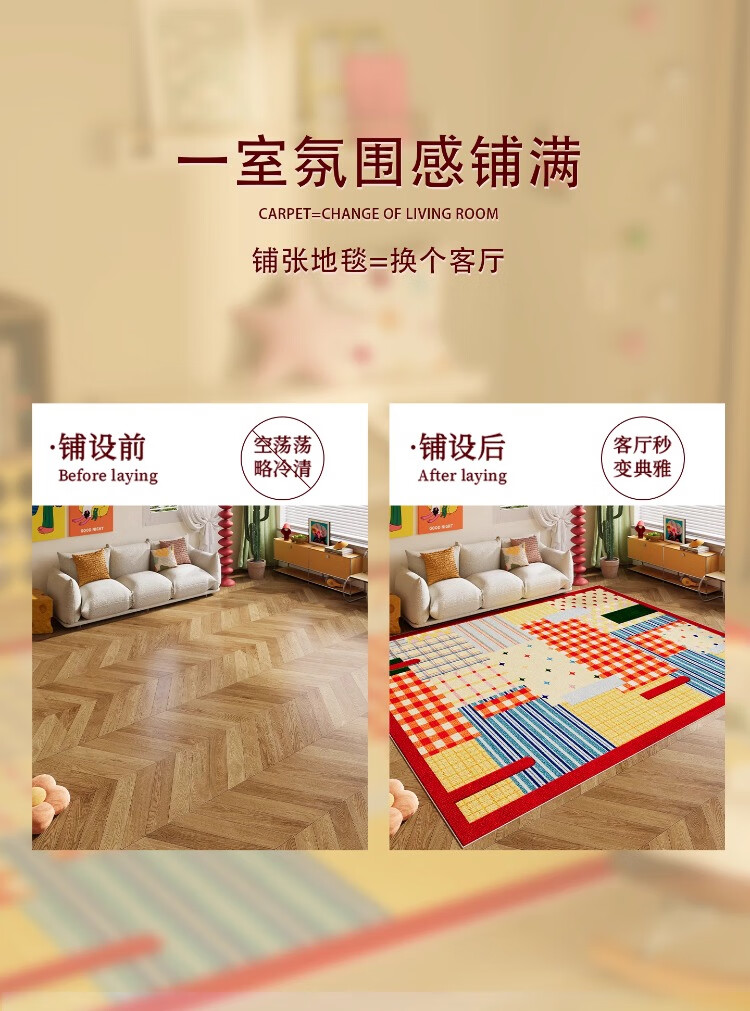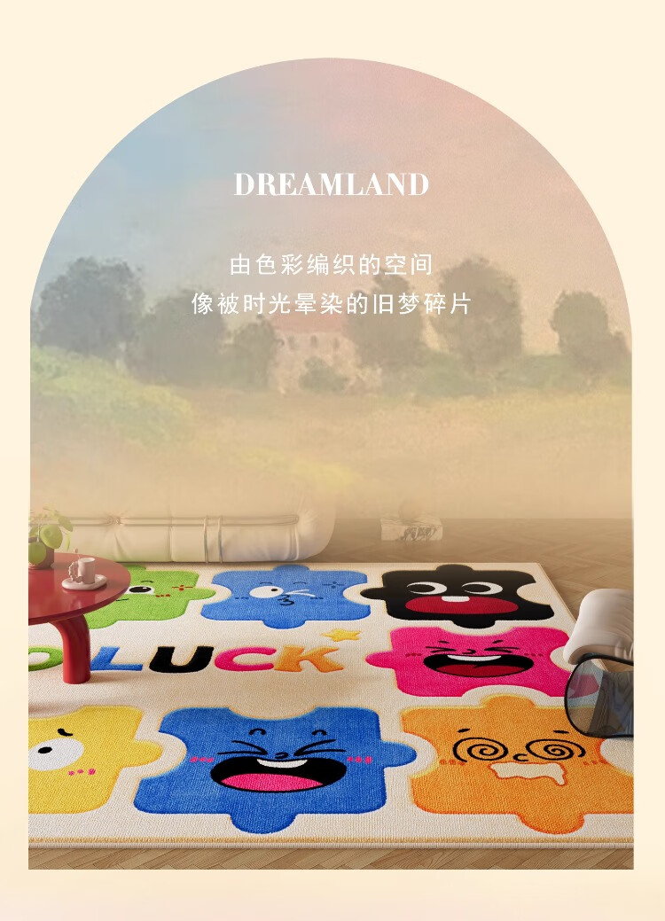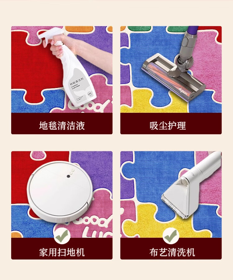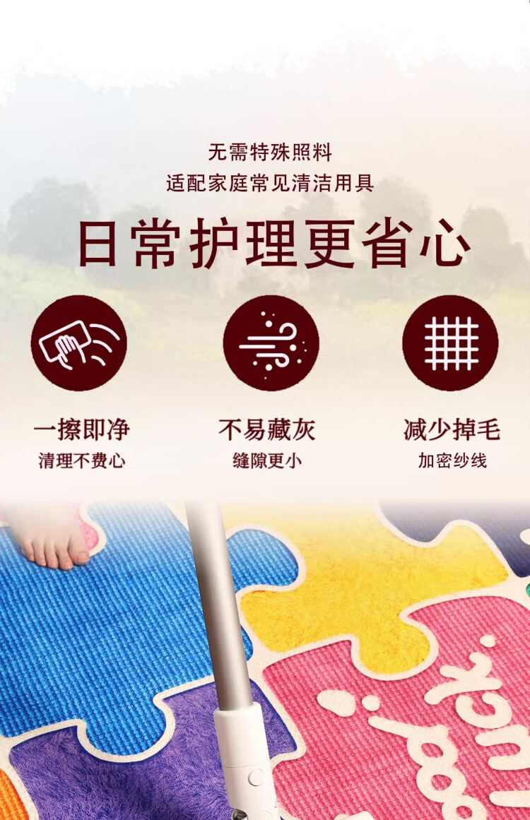 织百佳拼图多巴胺地毯客厅地垫儿童阅读区可爱卧室隔音脚垫防水可擦免洗 H安娜红 120*180CM