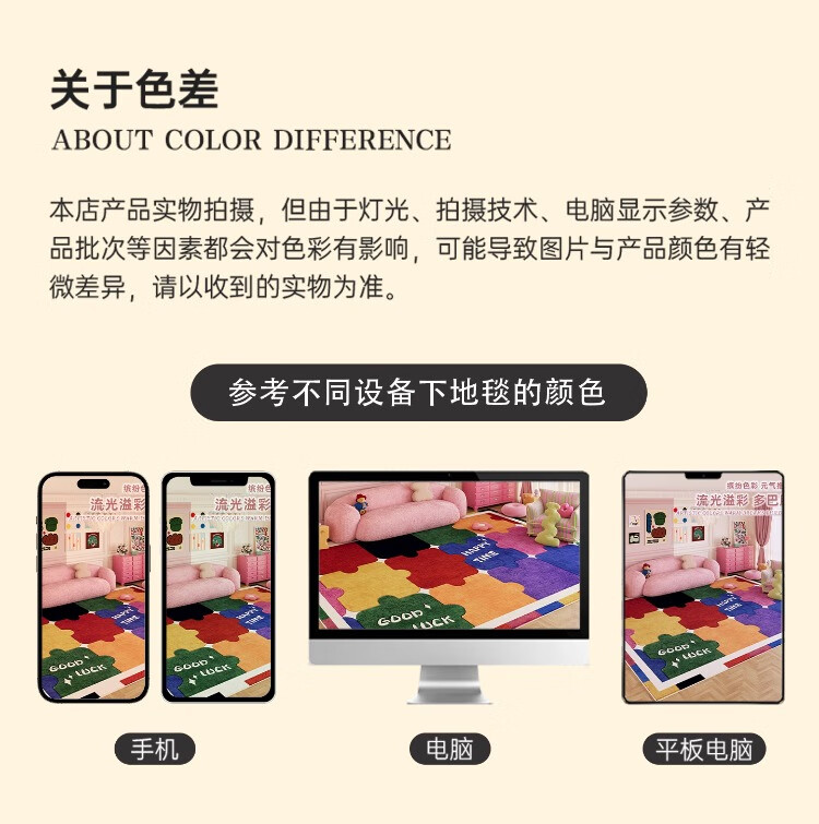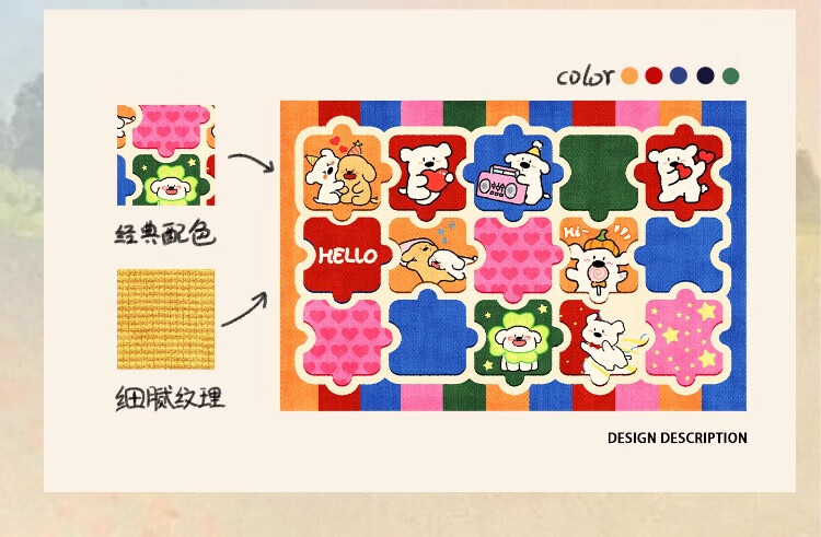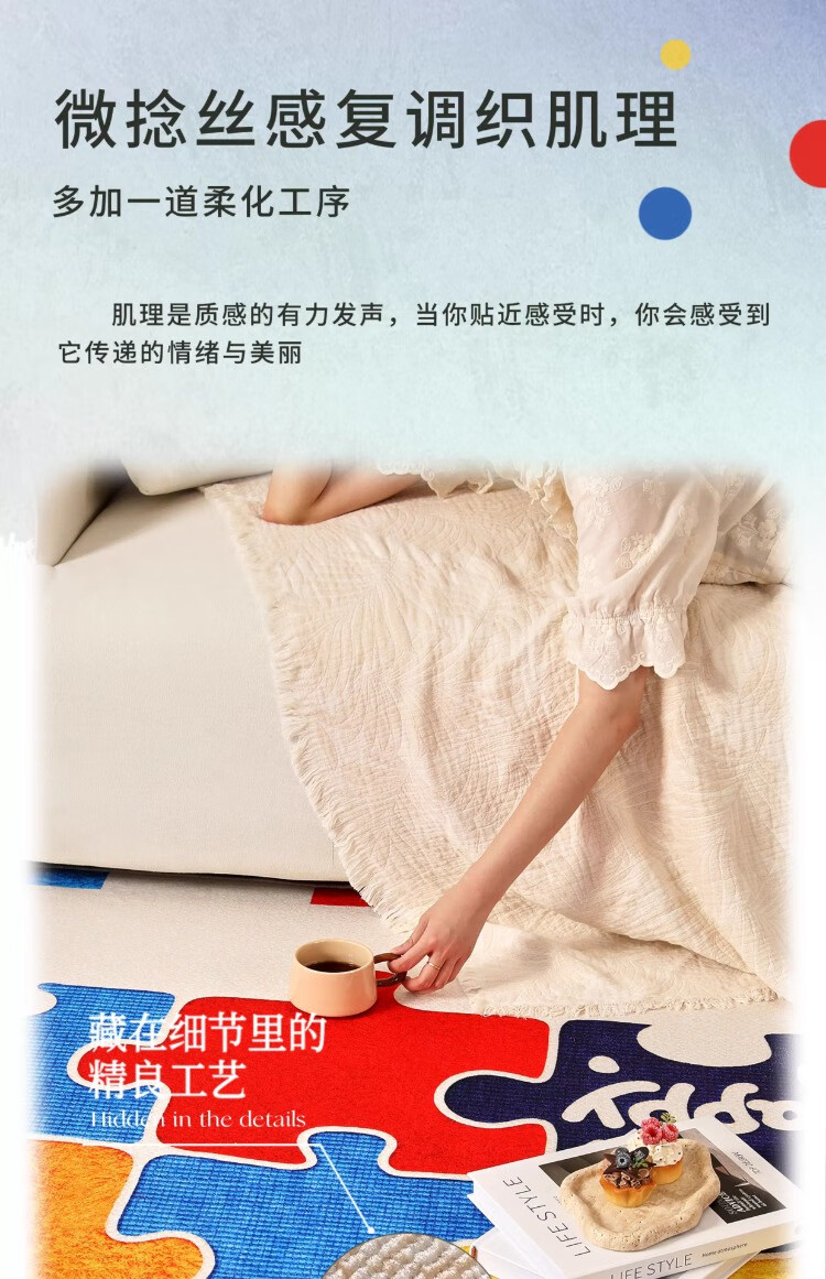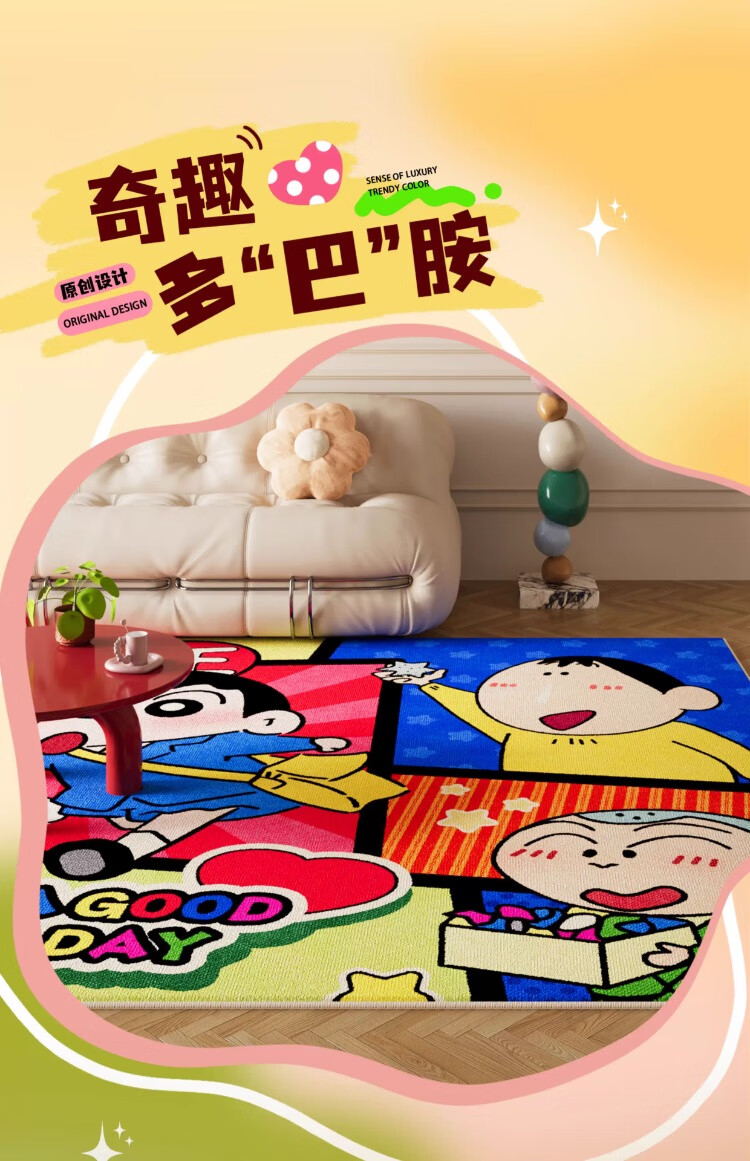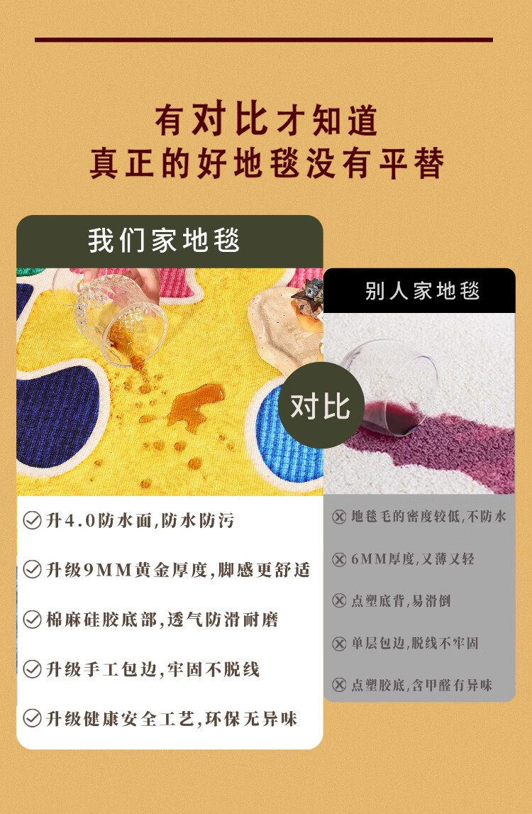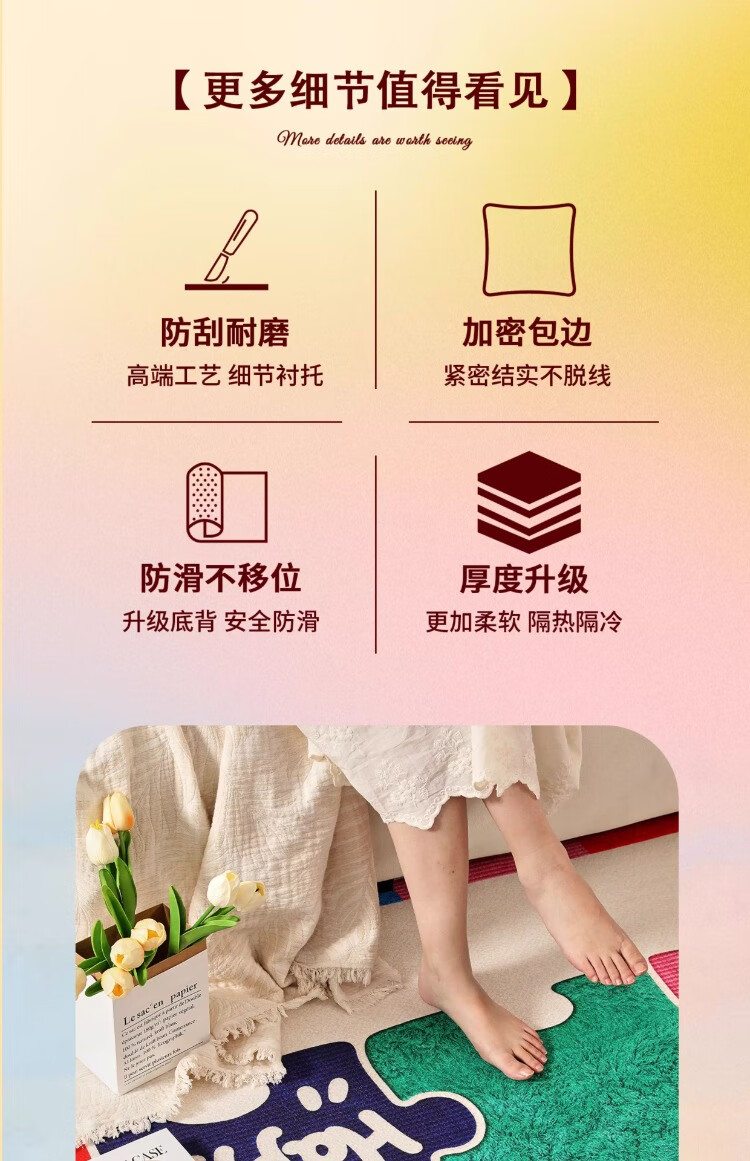 织百佳拼图多巴胺地毯客厅地垫儿童阅读区可爱卧室隔音脚垫防水可擦免洗 H安娜红 120*180CM