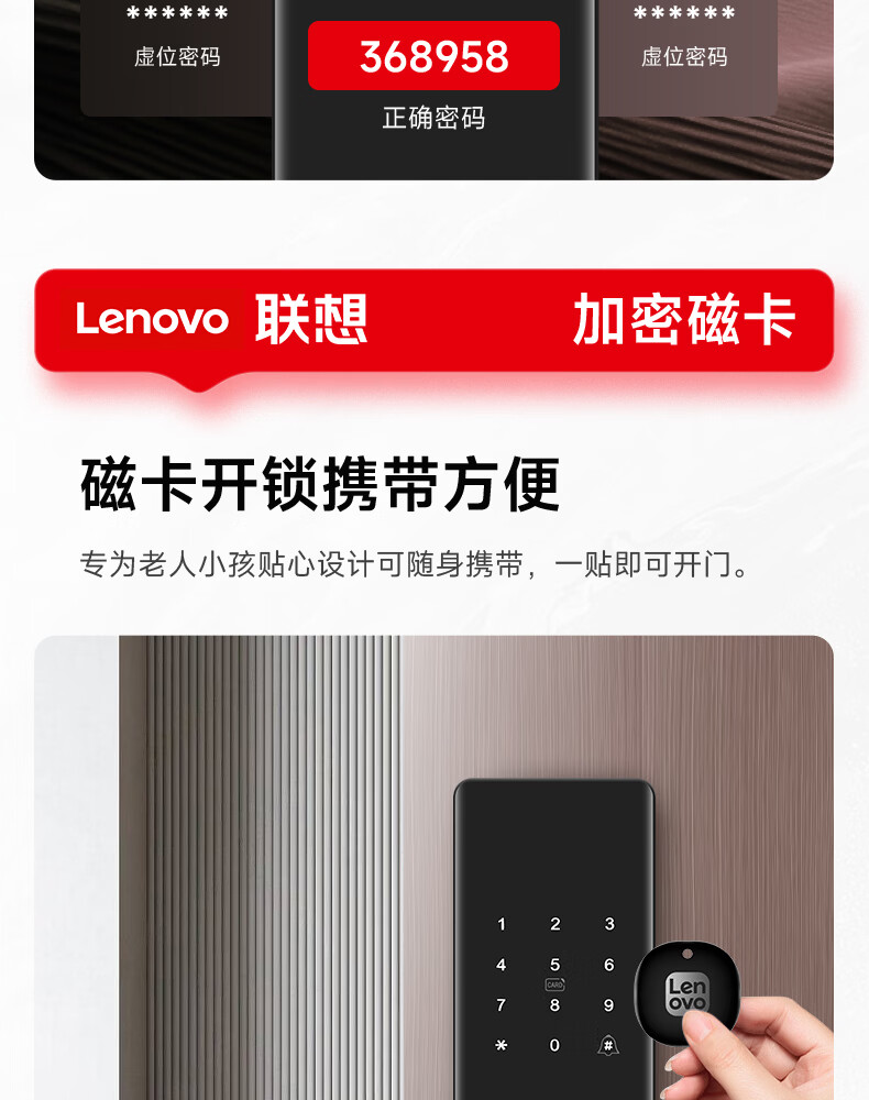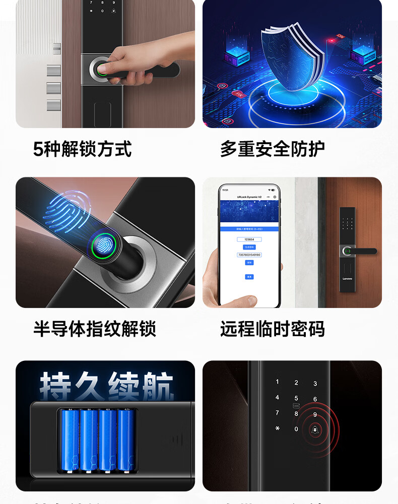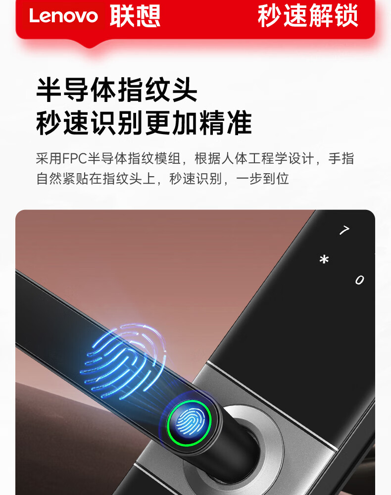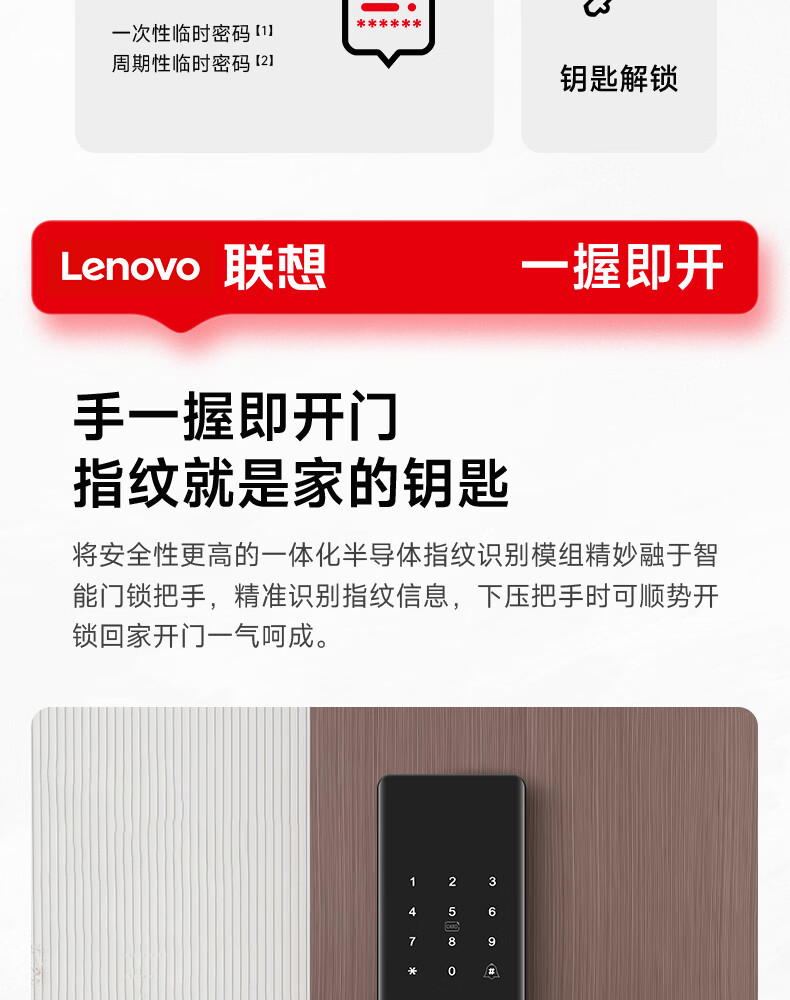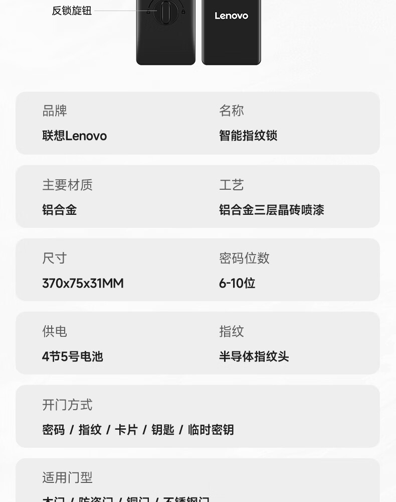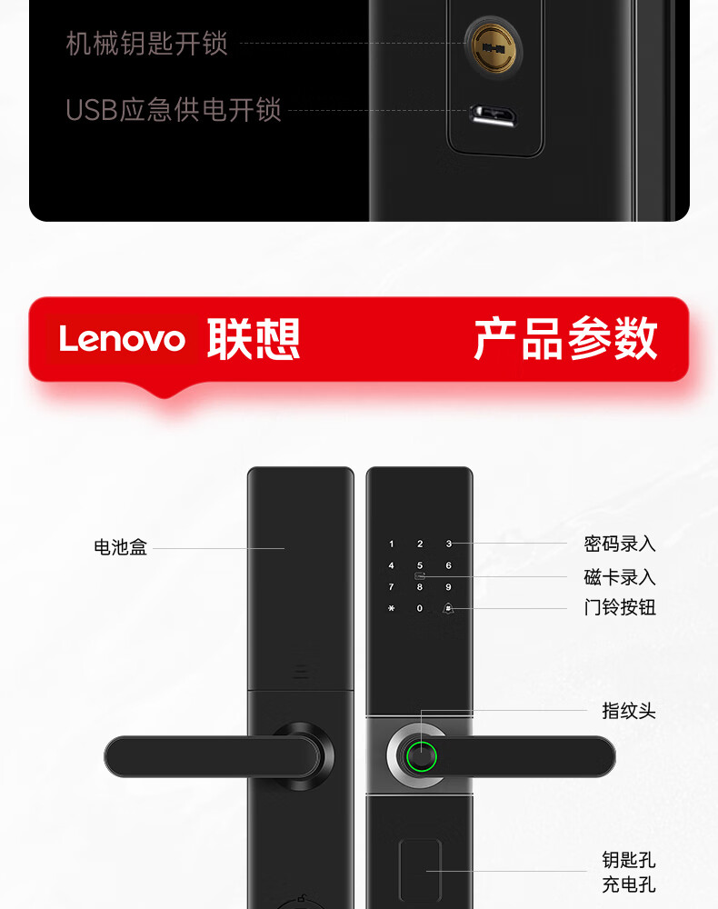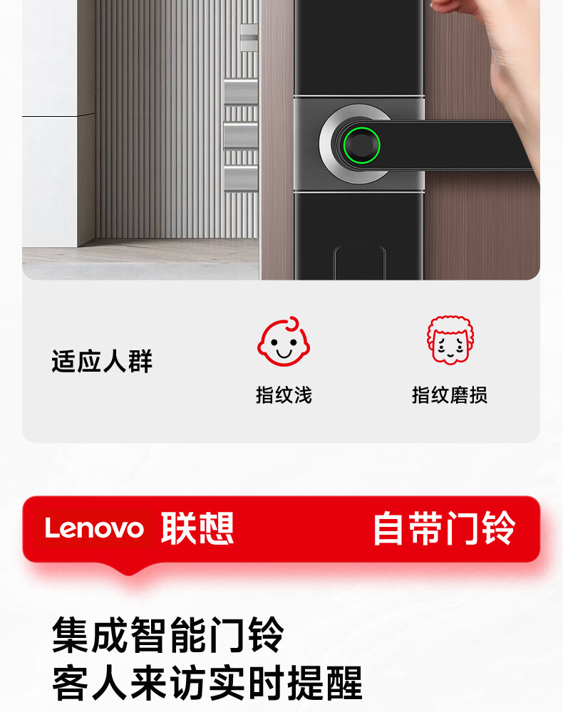 联想E20 指纹锁 智能门锁 民宿公寓 密码锁 入户门 智能锁 家用 防盗门 电子锁 C级锁芯 免费安装