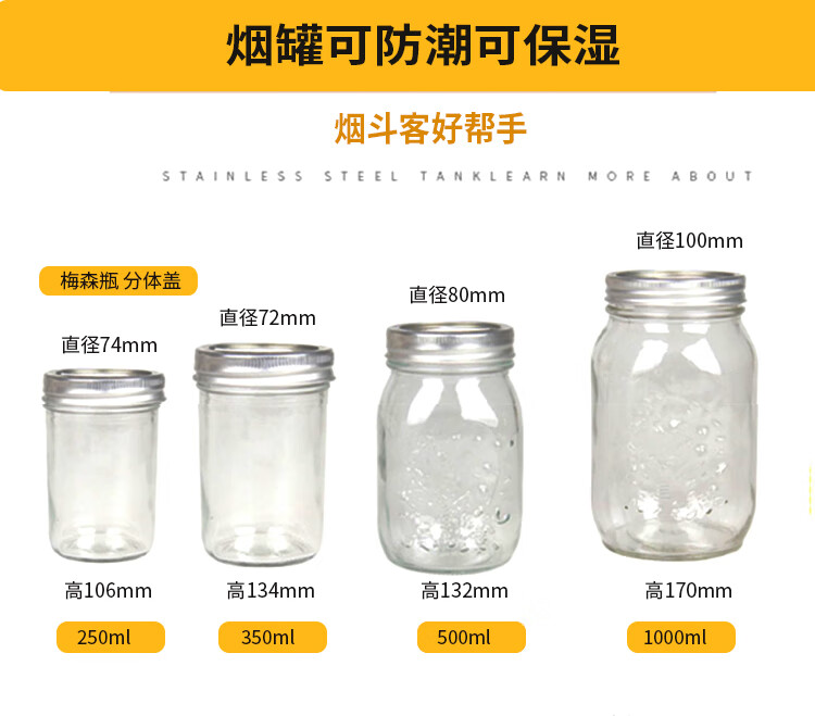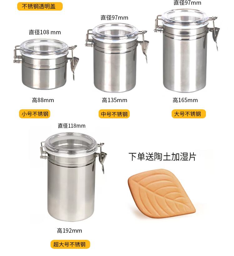 MPPMCK梅森瓶保湿罐斗粮储存密封罐斗草罐分体盖玻璃烟盒送保湿陶土片 3个小号不锈钢保湿罐带保湿片