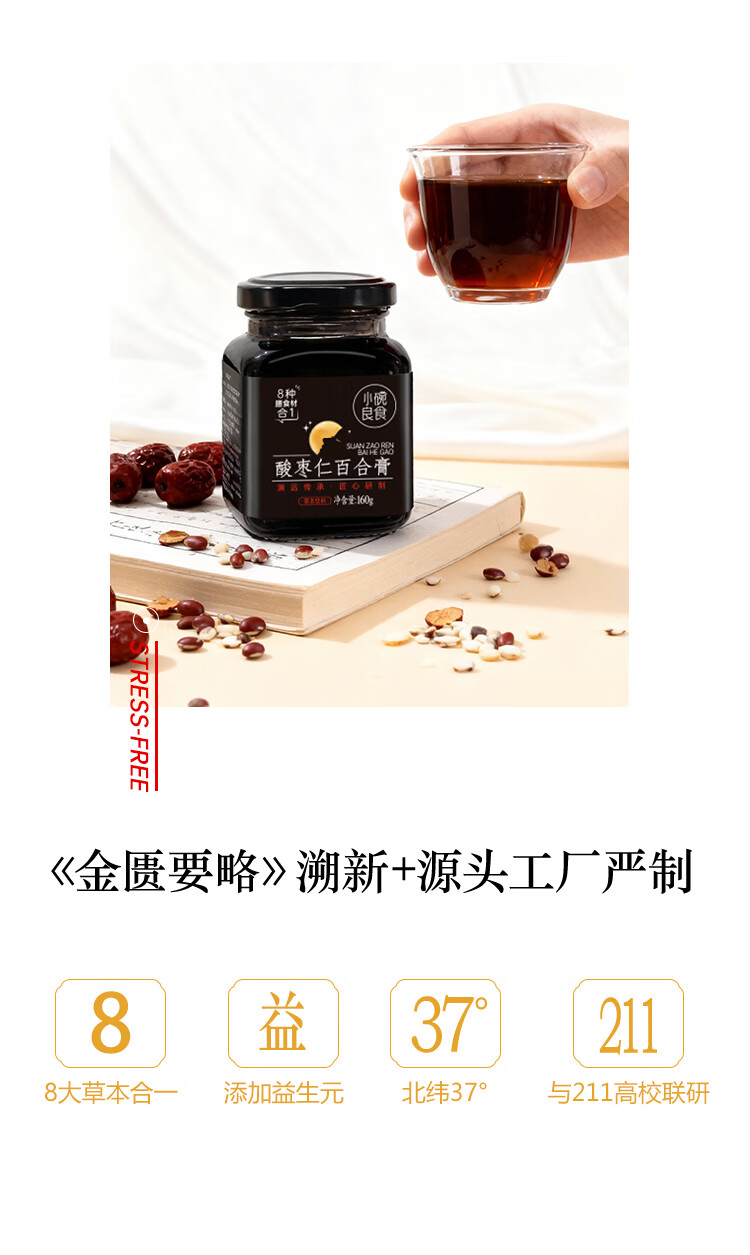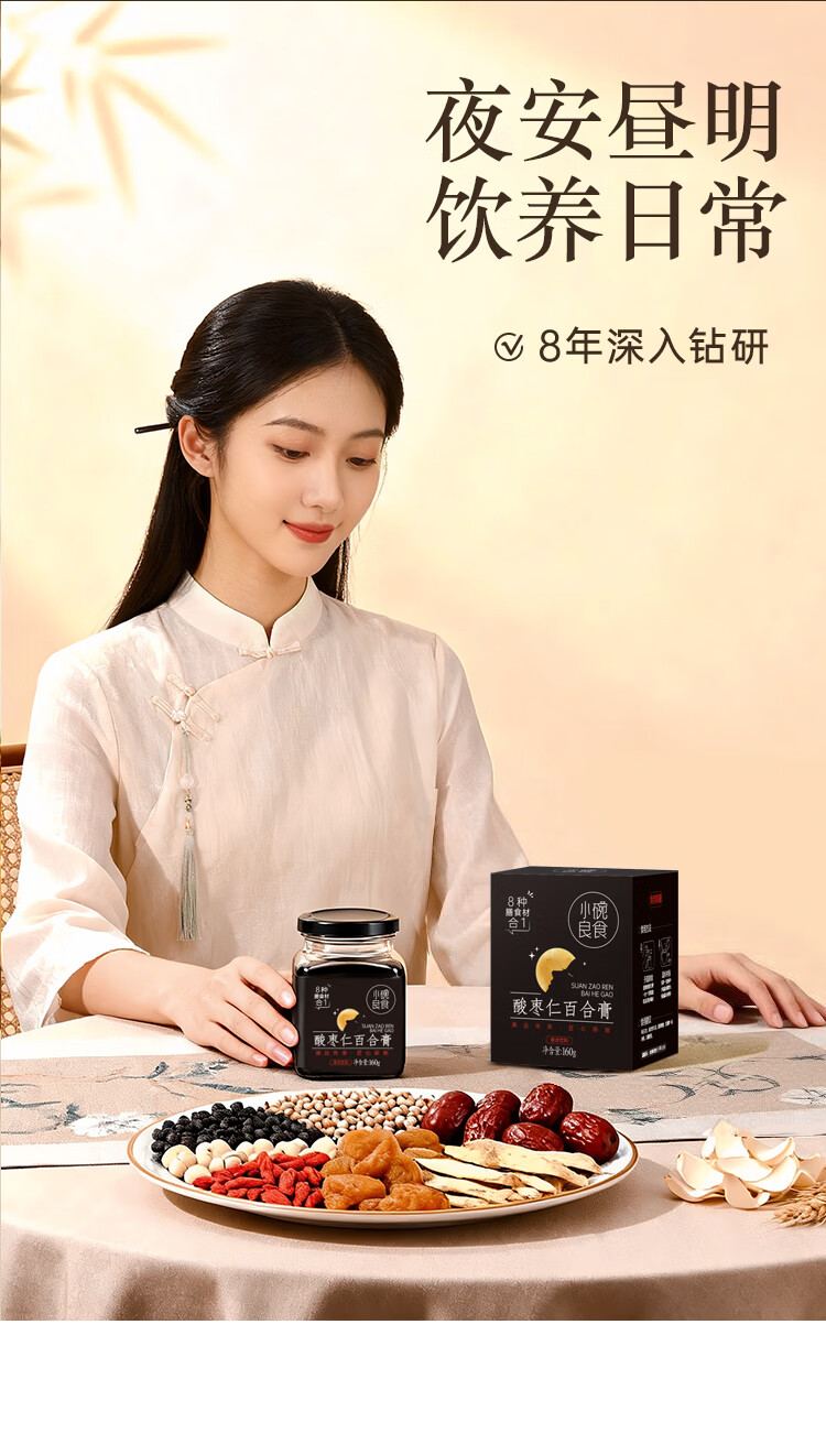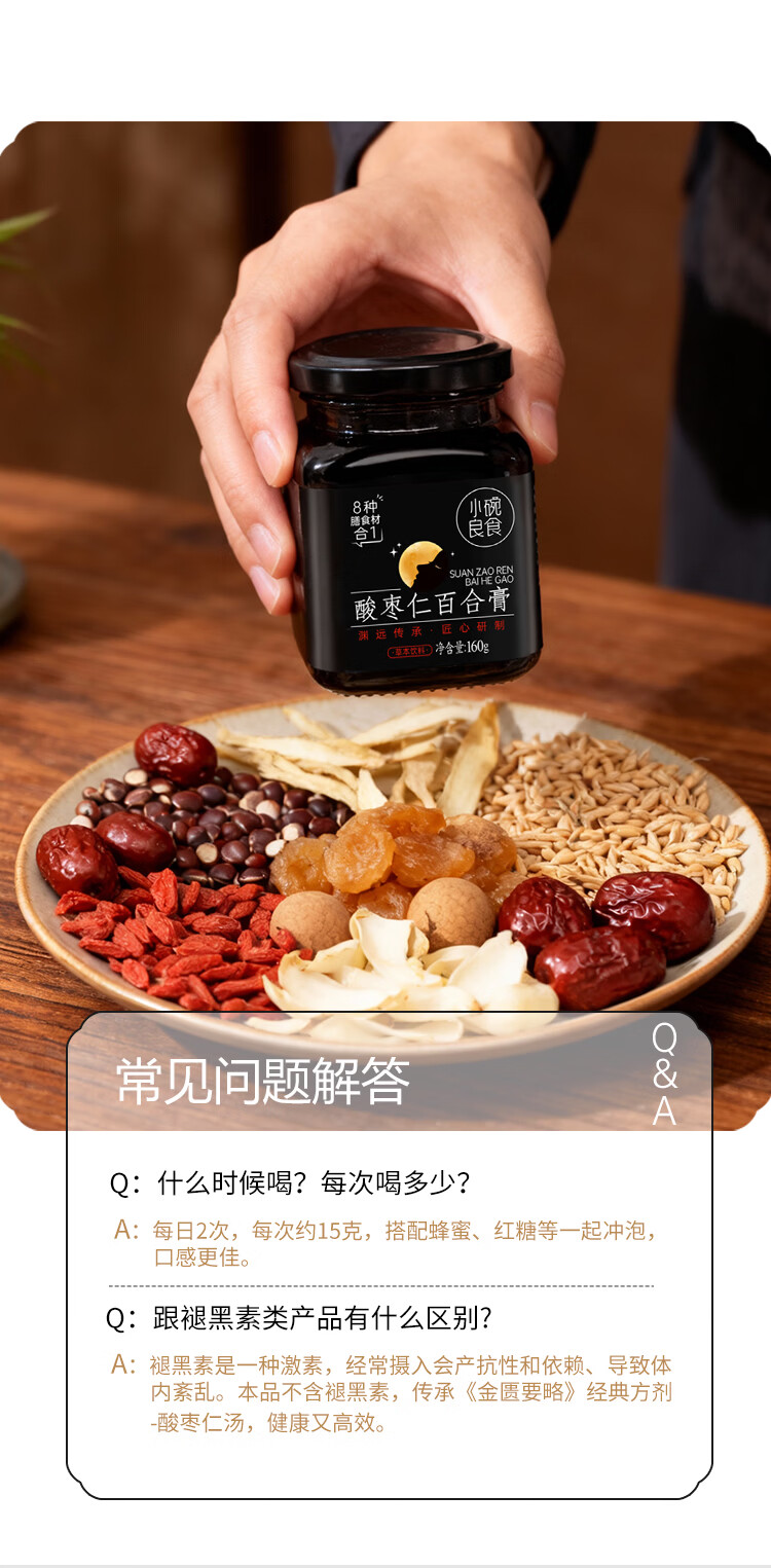 小碗良食酸枣仁百合膏安睡膏睡前难眠滋养汤茶正品正宗女士男士成人 160g*1瓶