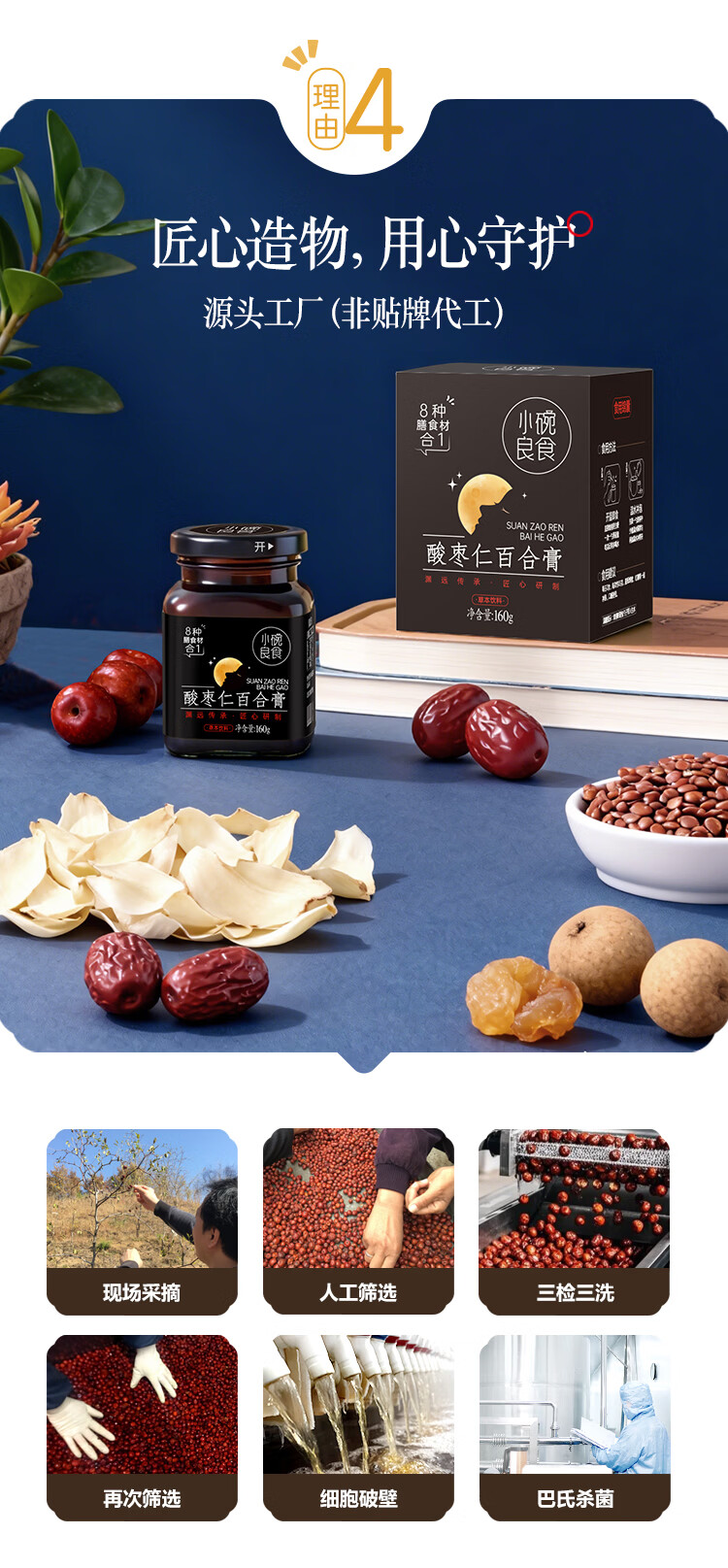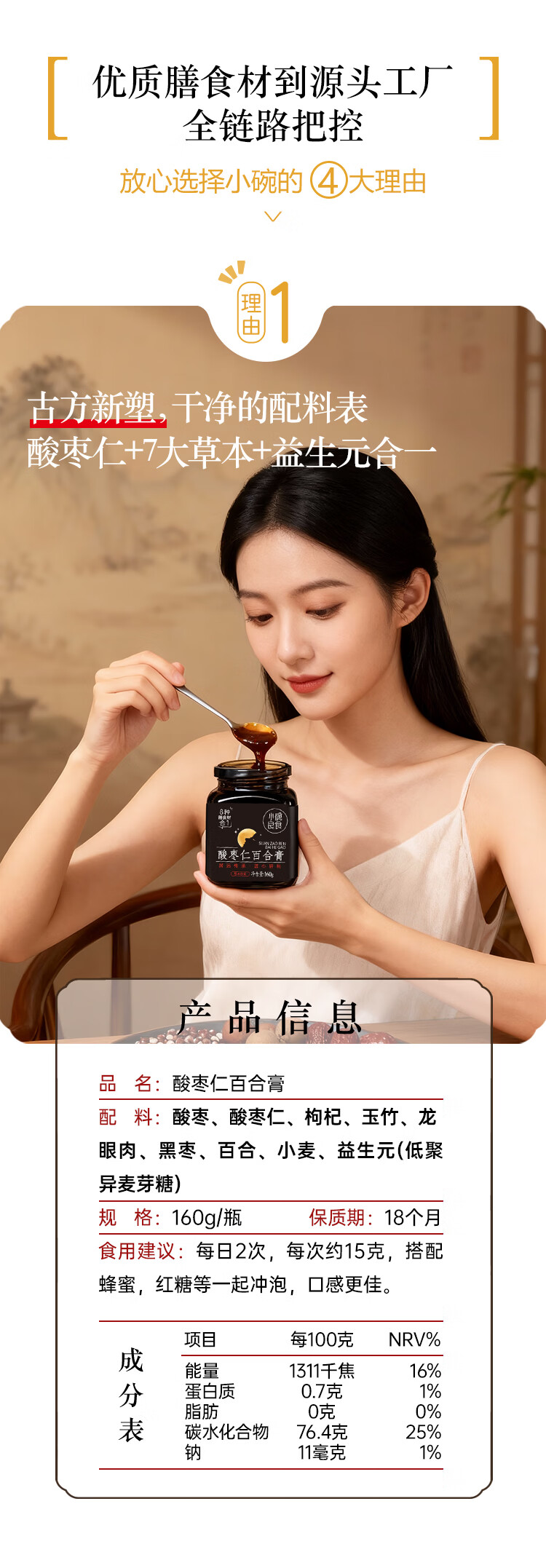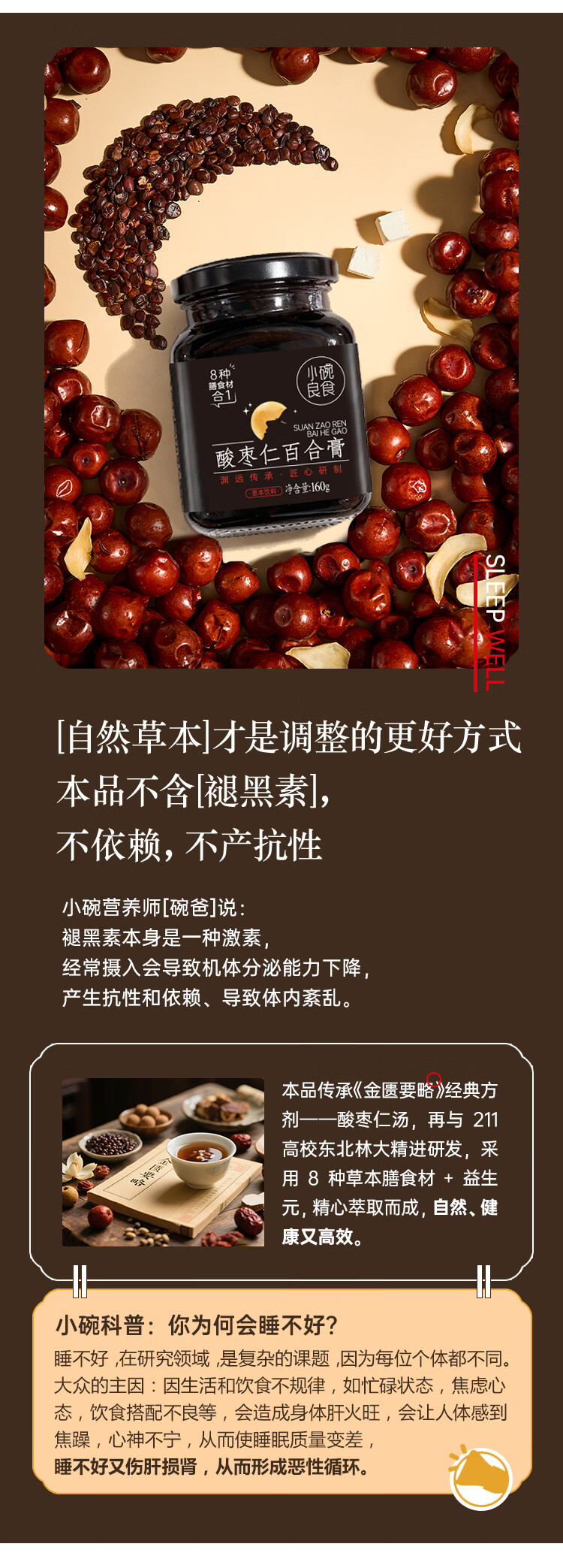 小碗良食酸枣仁百合膏安睡膏睡前难眠滋养汤茶正品正宗女士男士成人 160g*1瓶