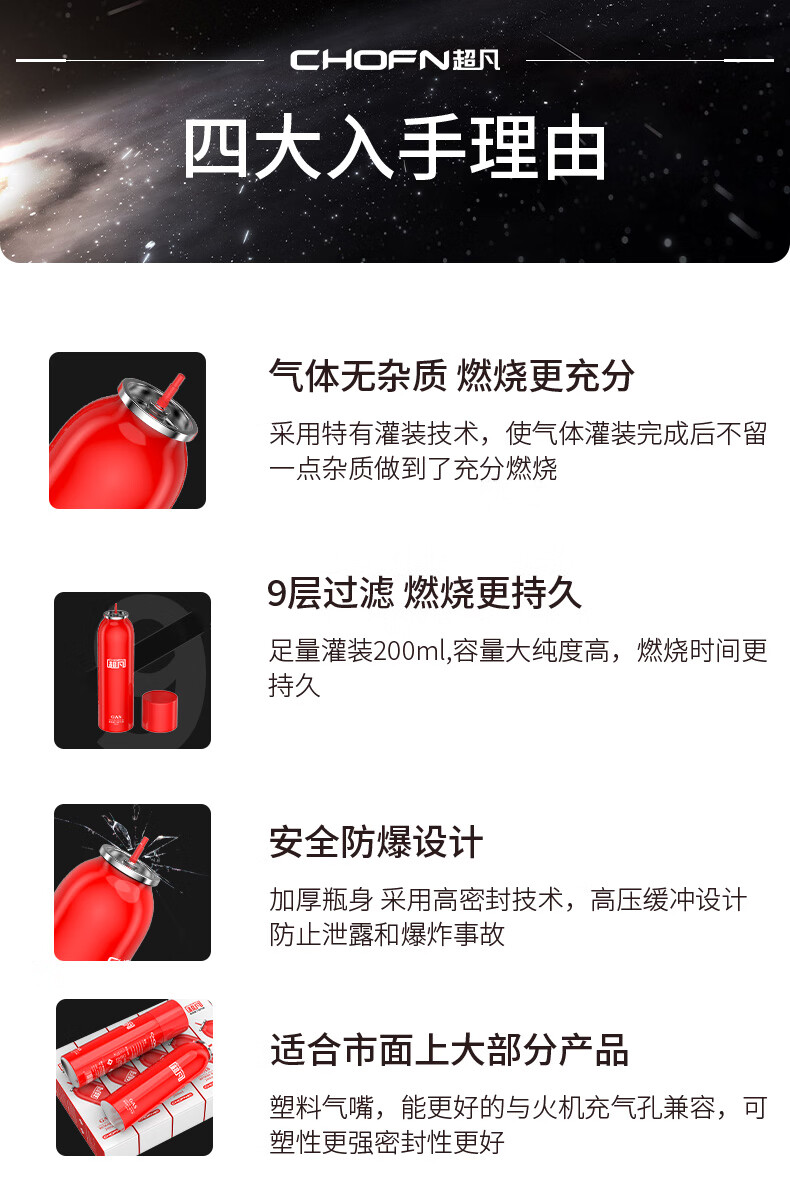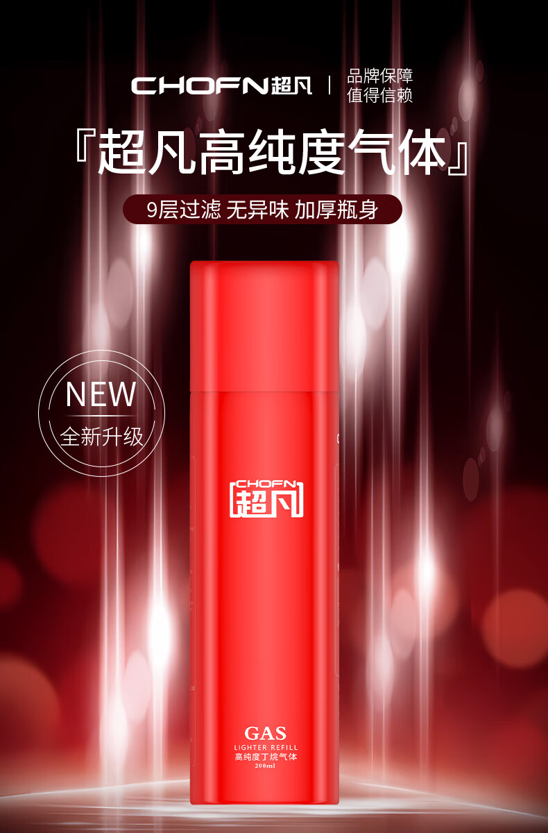 超凡防风打火机气体充气罐 打火机通用丁烷气体充气瓶雪茄打火机 【新款小红瓶】打火机充气瓶 1000ml 共5瓶