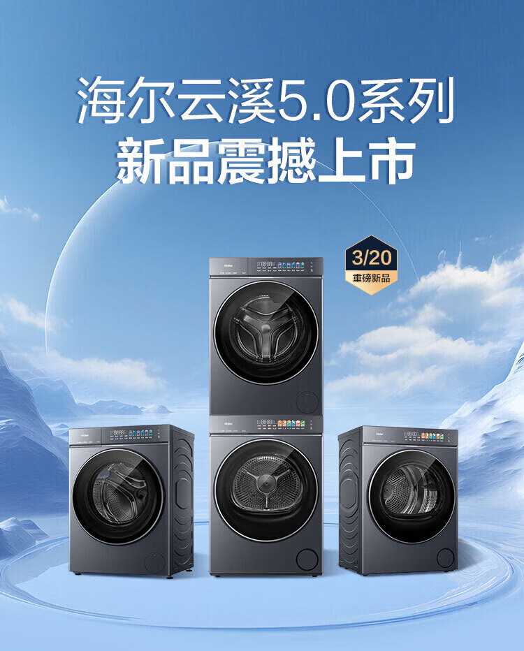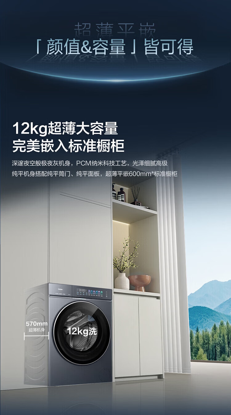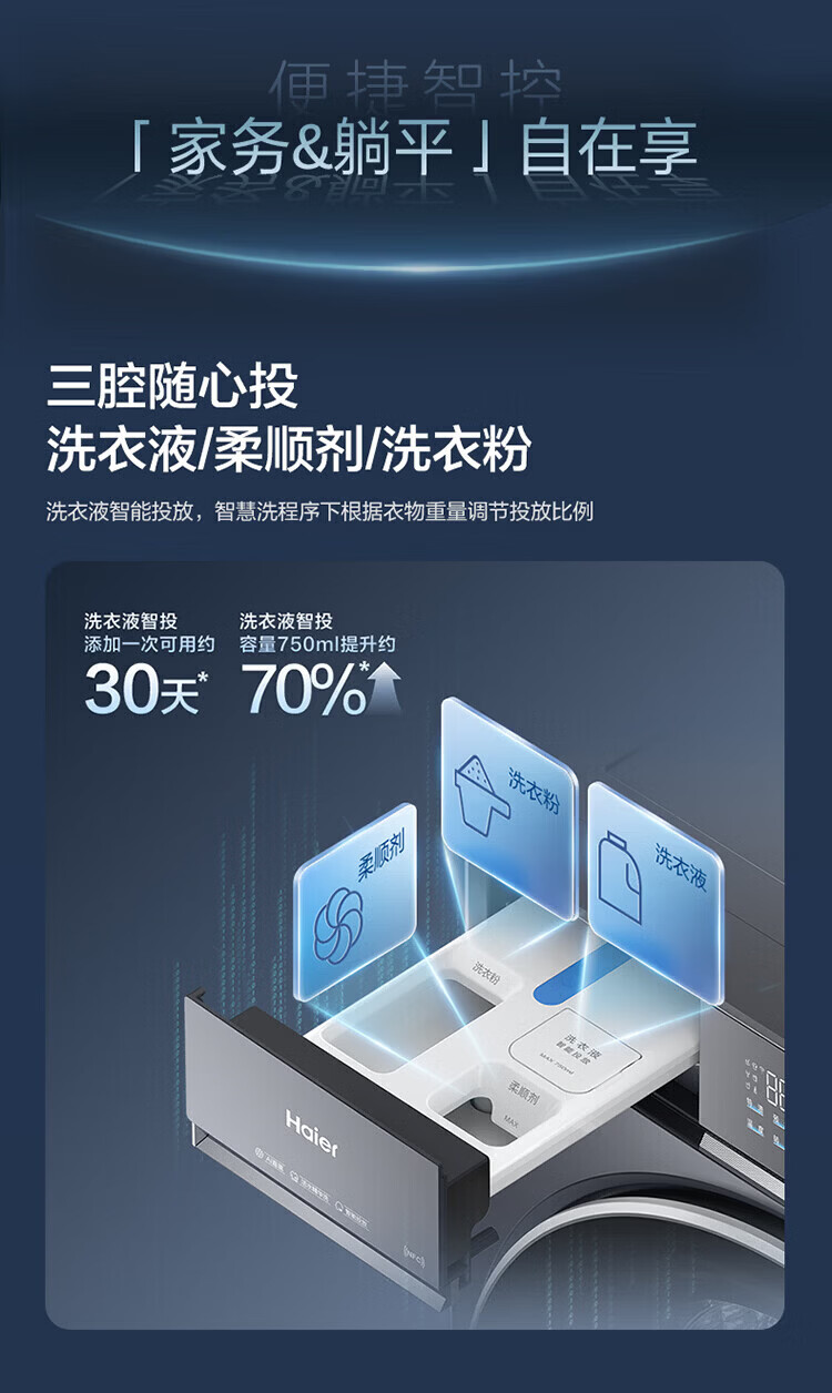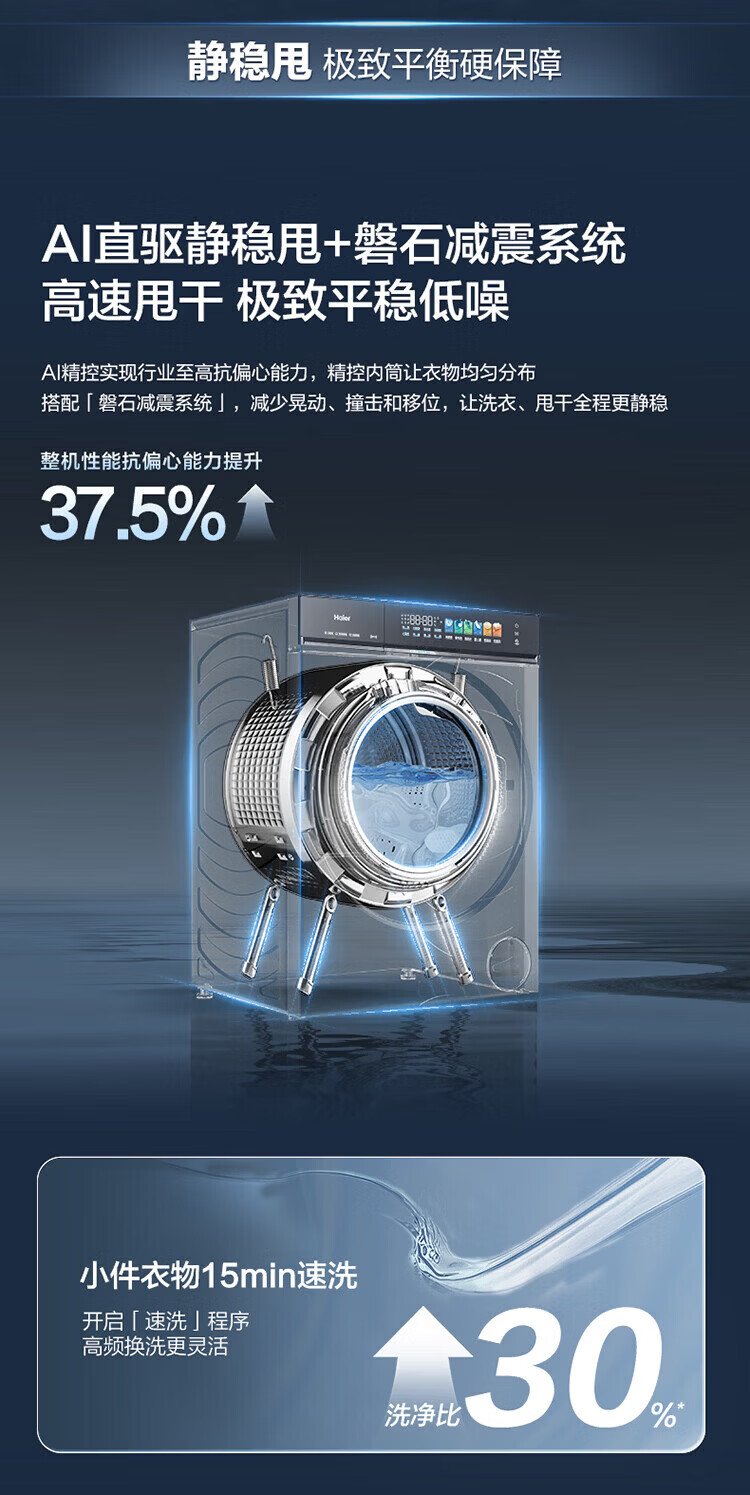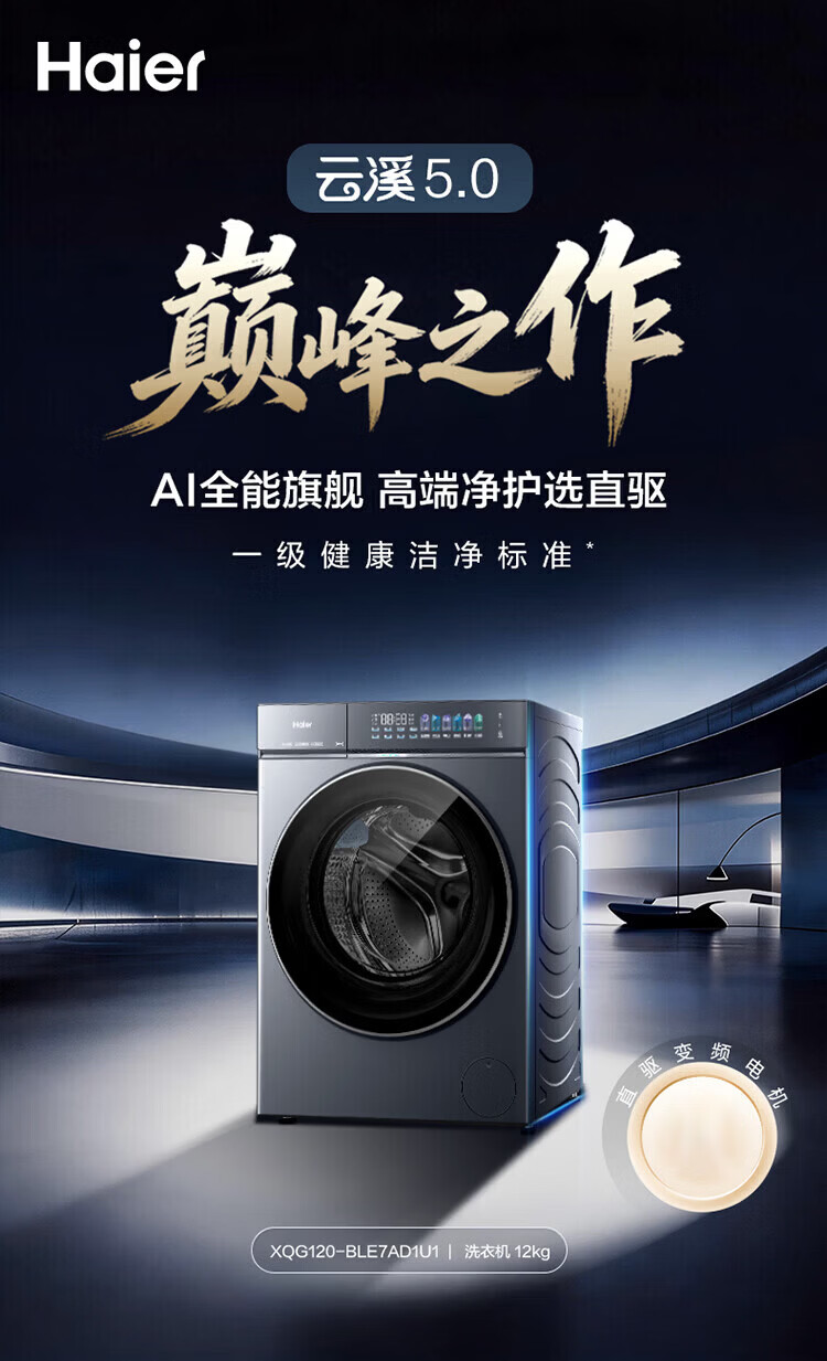 海尔(Haier)云溪5.0 D1 全自动滚筒洗衣机12KG 家用大容量全家筒 AI直驱洁净双效除菌 BLE7AD1U1 全家筒12KG滚筒 单洗