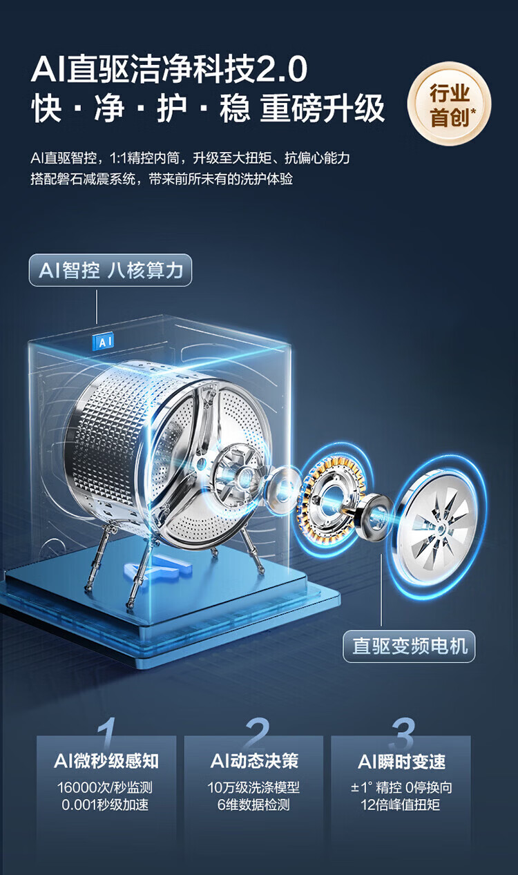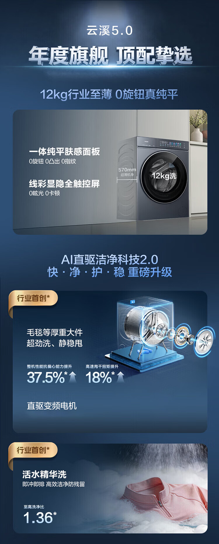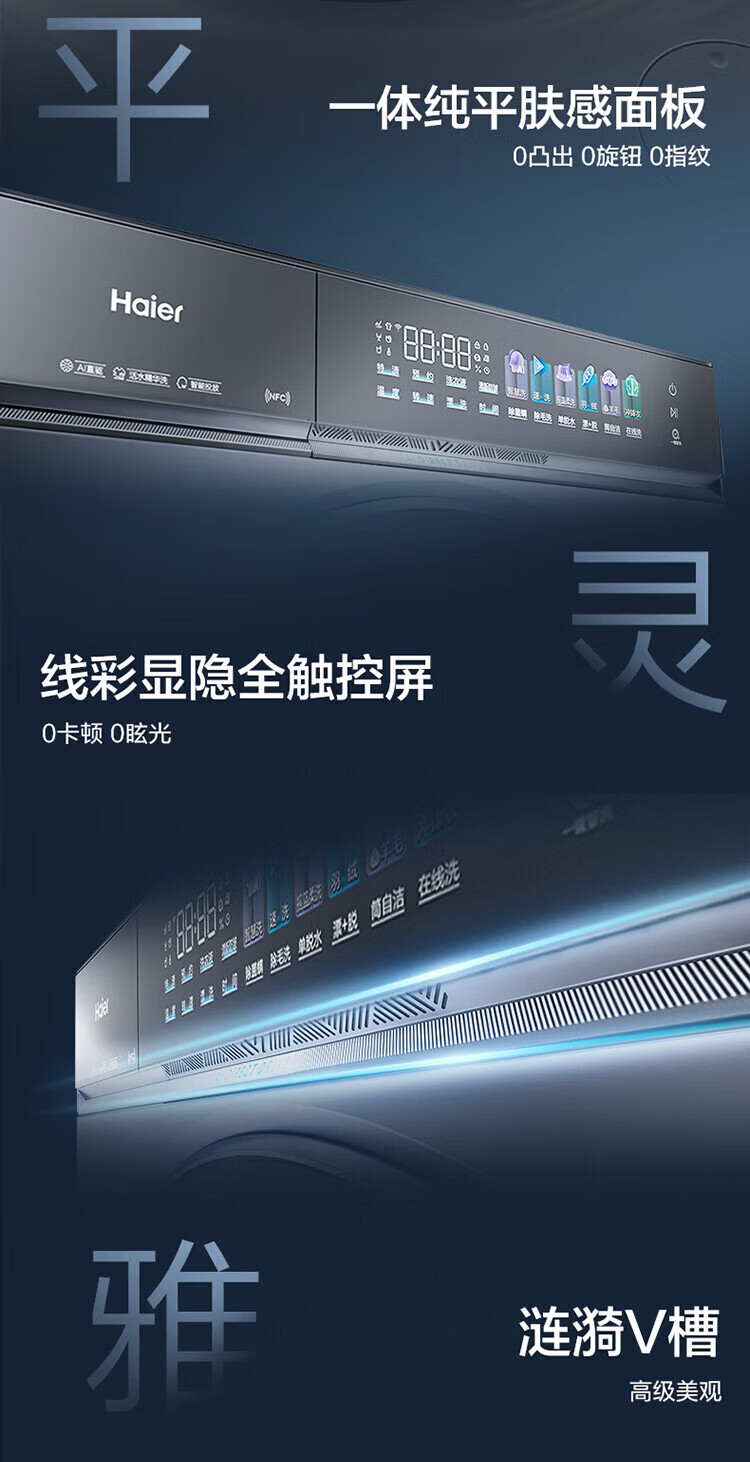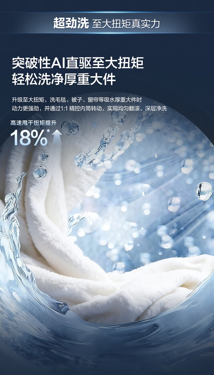 海尔(Haier)云溪5.0 D1 全自动滚筒洗衣机12KG 家用大容量全家筒 AI直驱洁净双效除菌 BLE7AD1U1 全家筒12KG滚筒 单洗