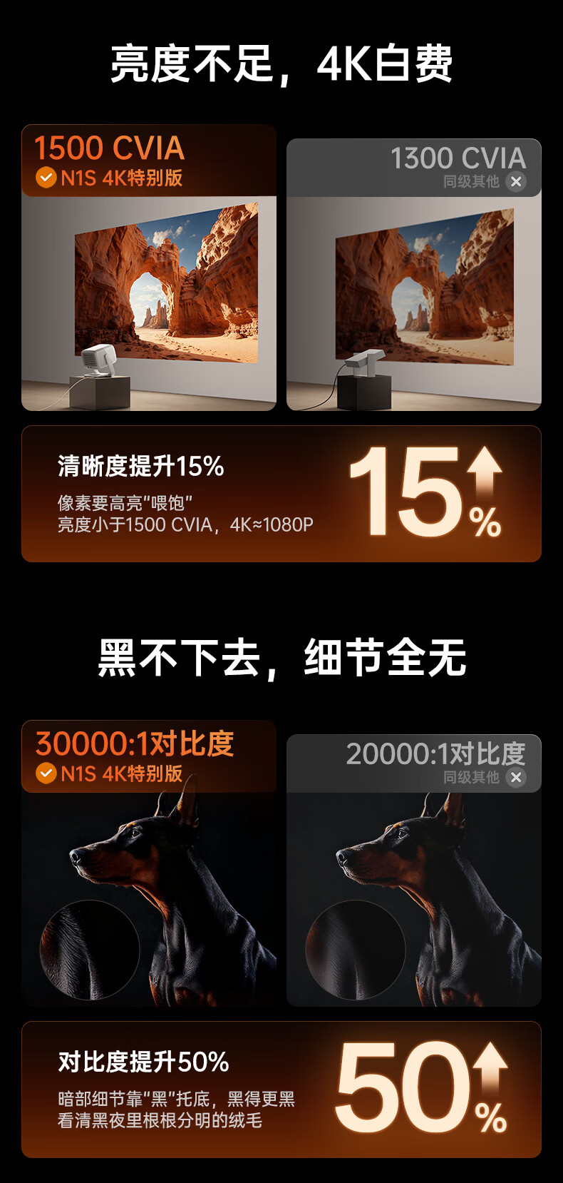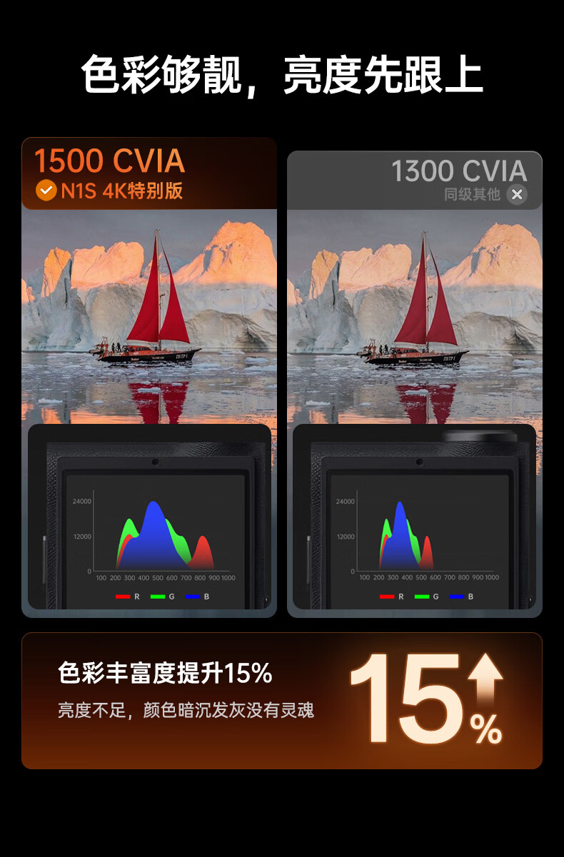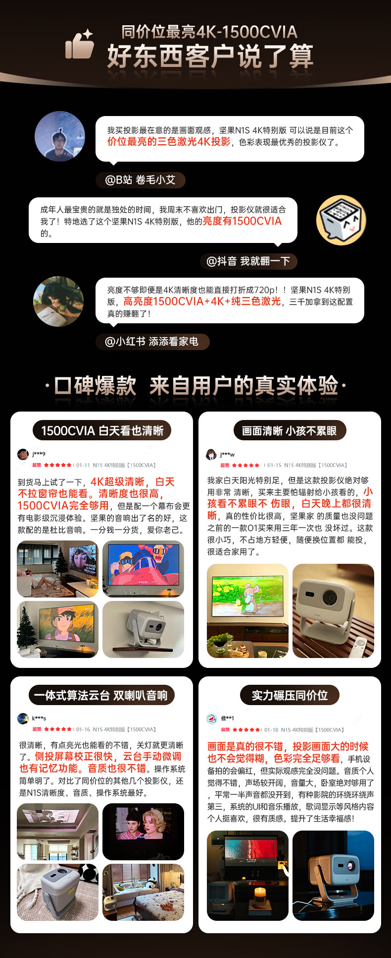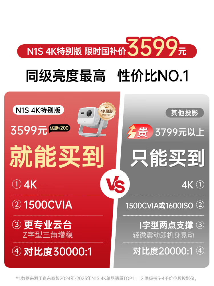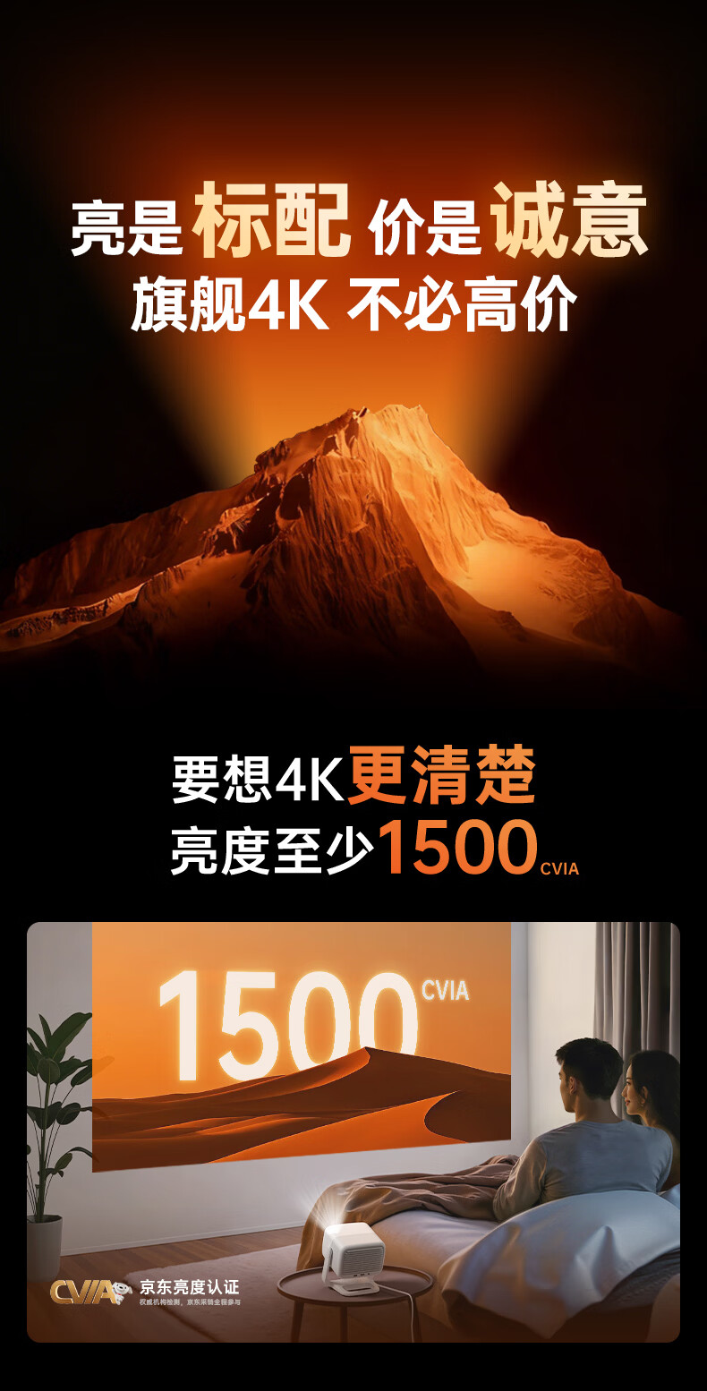 坚果投影(JMGO)N1S 4K特别版 三色激光云台投影仪家用 1500CVIA高亮 4K超高清智能家庭影院国家补贴