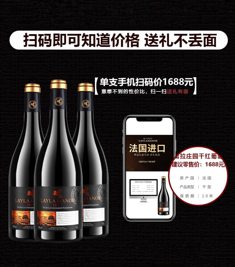 LAYLA法国蕾拉【品牌爆款月销过万】进口14度干红葡萄酒750mlX6礼盒装