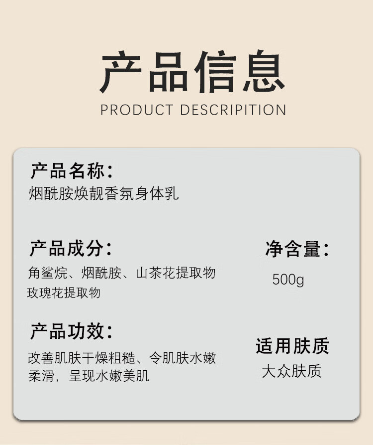 烟酰胺身体乳秋冬保湿补水滋润留香清爽不油腻香体润肤乳 (山茶花香) 500g 1瓶