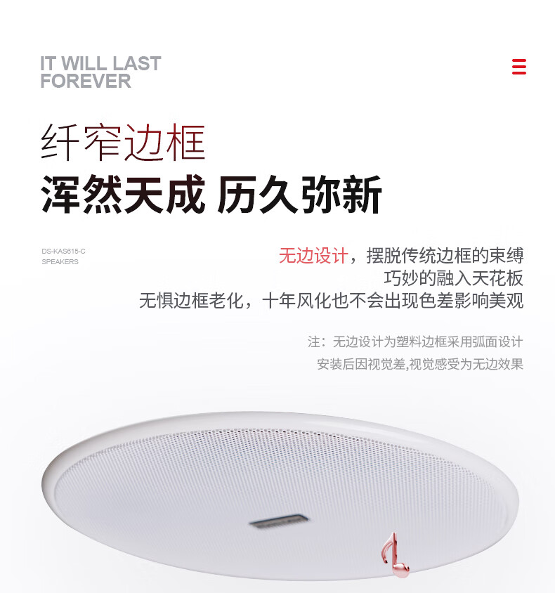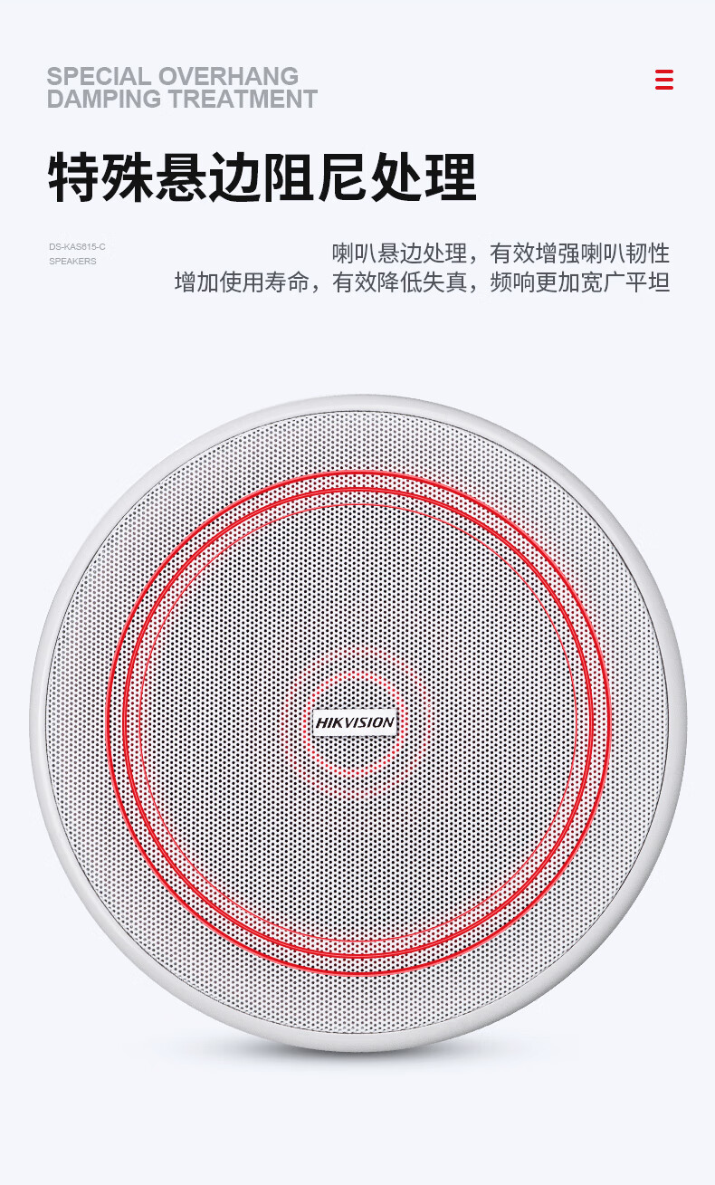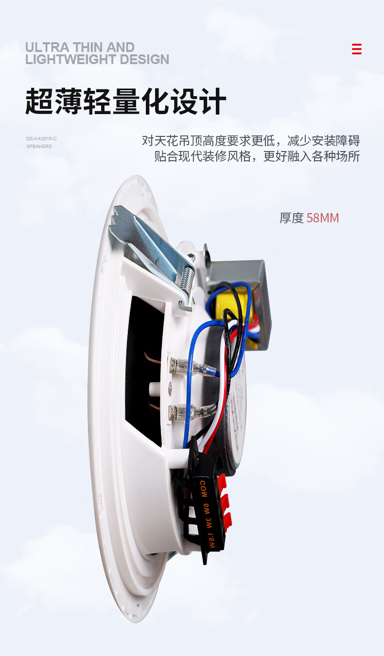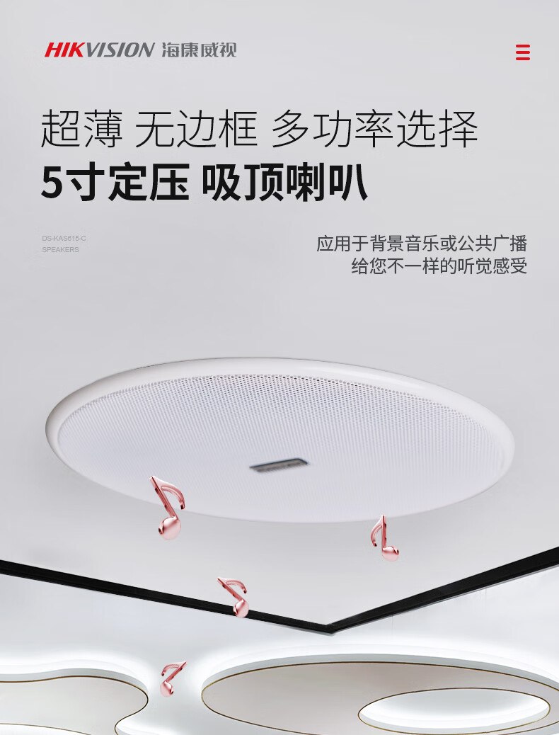 海康威视(HIKVISION)5寸超薄吸顶音响嵌入式喇叭店铺超市商场公共广播咖啡厅背景音乐专用天花板吊顶音箱隐藏式扬声器