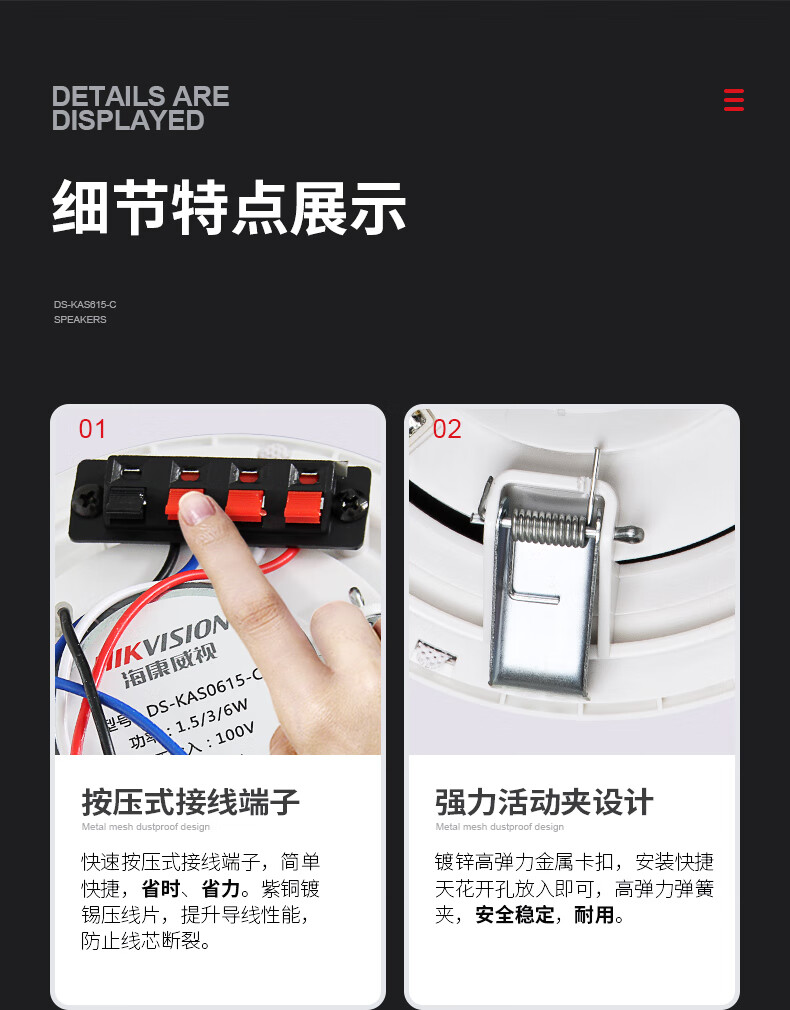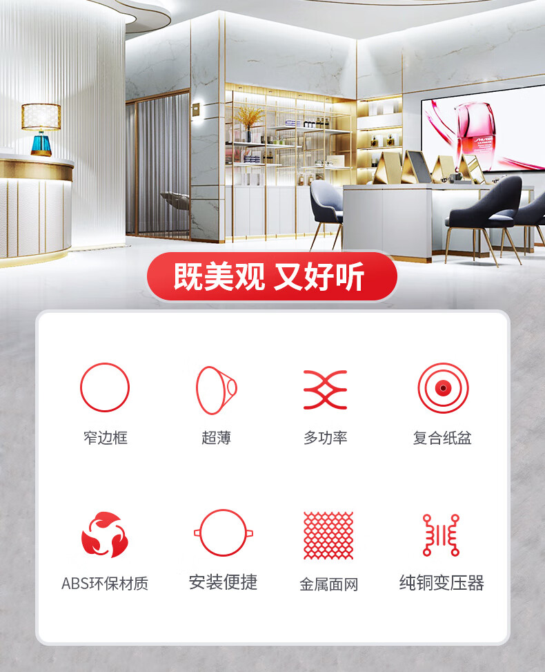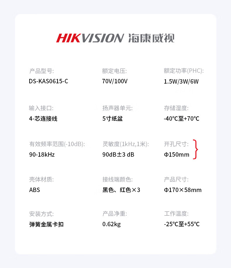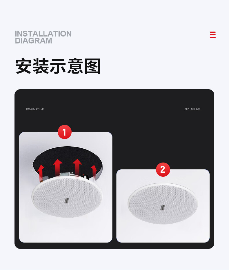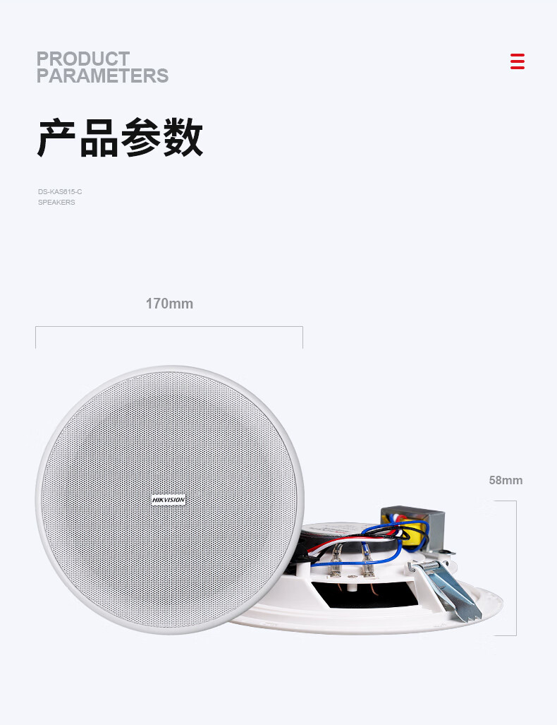 海康威视(HIKVISION)5寸超薄吸顶音响嵌入式喇叭店铺超市商场公共广播咖啡厅背景音乐专用天花板吊顶音箱隐藏式扬声器