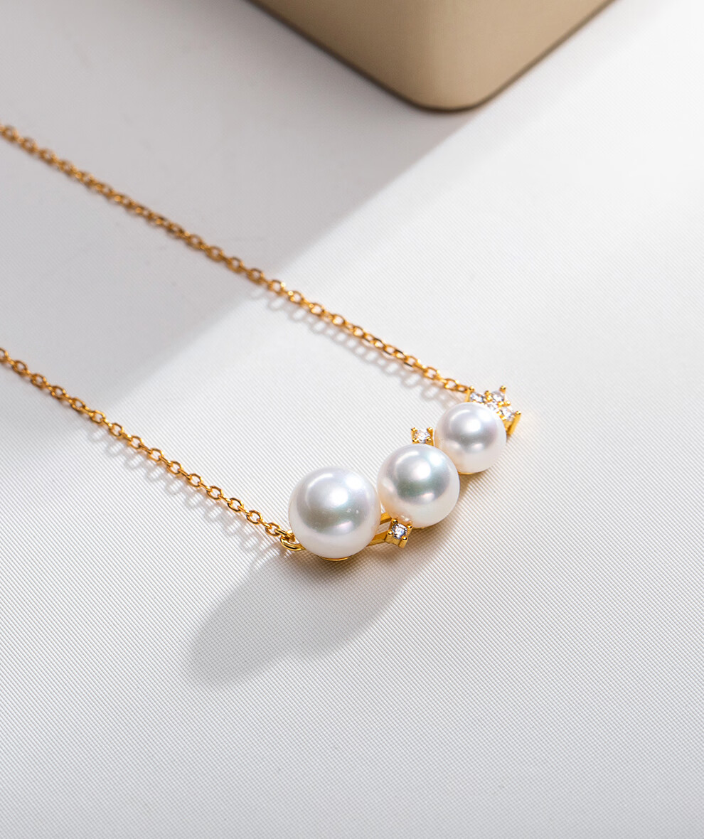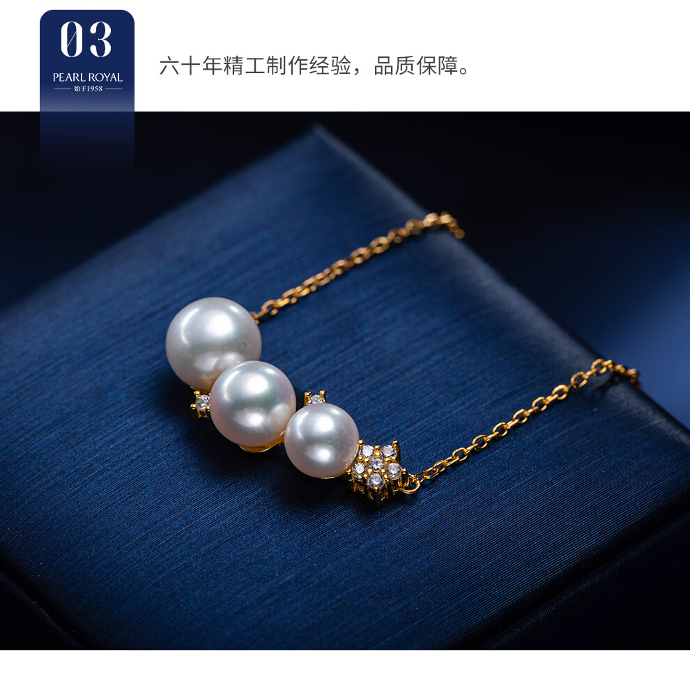 南珠宫臻珵真多麻925银平衡木海水珍珠项链强光圆形新年礼物送妈妈 金色款 7.0-8.0mm