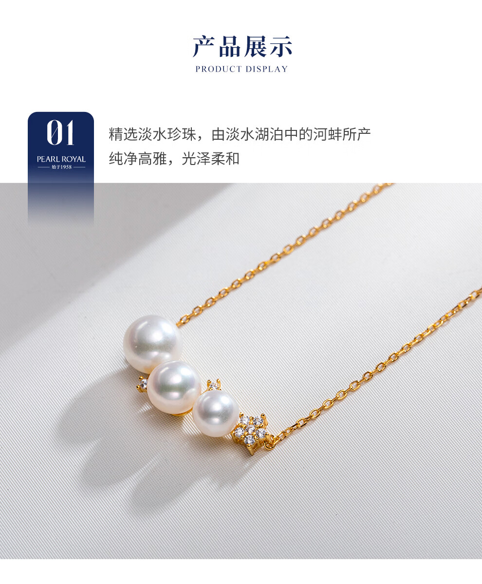 南珠宫福瑞淡水珍珠项链强光圆形日常百搭高级感新年礼物送妈妈 5.0-8.0mm 金色款