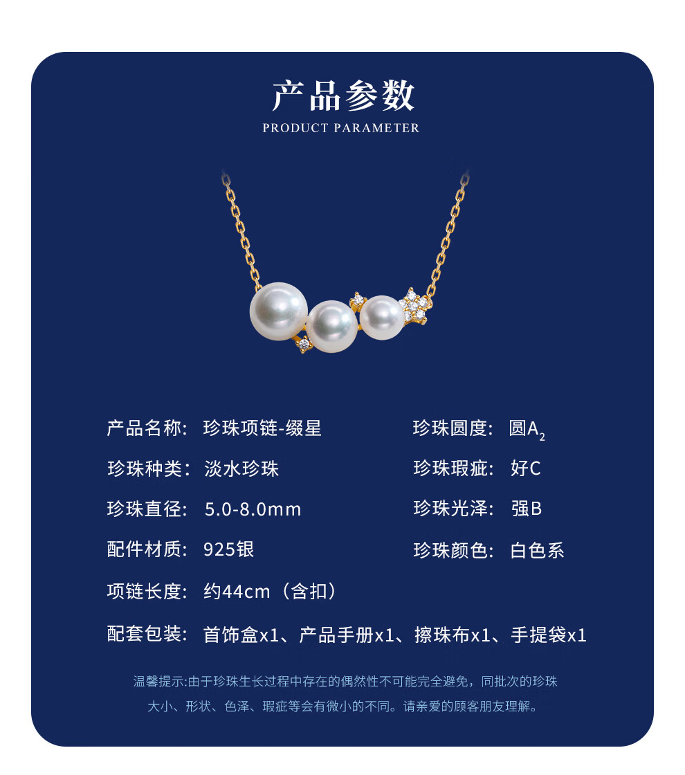 南珠宫缀星925银淡水珍珠项链强光圆形简约百搭高级感新年礼物送老婆 银色款 5.0-8.0mm