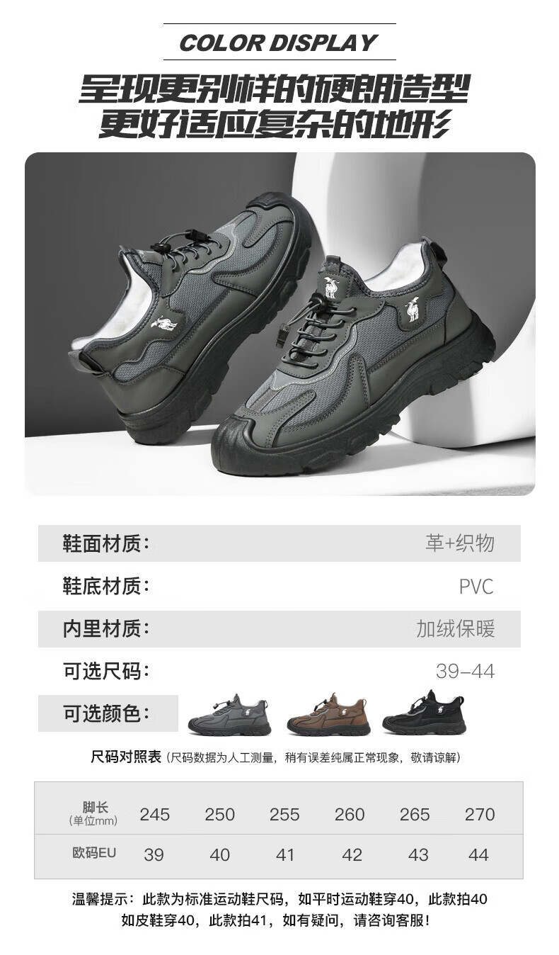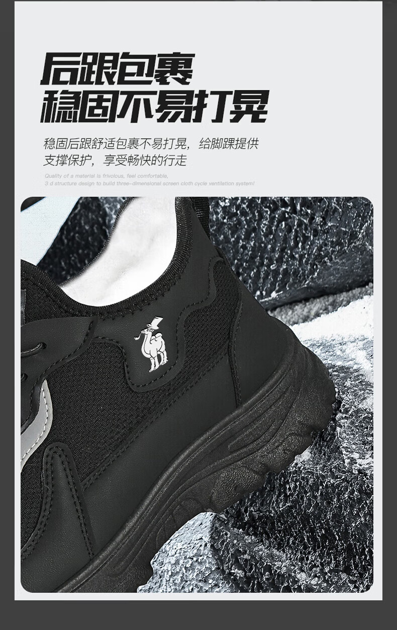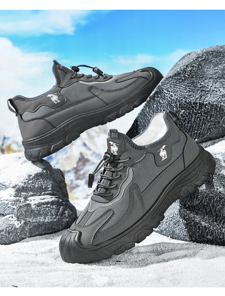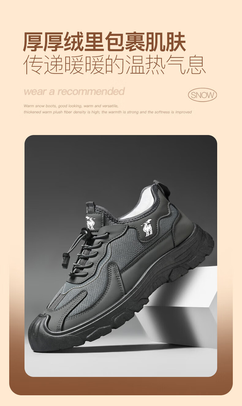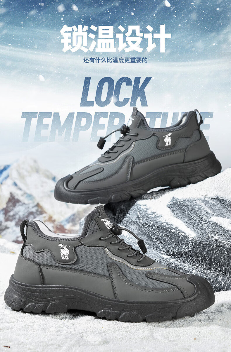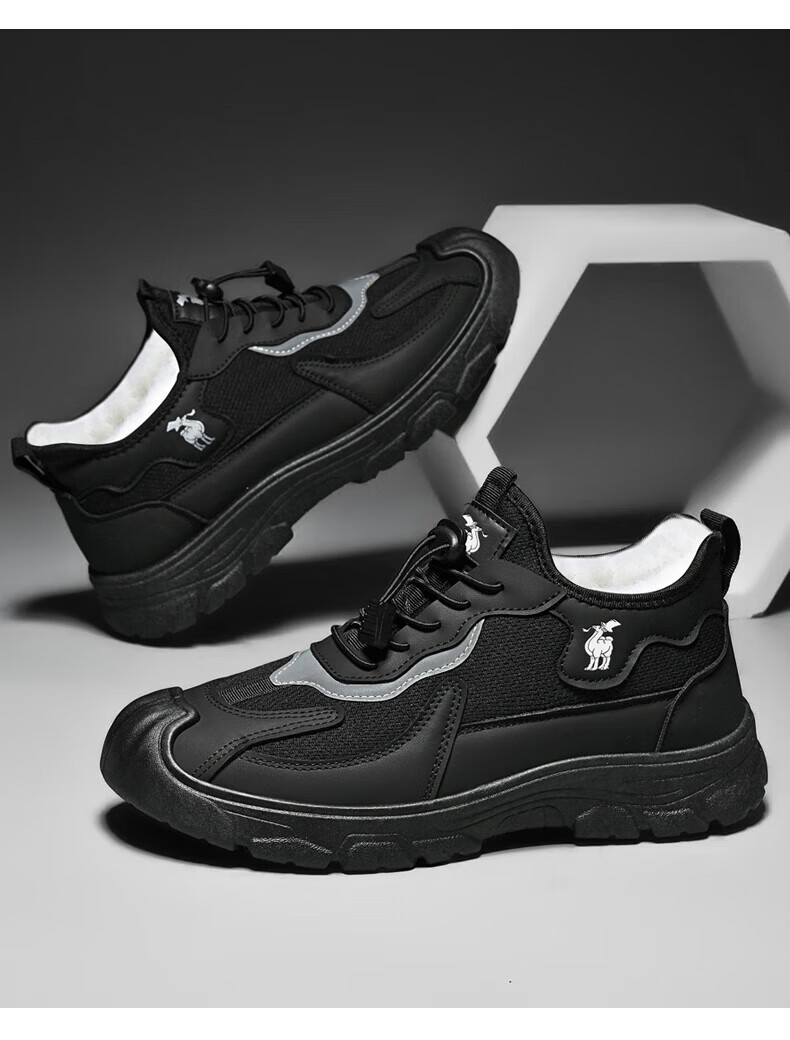 保罗骆驼运动休闲棉鞋 加厚加绒保暖男鞋子 2026秋冬季轻便防滑户外 【黑色】 LY892 41 【标准运动鞋码】
