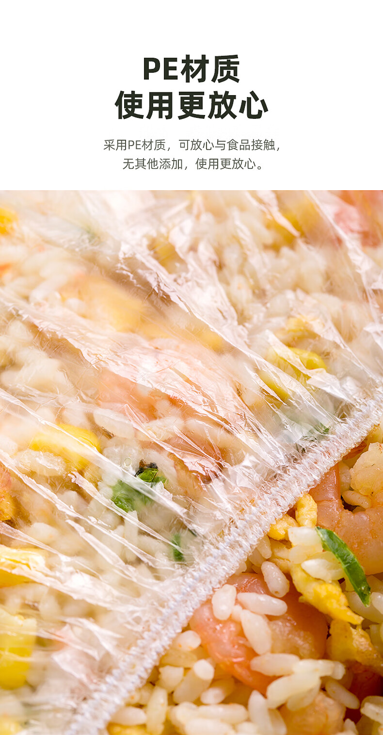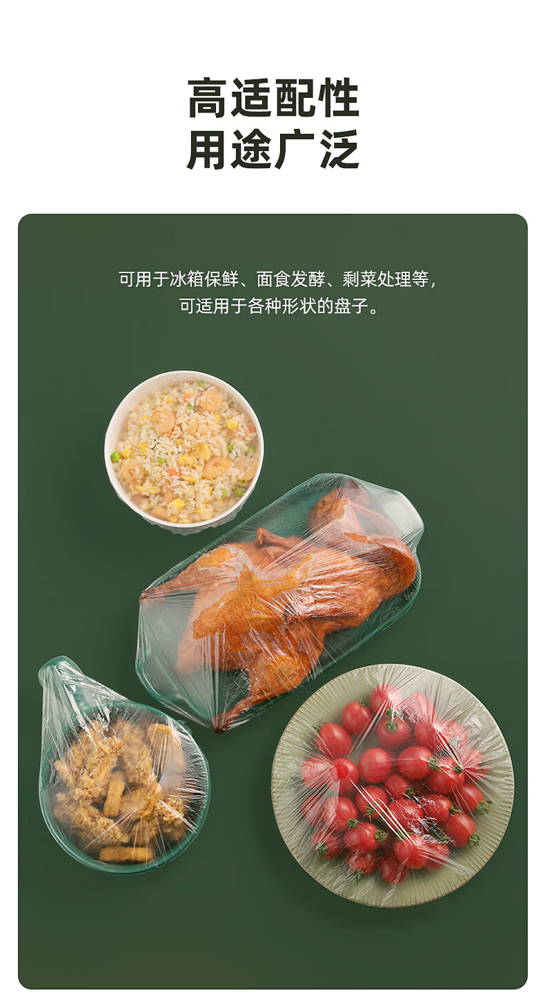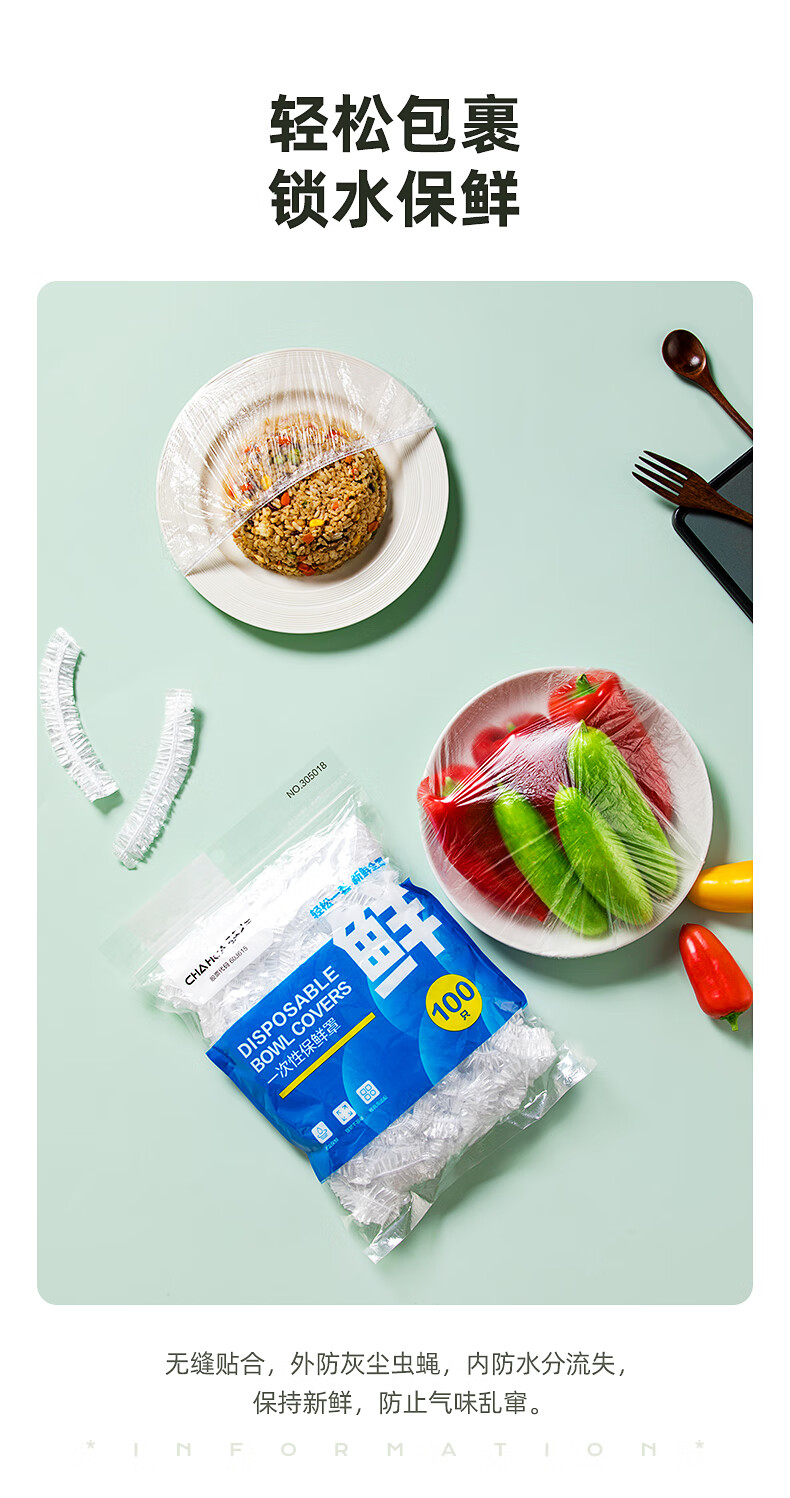 茶花(CHAHUA)一次性保鲜膜罩套免撕家用剩菜松紧保鲜袋食品级专用pe套菜袋 本色 300只