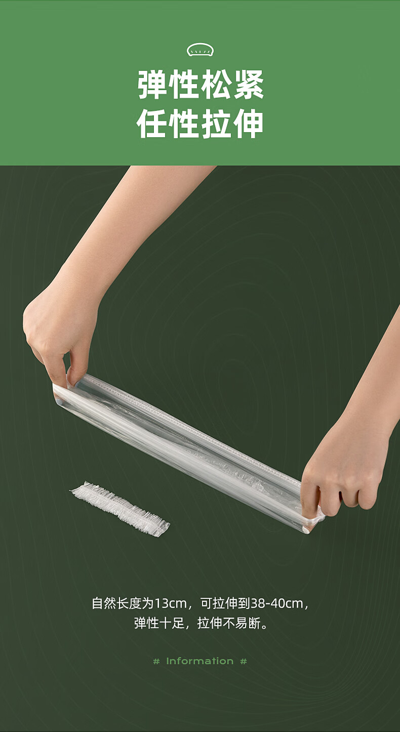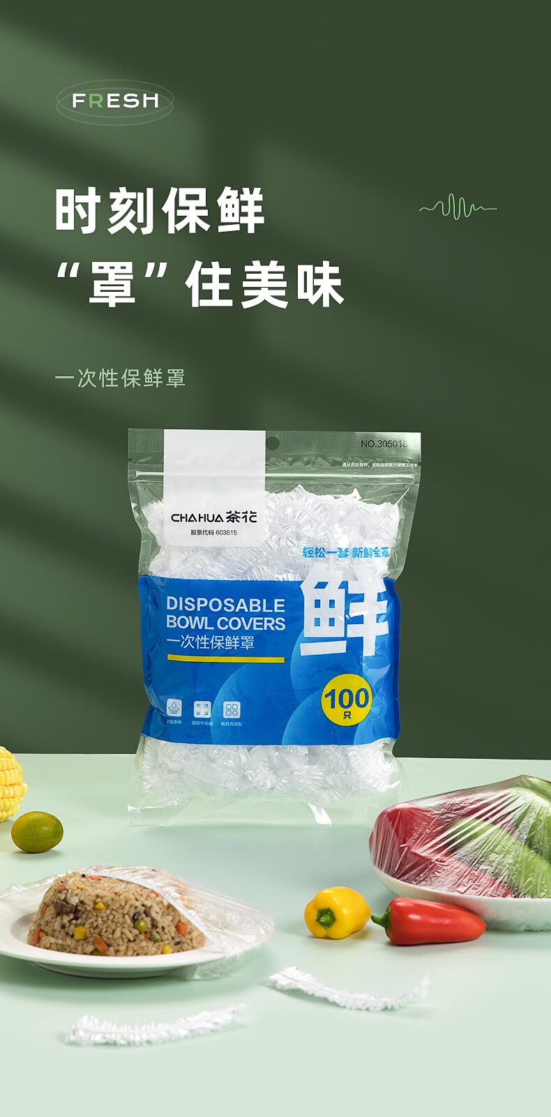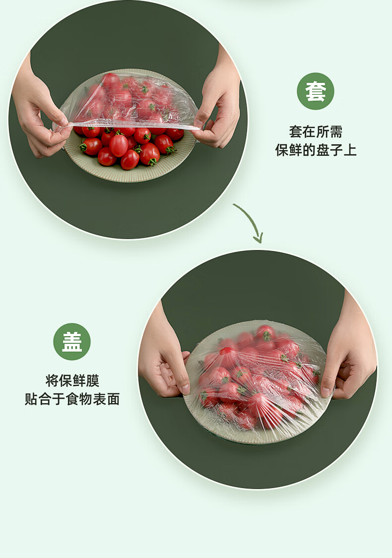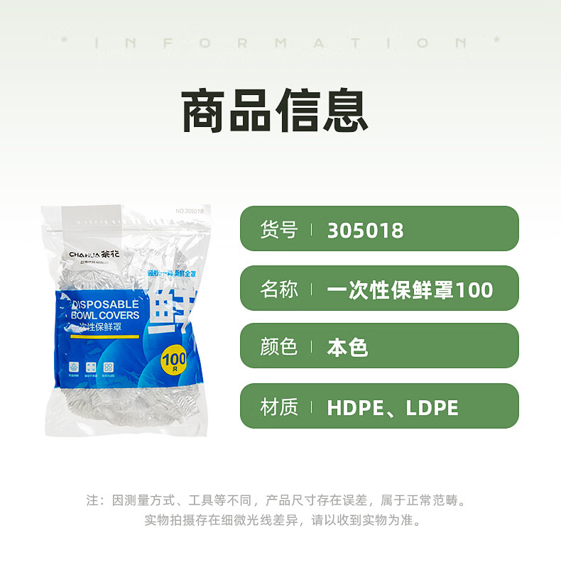 茶花(CHAHUA)一次性保鲜膜罩套免撕家用剩菜松紧保鲜袋食品级专用pe套菜袋 本色 300只