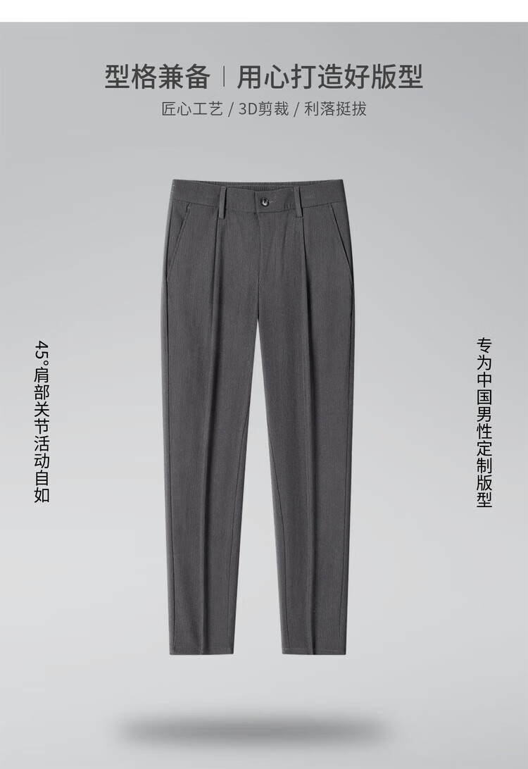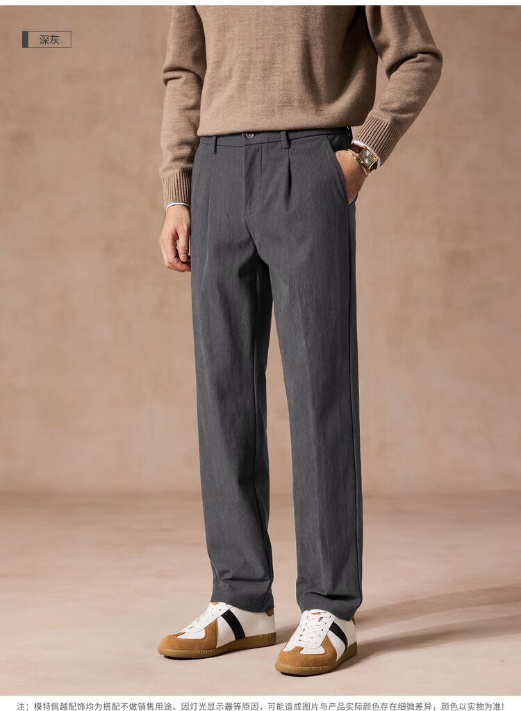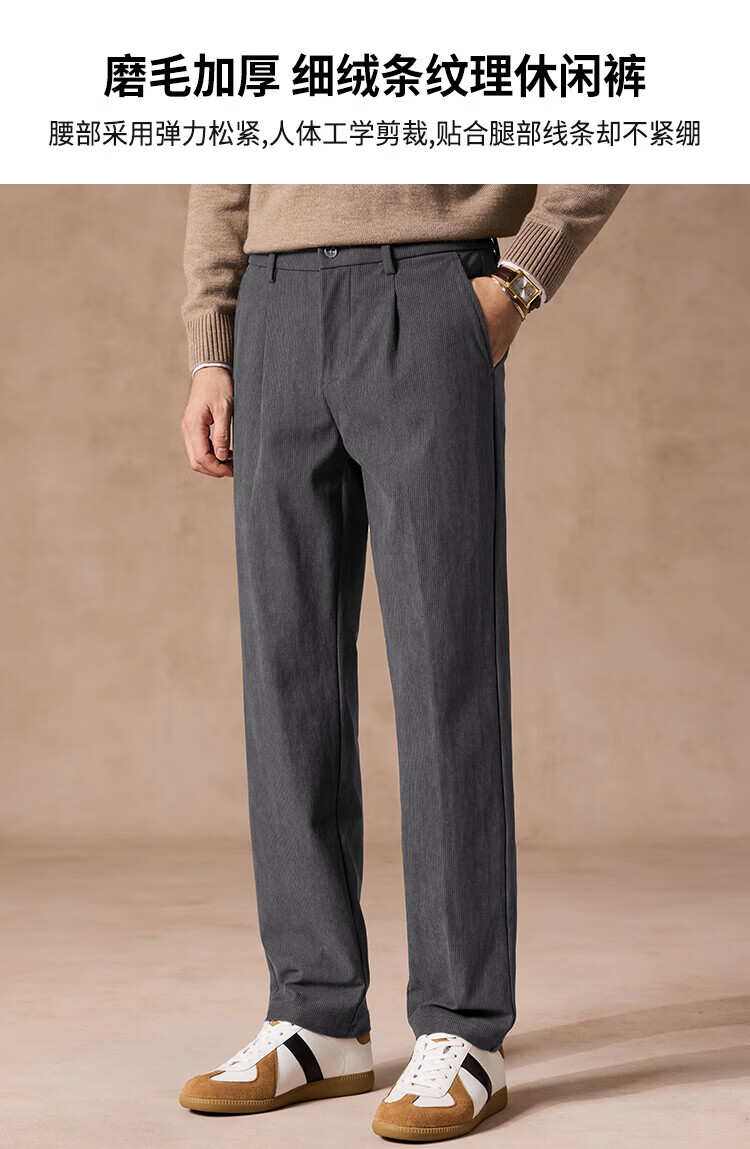 杉杉(FIRS)【易打理&灯芯绒】秋季男士商务纯色休闲裤百搭高级感休闲长裤男 深灰 30 170/76A(30)