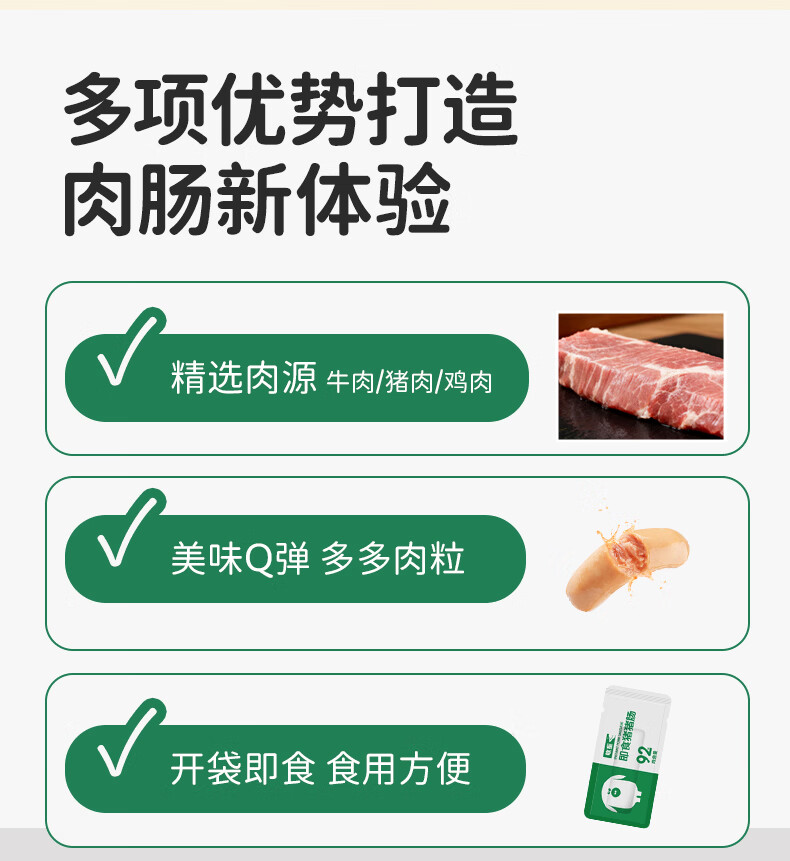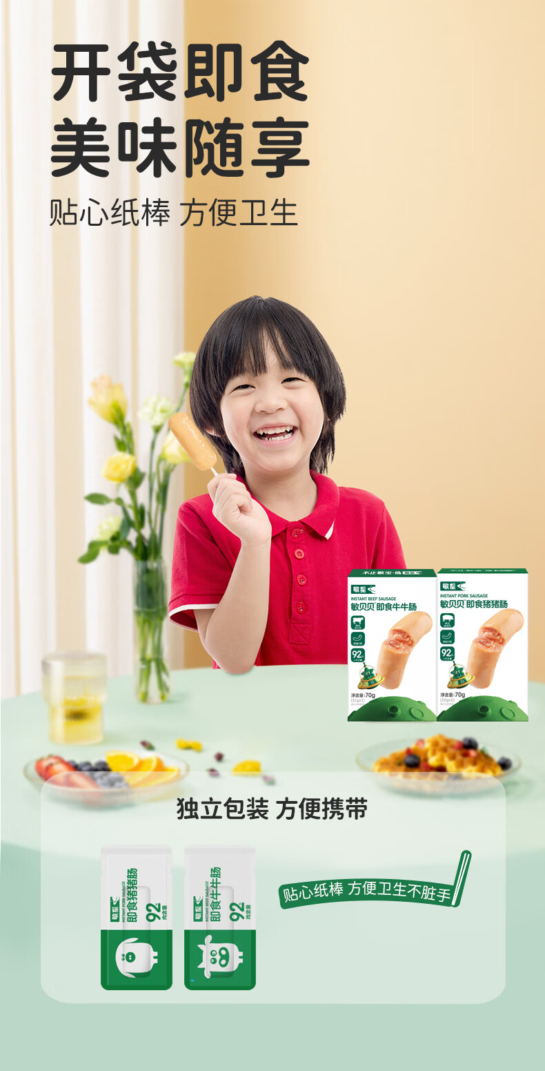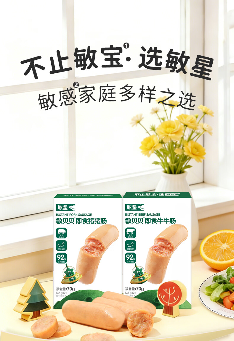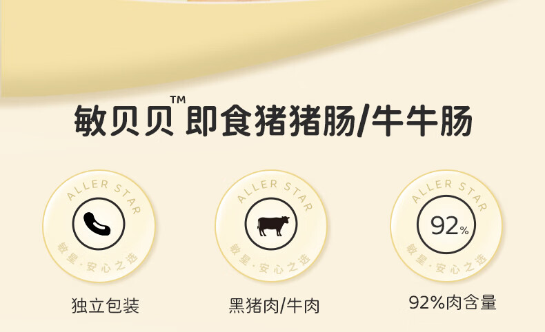 敏星即食牛肉肠黑猪肉肠休闲早餐便携解馋零食70g送敏宝婴儿童辅食谱 福满全家猪肉肠20g*15根