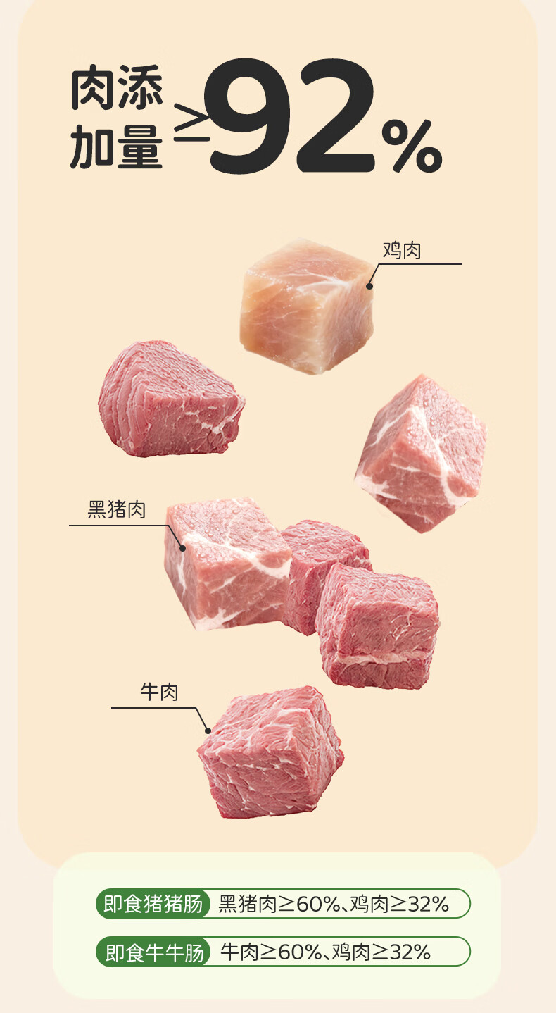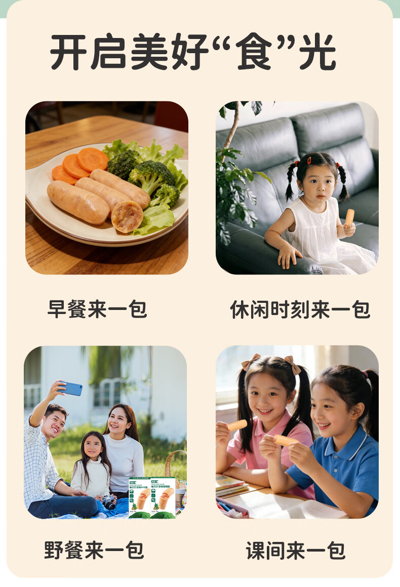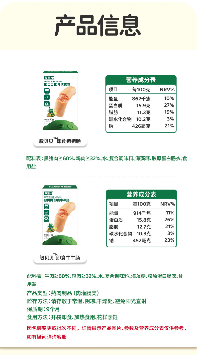 敏星即食牛肉肠黑猪肉肠休闲早餐便携解馋零食70g送敏宝婴儿童辅食谱 福满全家猪肉肠20g*15根