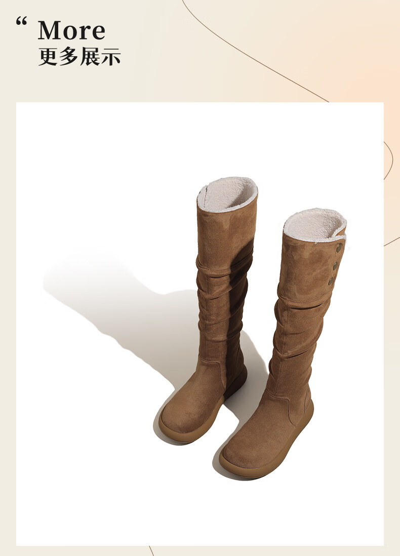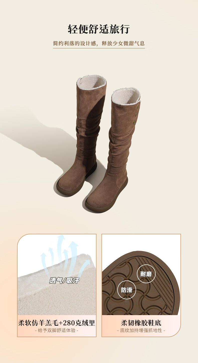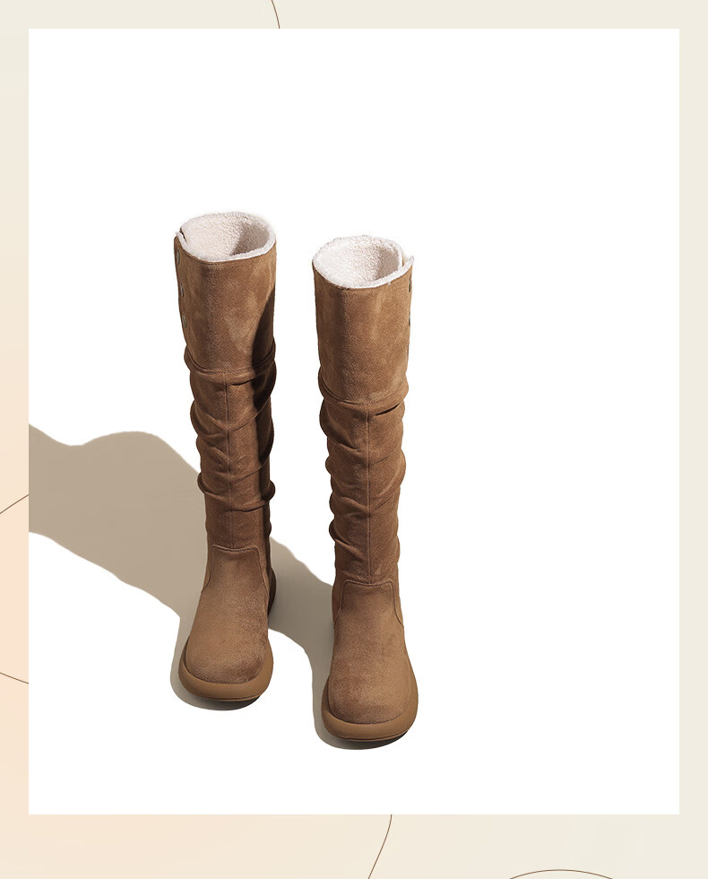 稻草人(MEXICAN)复古长筒靴女2026新款冬季加绒加厚保暖不过膝棉鞋显瘦两穿雪地靴 驼色 35