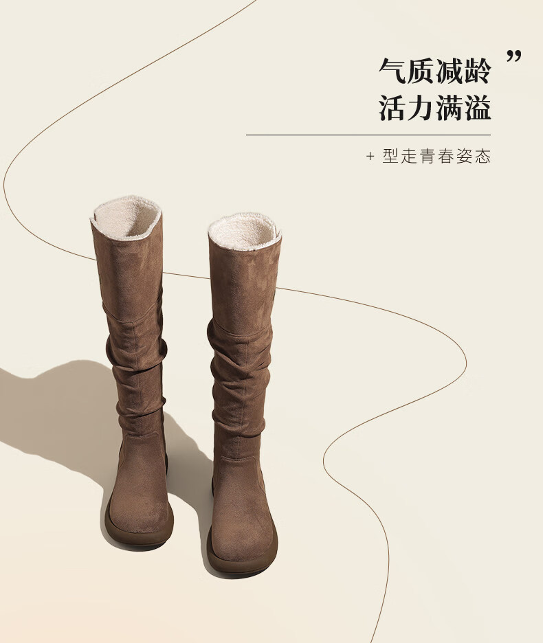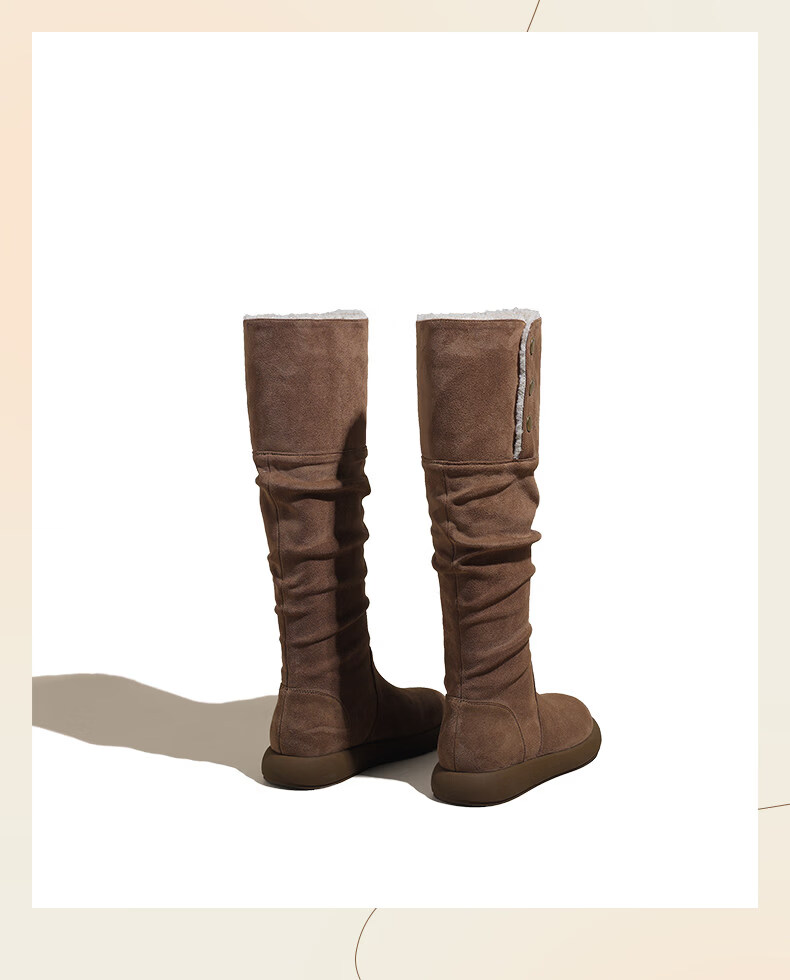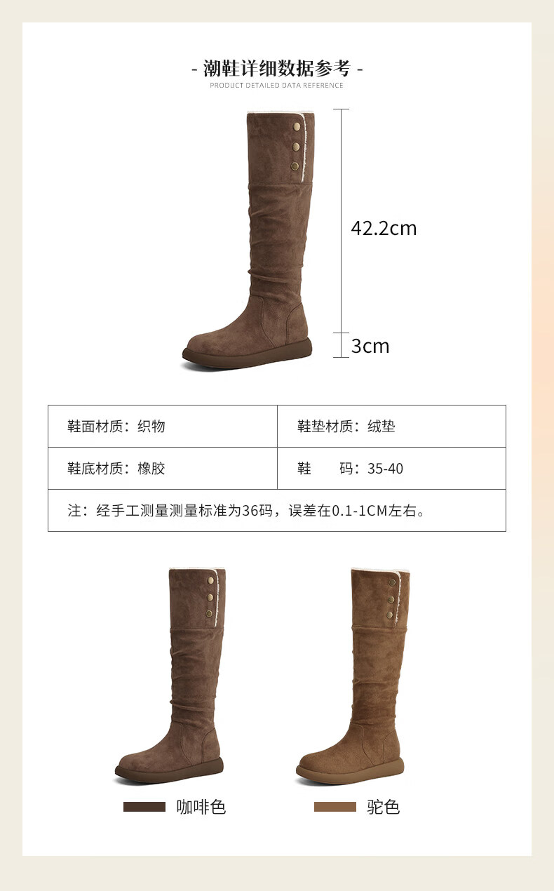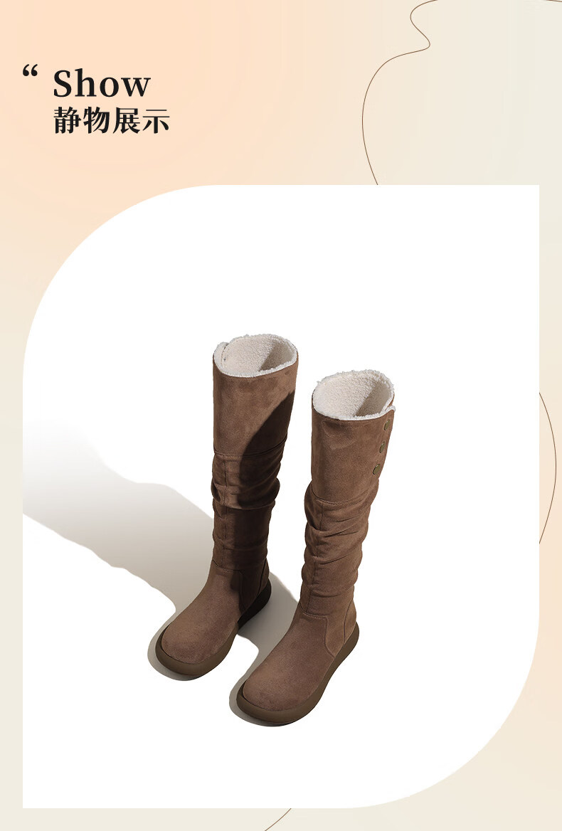 稻草人(MEXICAN)复古长筒靴女2026新款冬季加绒加厚保暖不过膝棉鞋显瘦两穿雪地靴 驼色 35