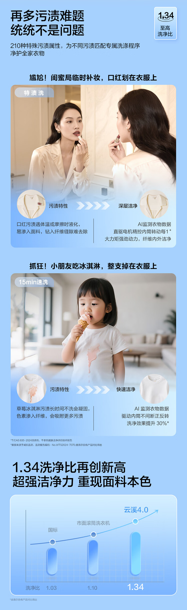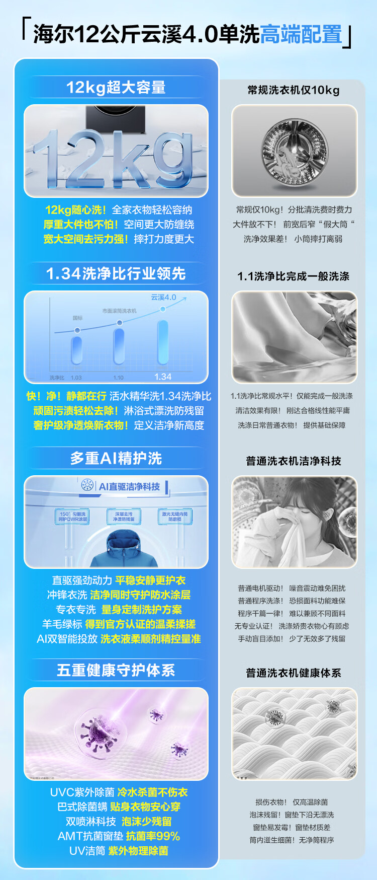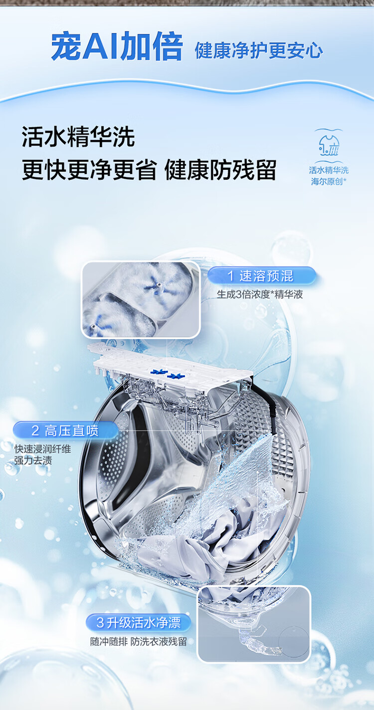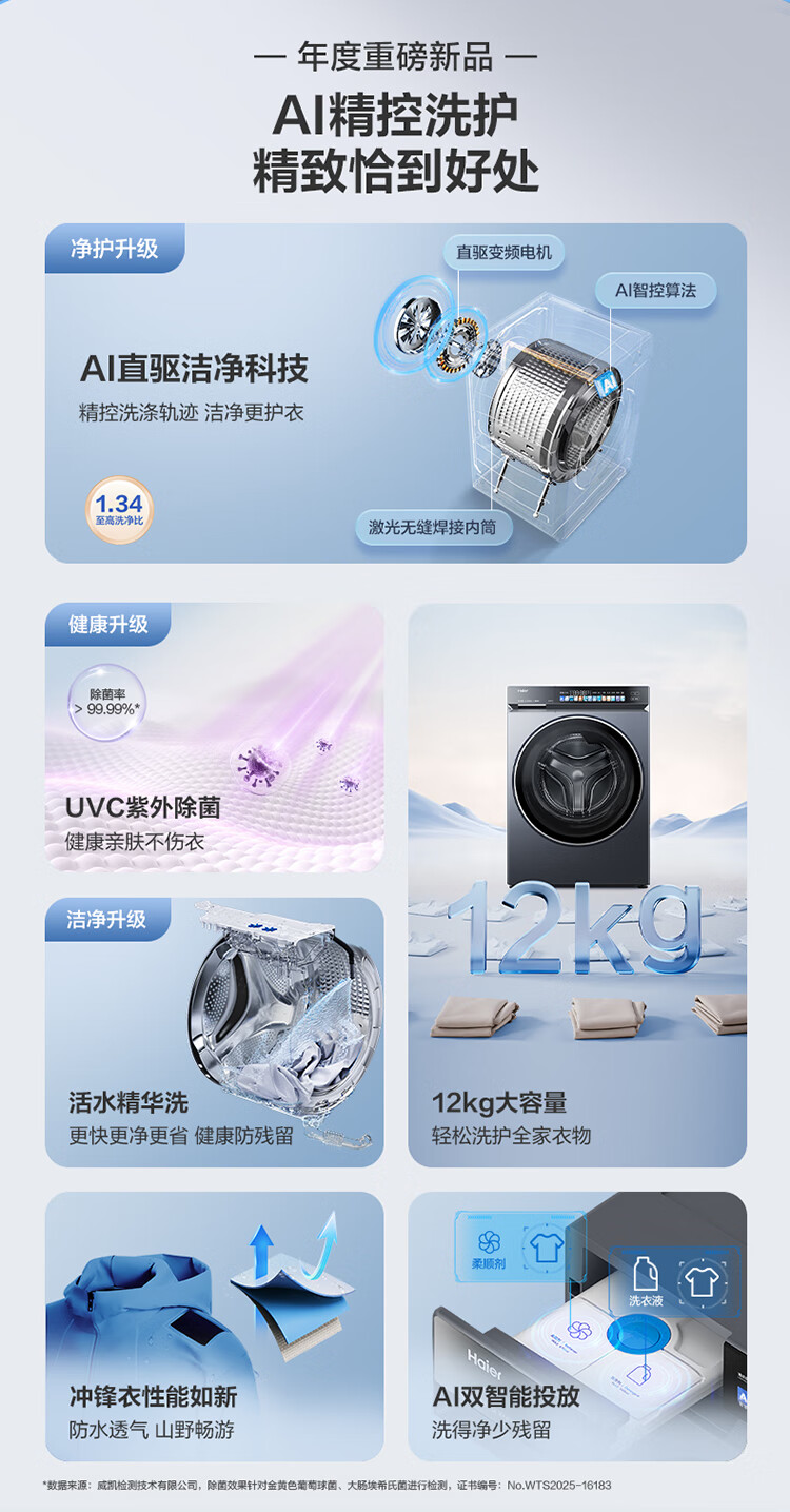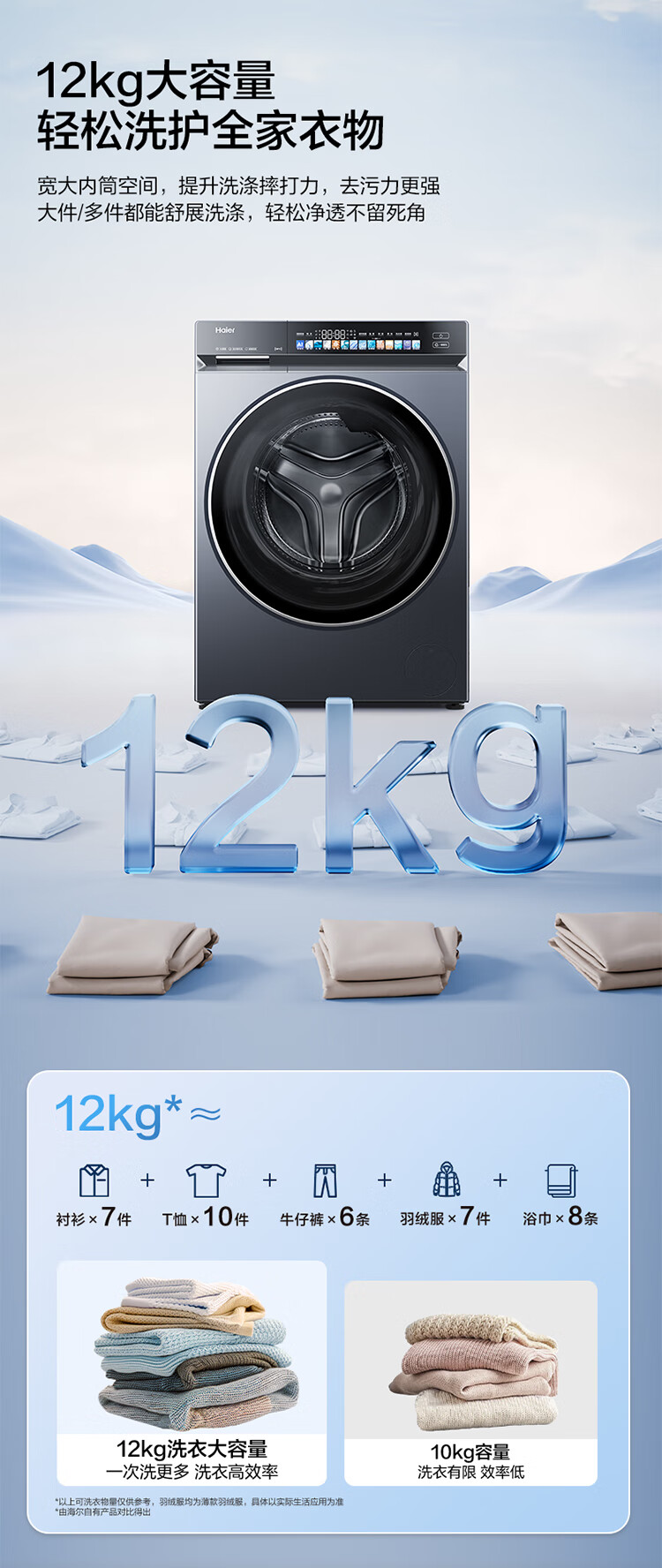 海尔(Haier)云溪4.0 滚筒洗衣机单洗全自动家用 12公斤大容量 家电国家补贴京东自营直驱583 一级能效洗羽绒服
