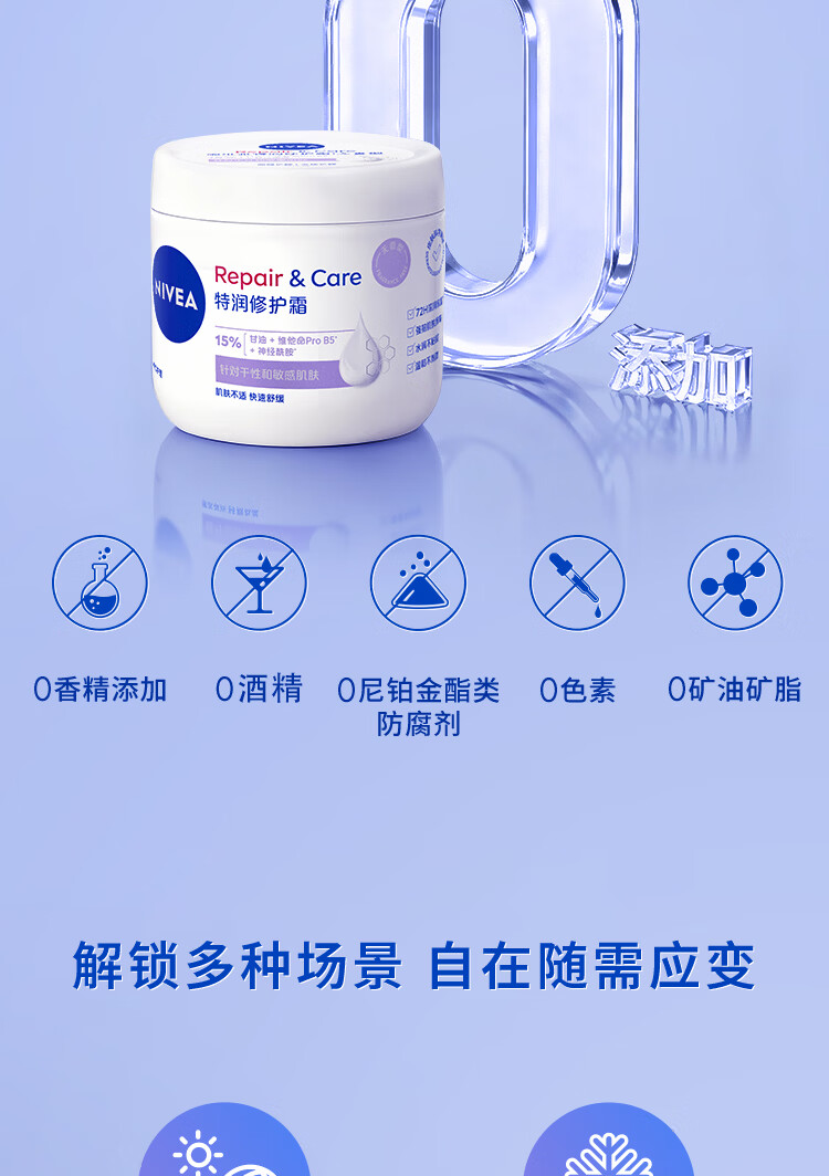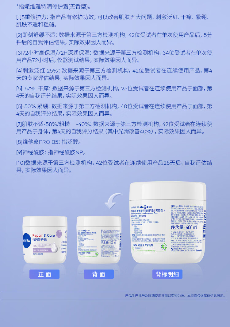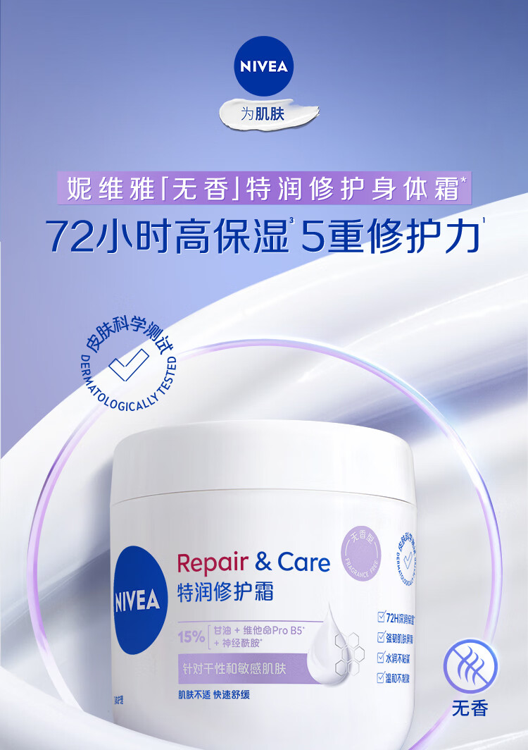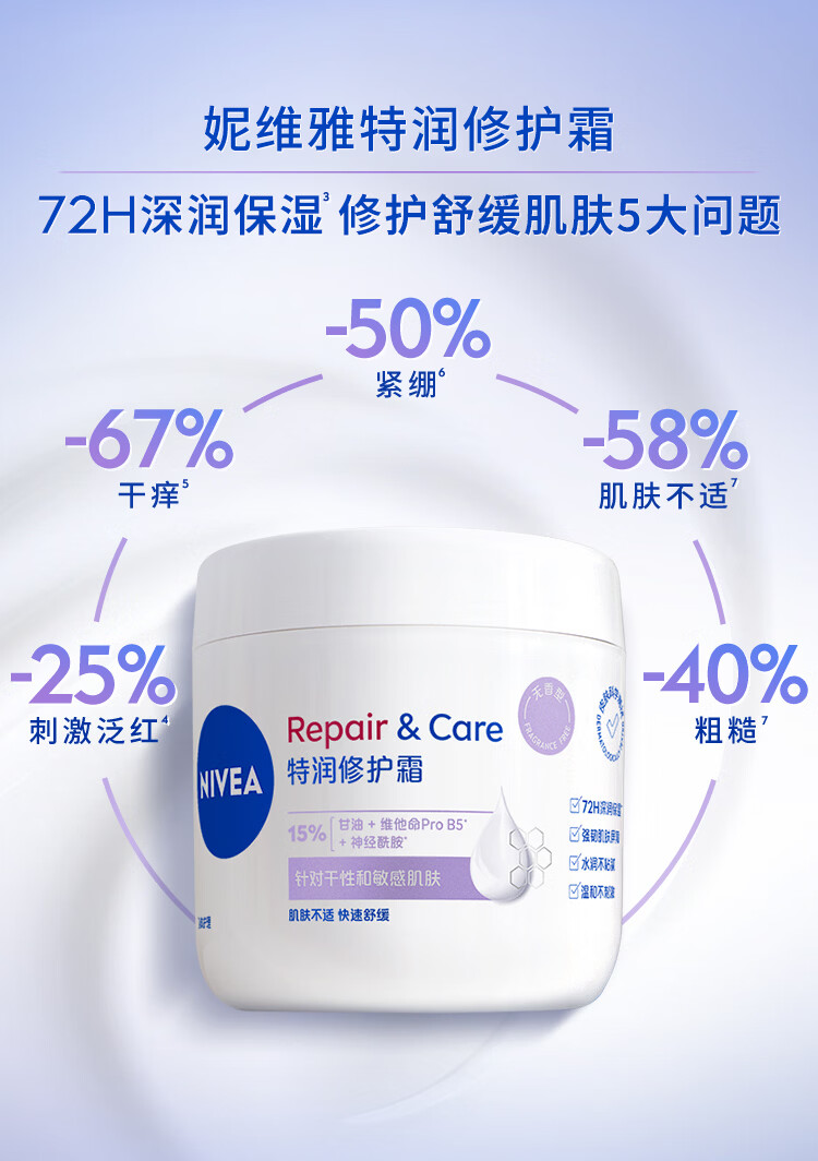妮维雅(NIVEA)特润修护霜400ml舒缓修护敏感滋润补水保湿无香型B5大白罐