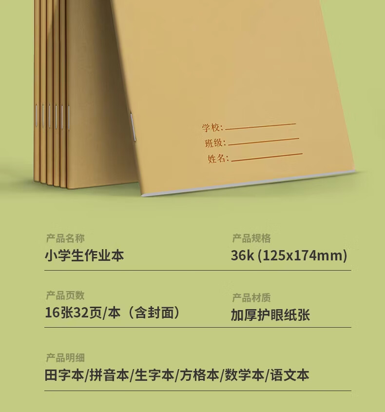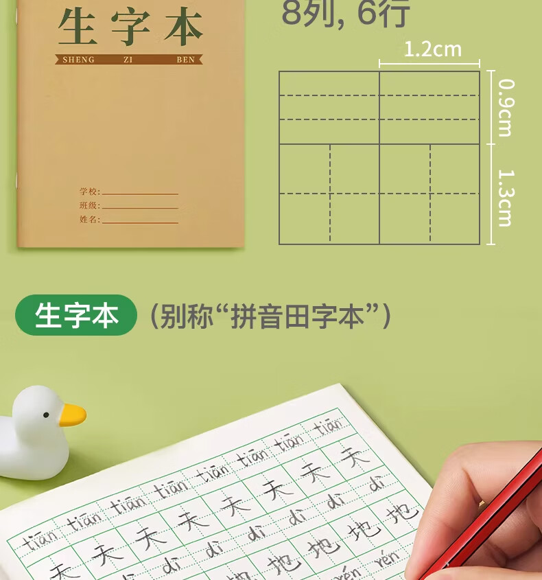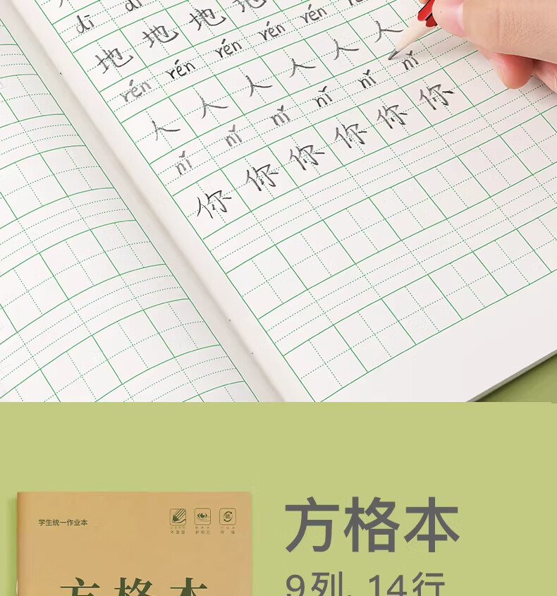 汉状元书院田字格本小学生拼音作业本子生字本一年级田字格练字本方格语文本幼儿园写字练习数学专用本子簿 生字本5本