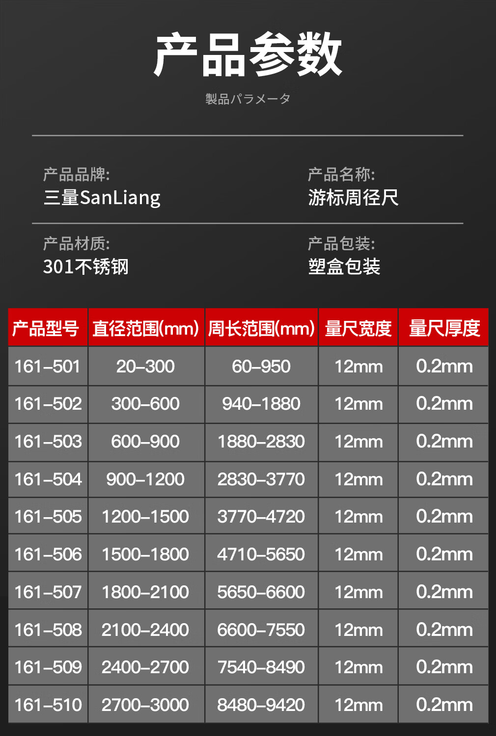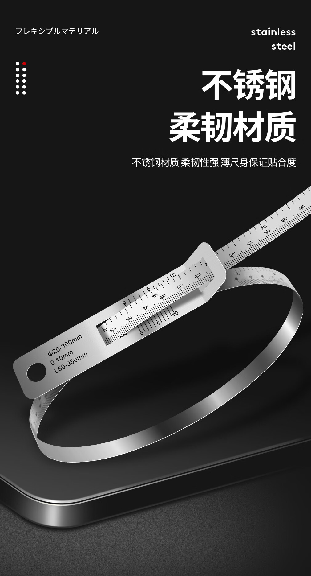 三量(sanliang)三量圆周径尺派尺不锈钢穿孔外径尺柔性尺直径测量尺周径尺 161-501不锈钢周径尺 20-300mm 无规格