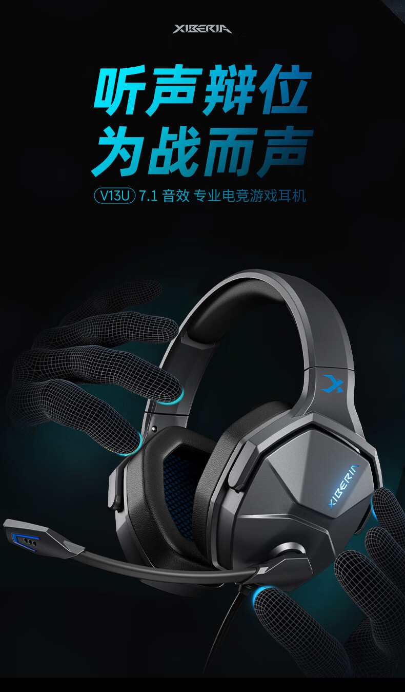 西伯利亚(XIBERIA)【全网热销】 V13电脑耳机头戴式有线游戏耳机 usb7.1声道 带线控 电竞耳机耳麦带麦 黑色