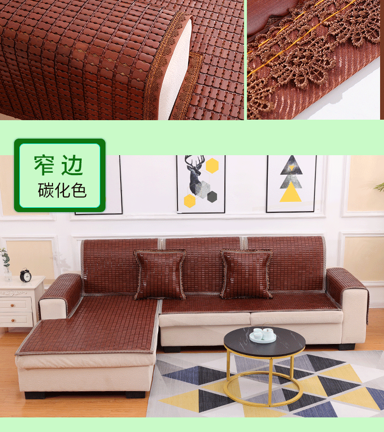DONOYA 多罗亚沙发垫四季通用防滑2026年新款麻将凉席坐垫红木凉垫透气座垫竹席 宽边碳化色 45cm*45cm