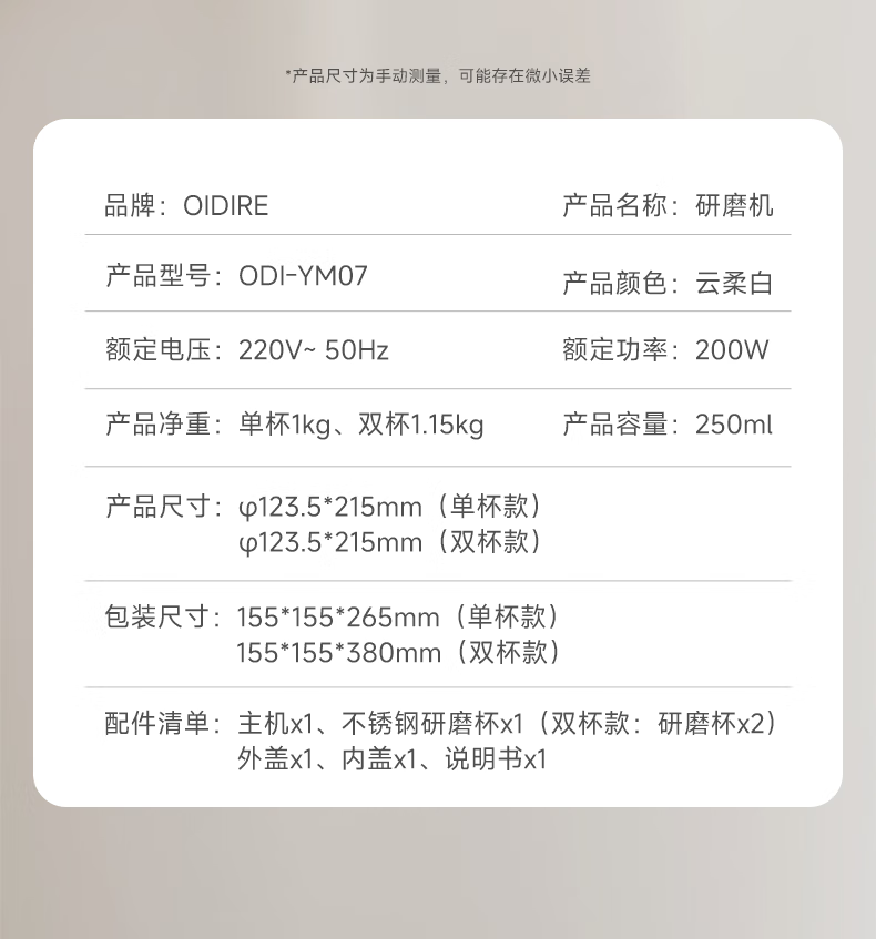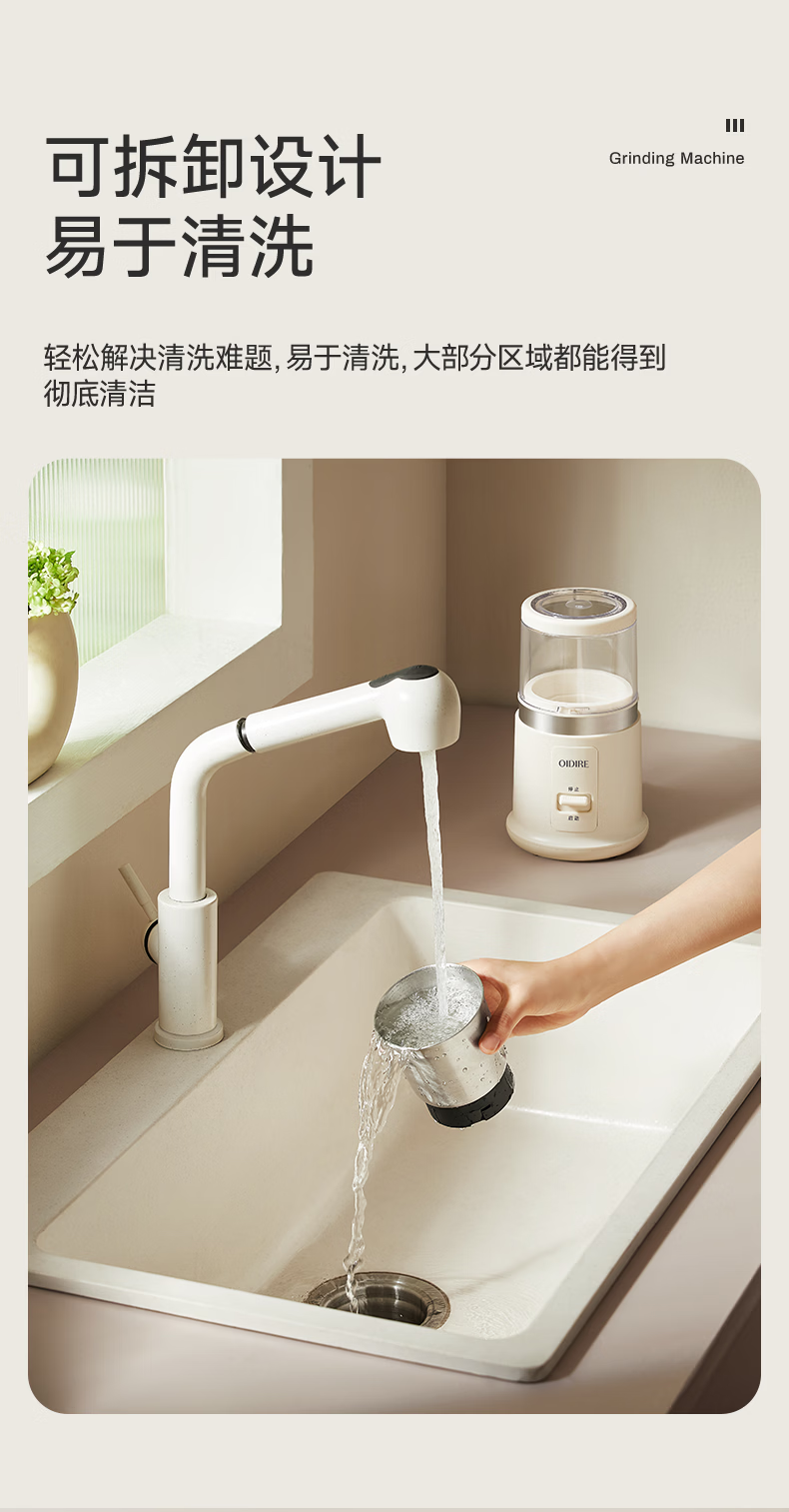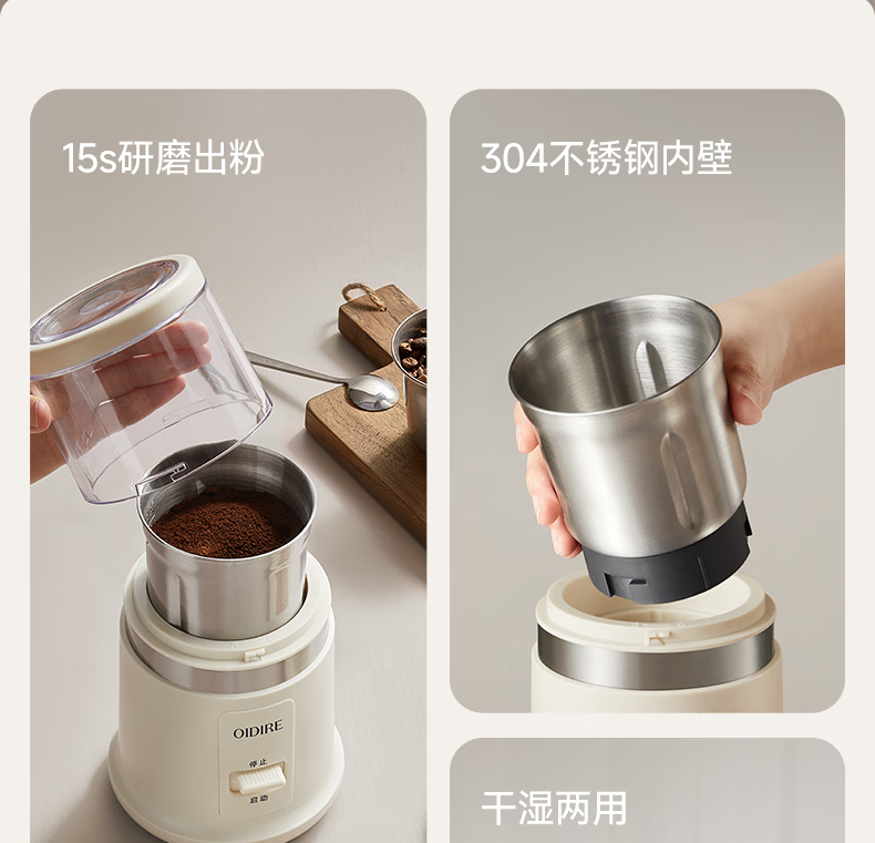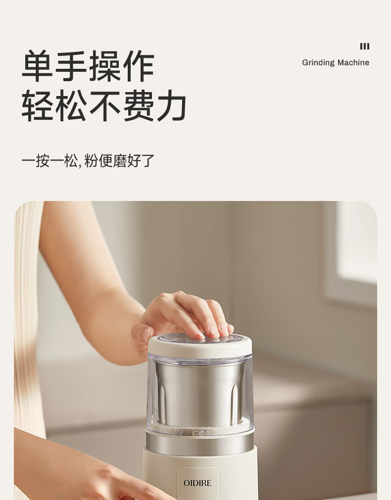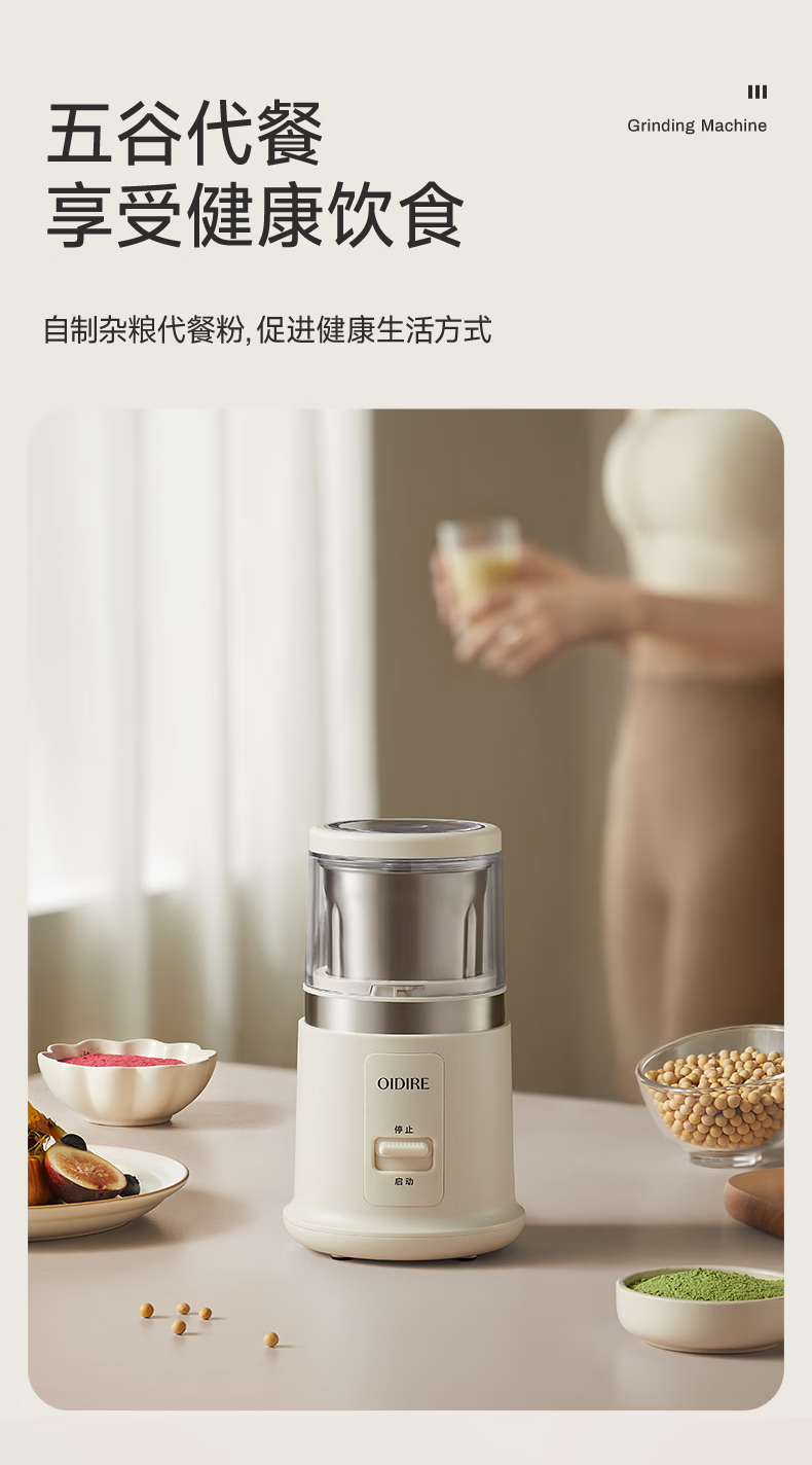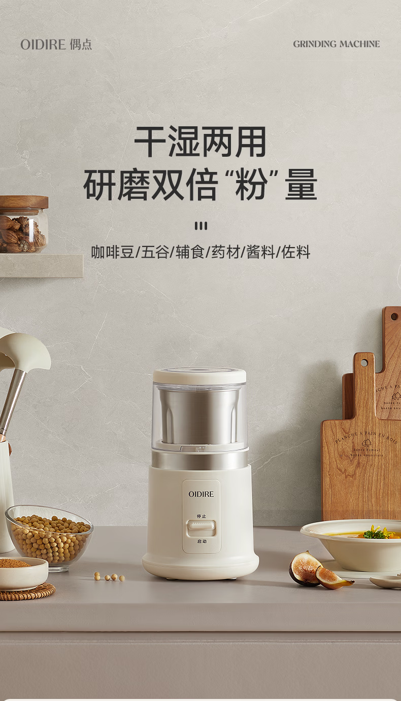 OIDIRE(偶点)研磨机 磨粉机 咖啡豆五谷杂粮药材打粉机料理机小型家用磨粉杯干湿两用 ODI-YM07单杯款